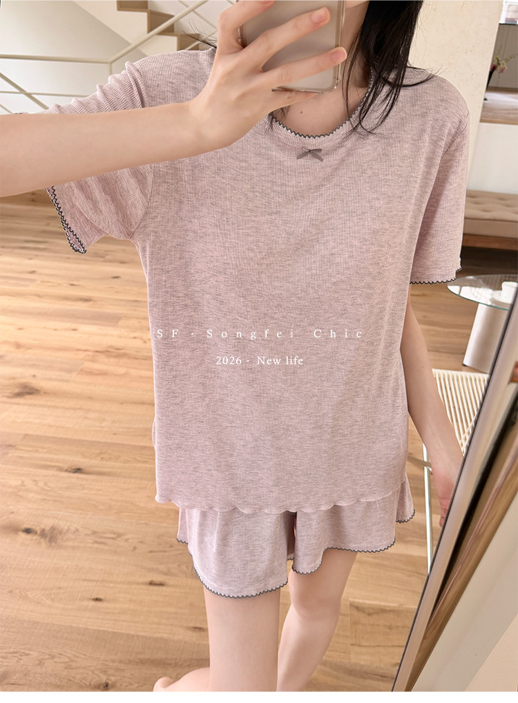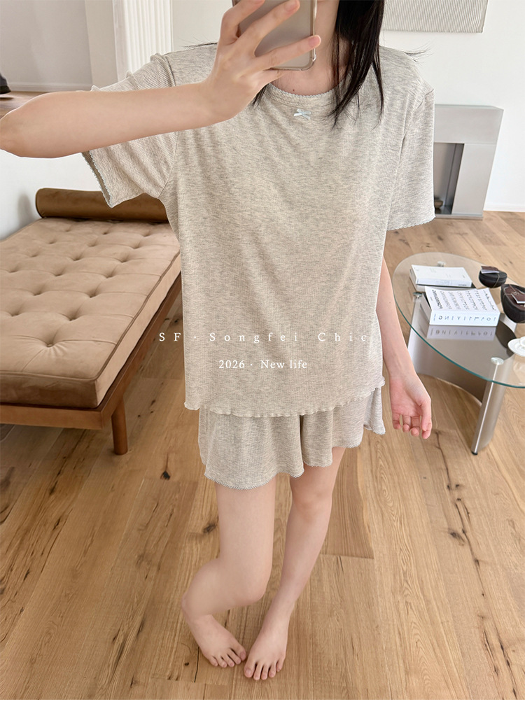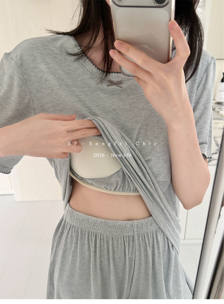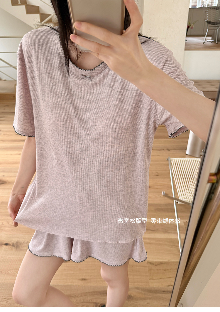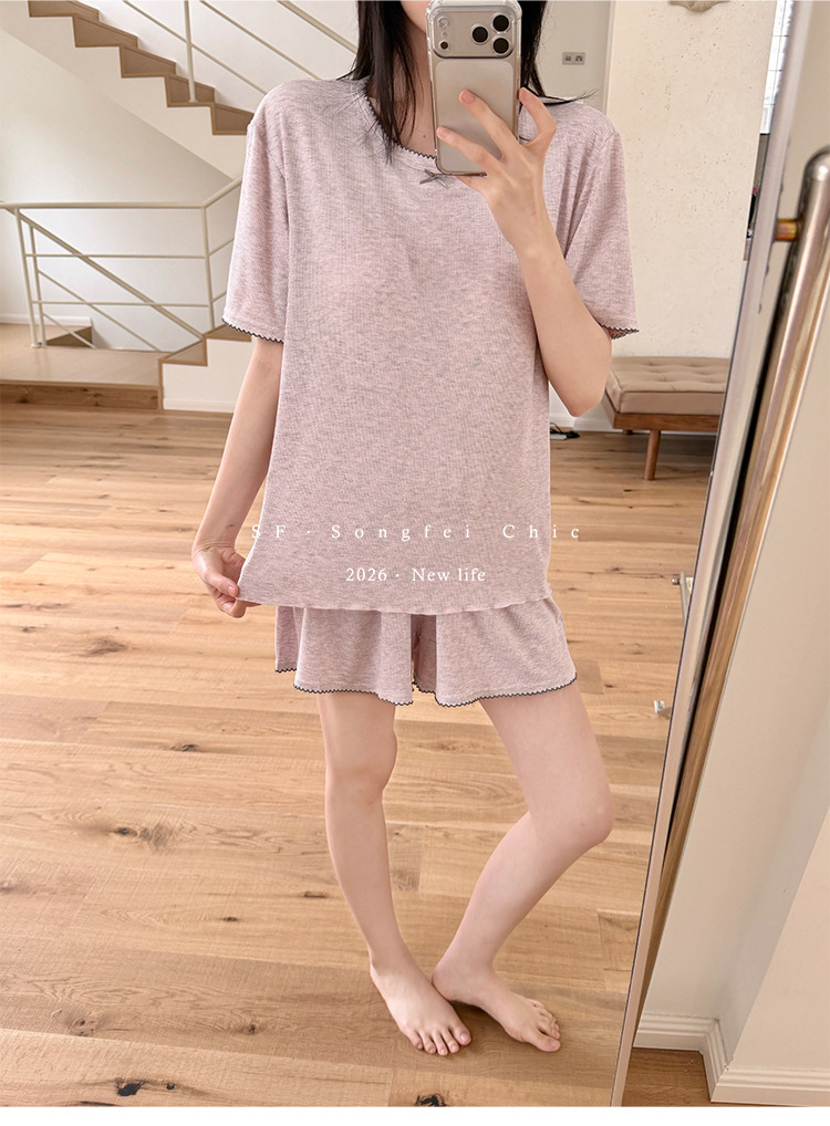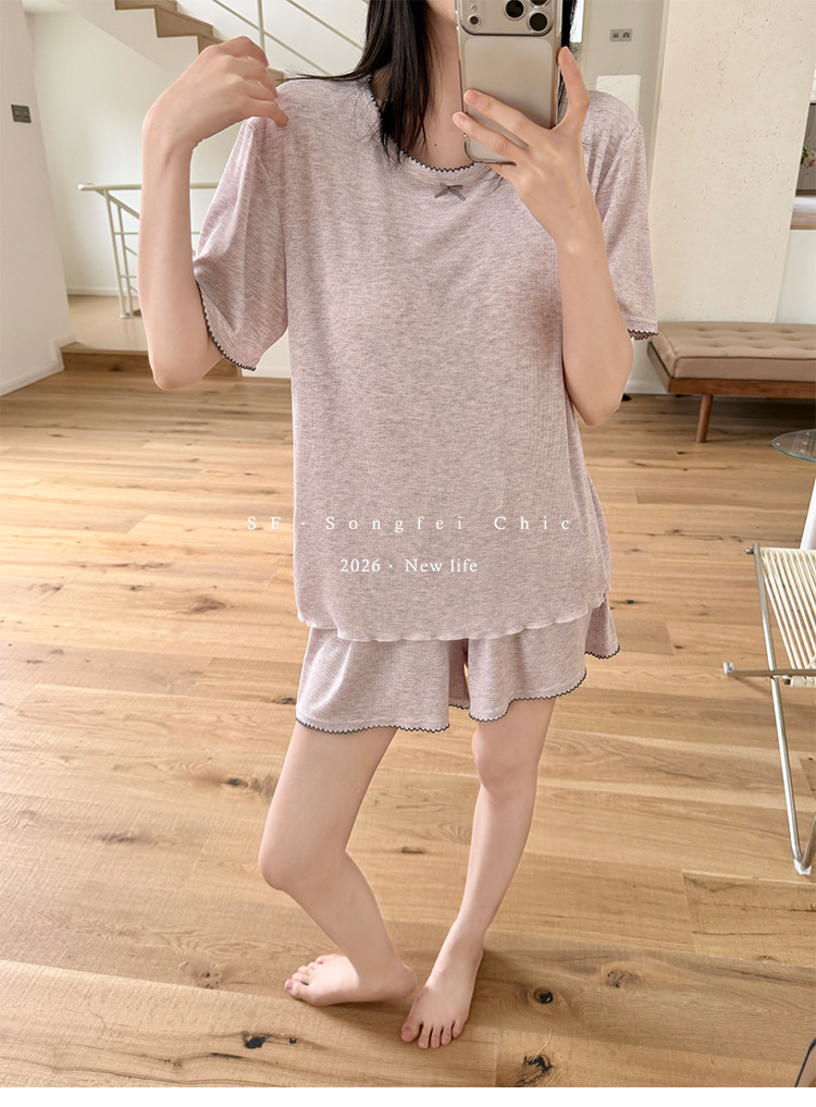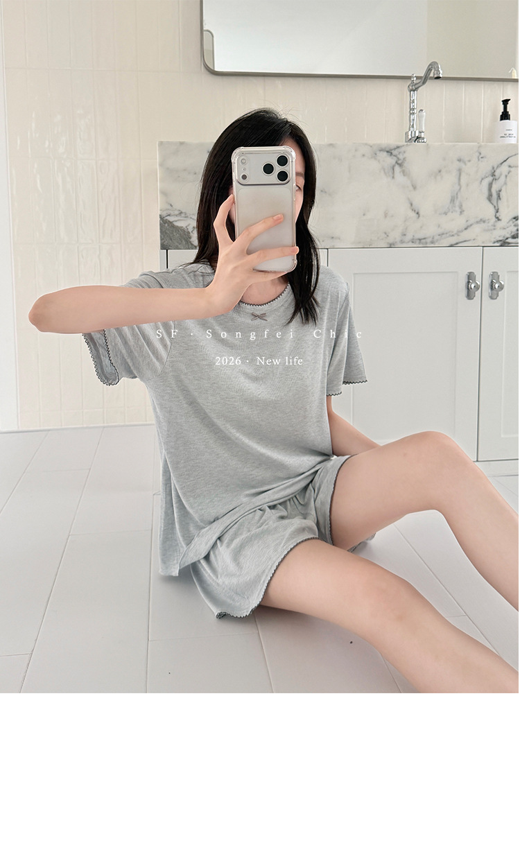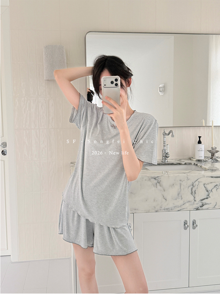 带胸垫一体式莫代尔睡衣套装 可外穿清凉家居服
