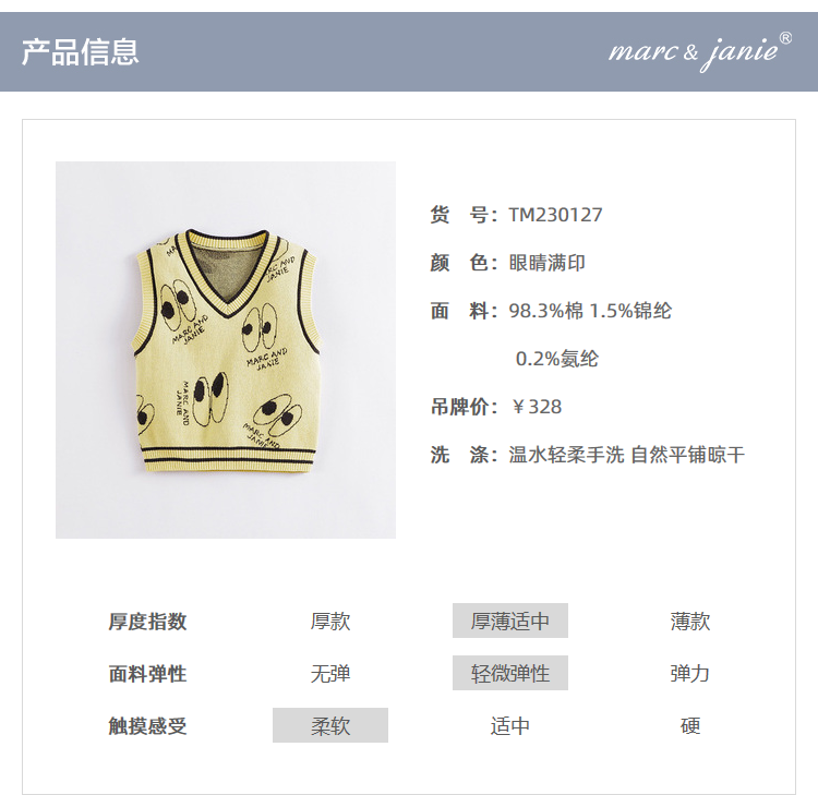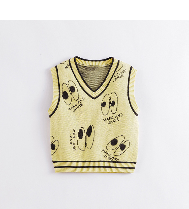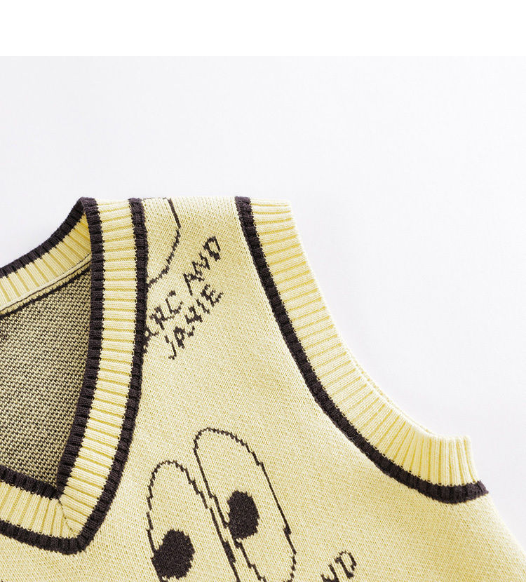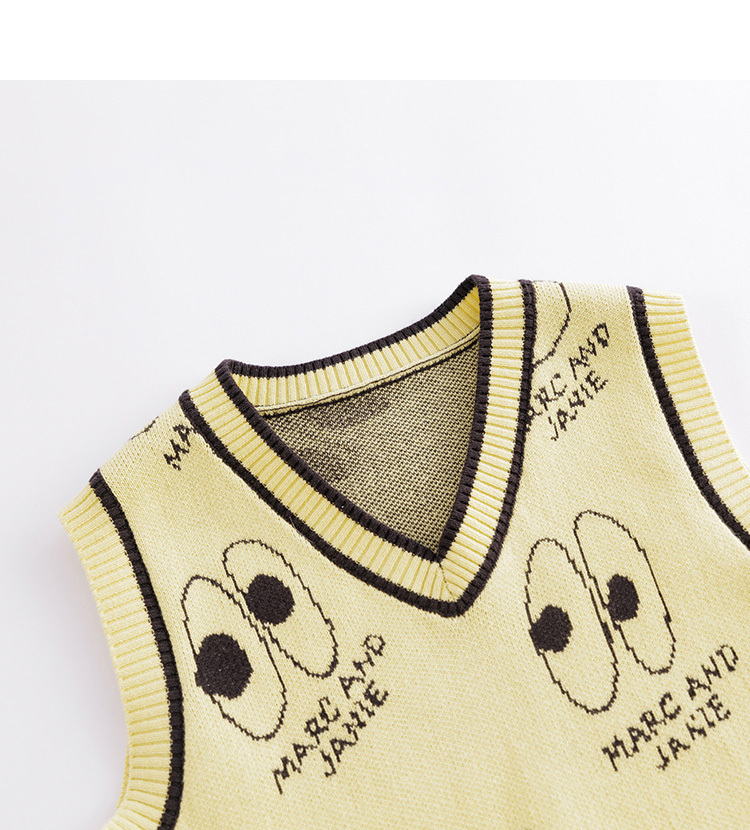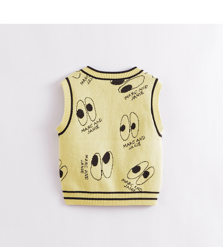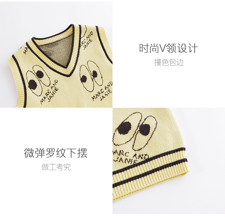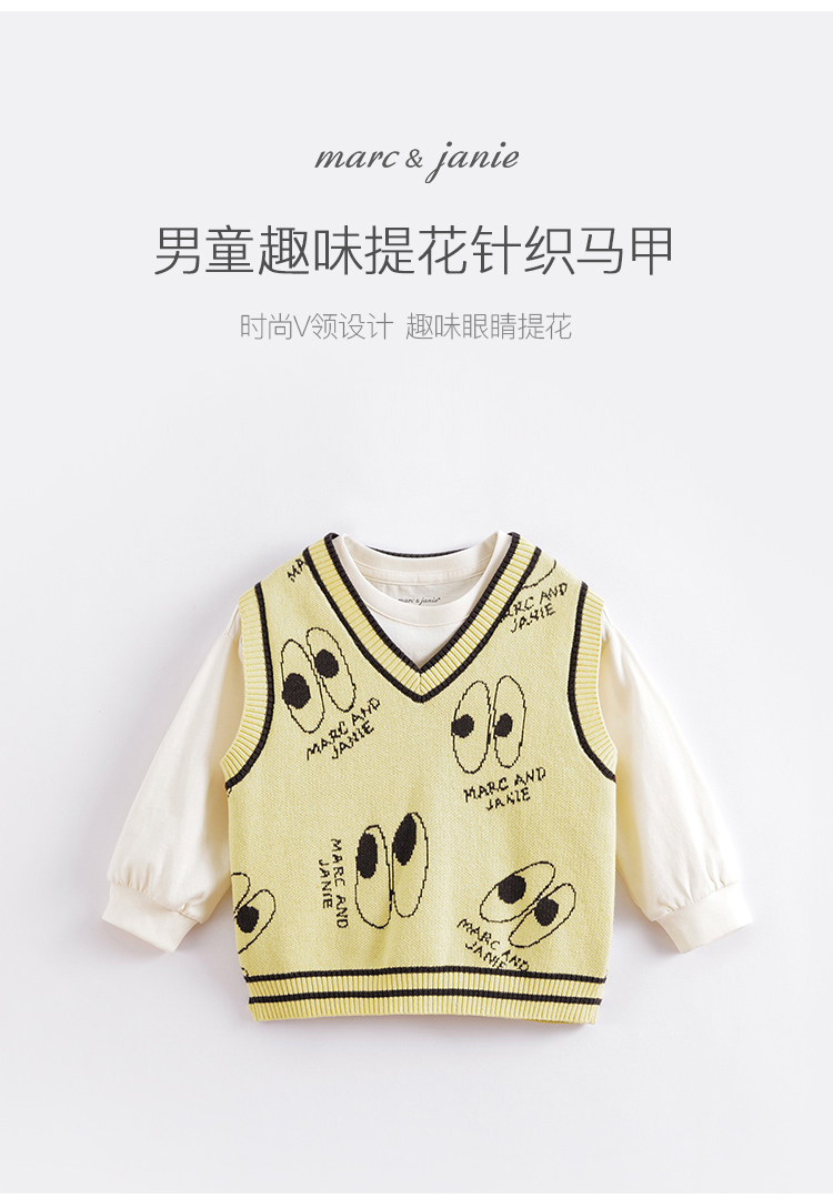 马克珍妮春装新款 男童趣味提花V领针织衫 儿童马甲230127