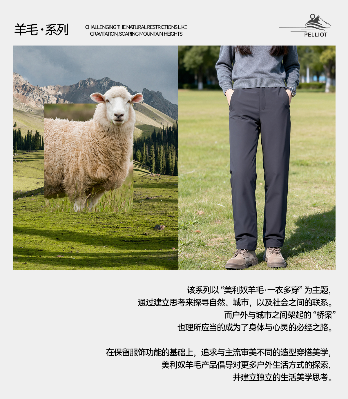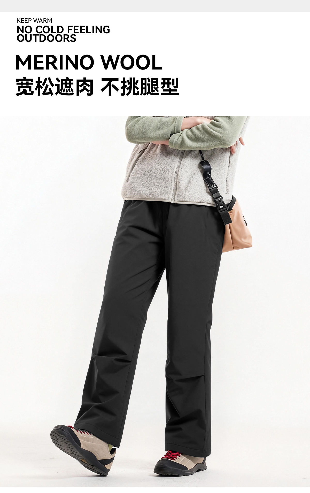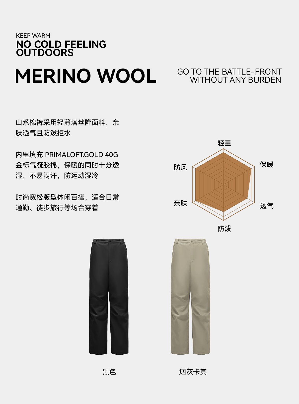 美利奴羊毛保暖防风棉裤冬季女士美丽诺羊毛保暖徒步运动棉裤