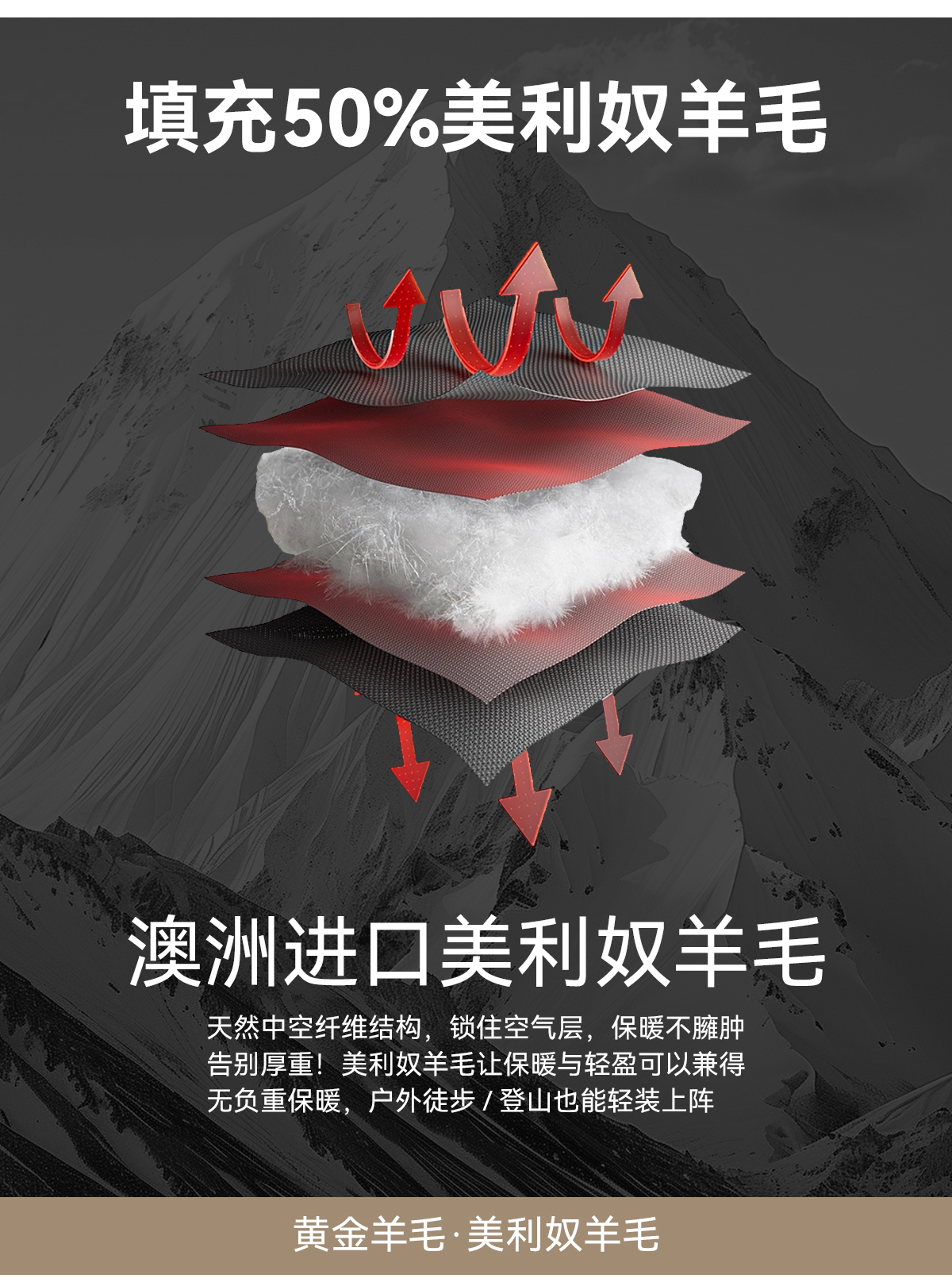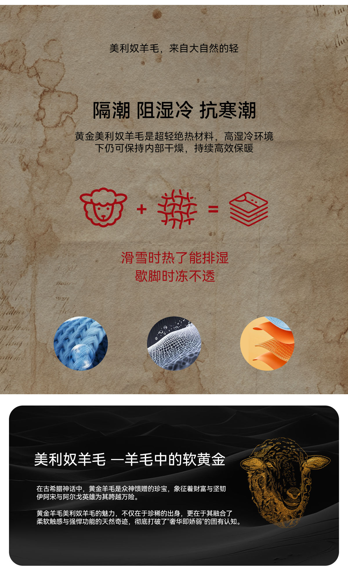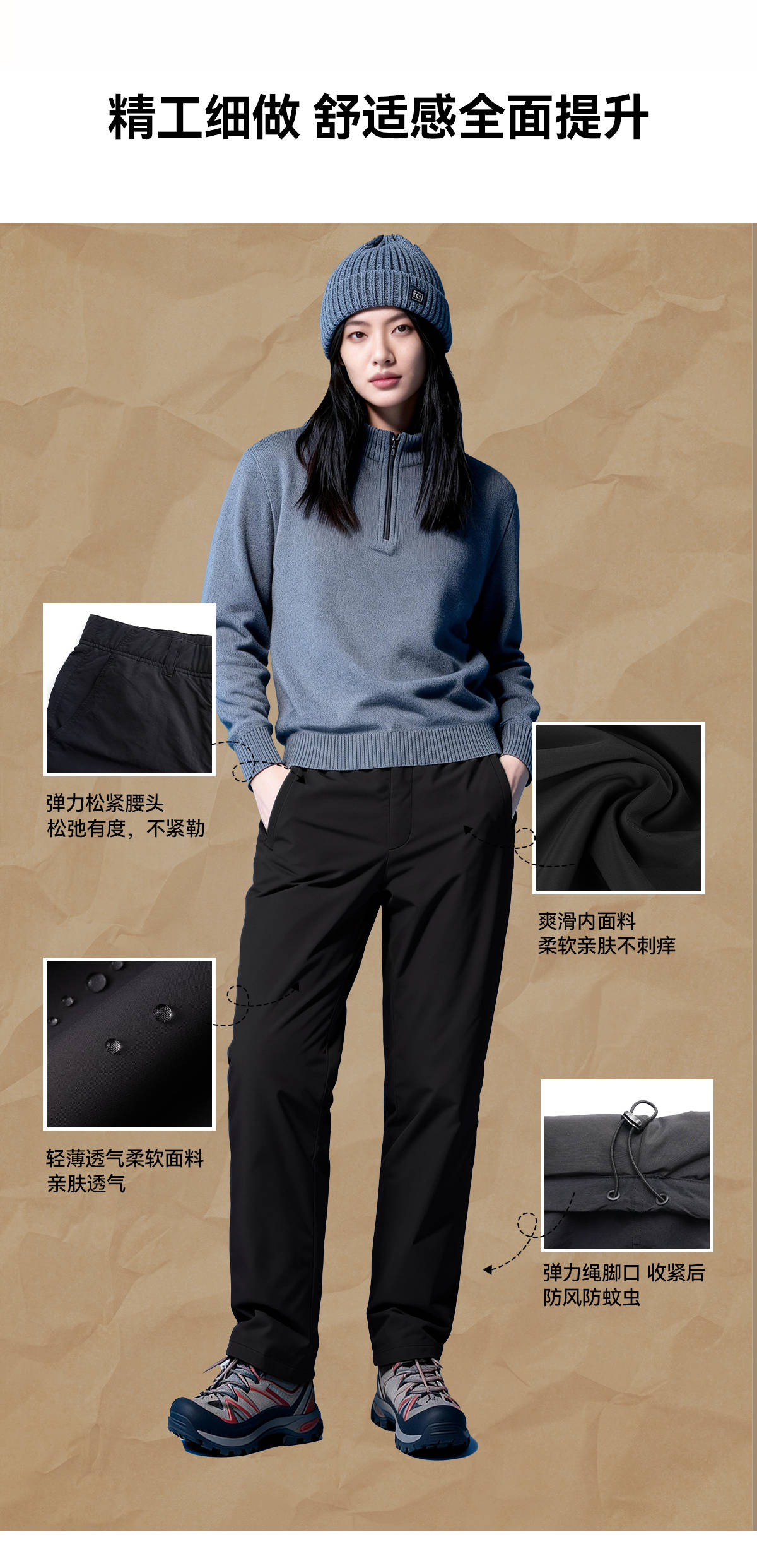 美利奴羊毛保暖防风棉裤冬季女士美丽诺羊毛保暖徒步运动棉裤
