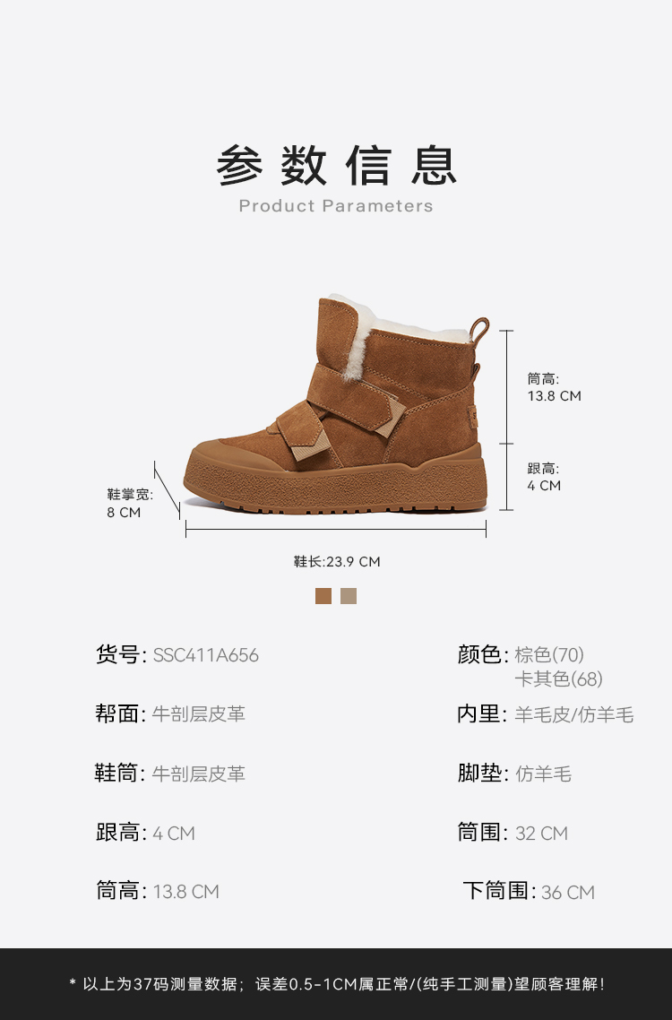 星期六魔术贴包头厚底雪地靴SSC411A656