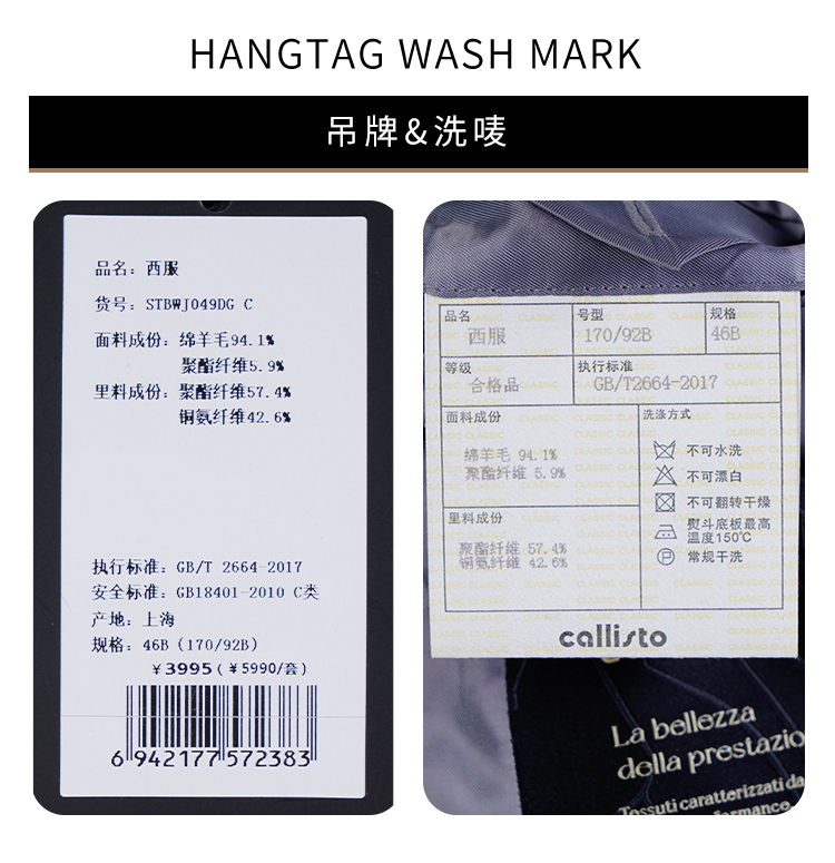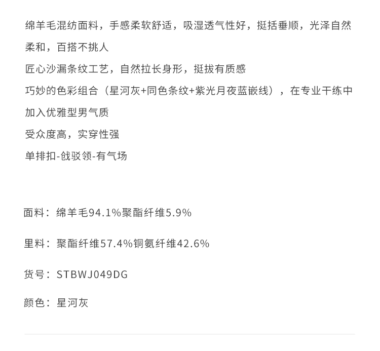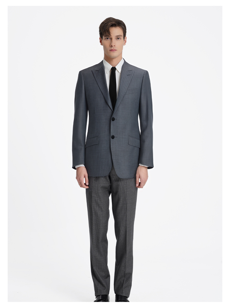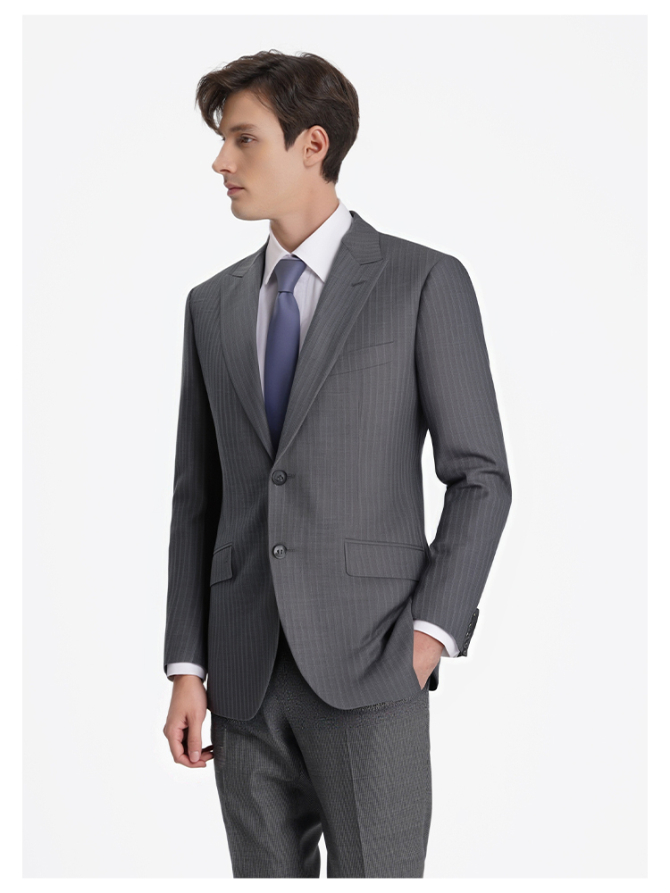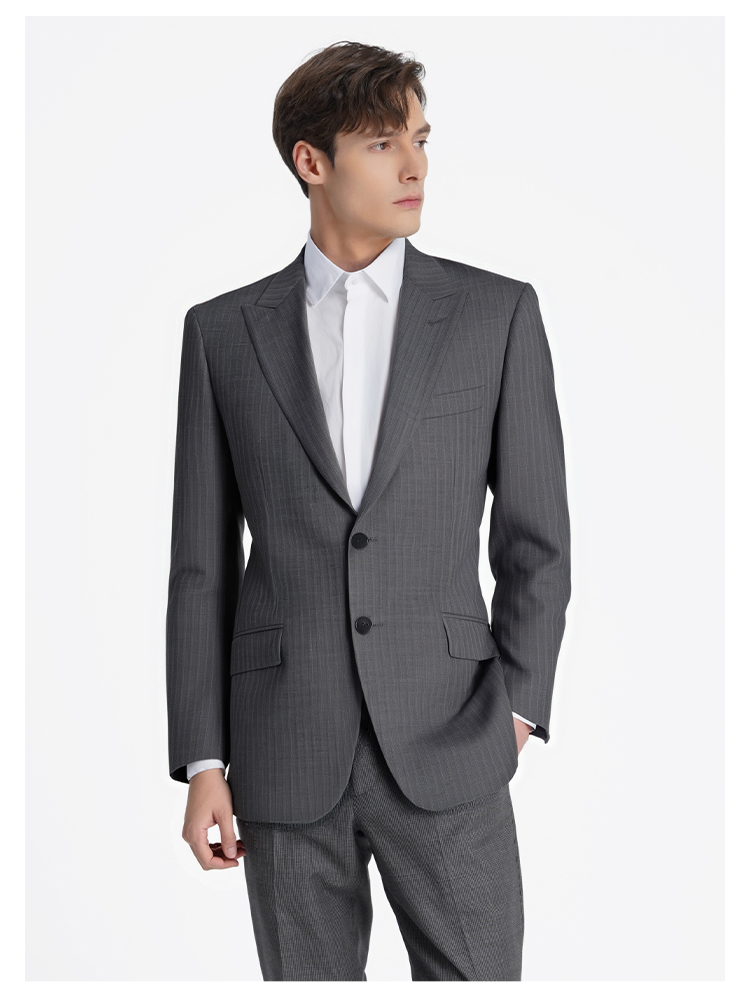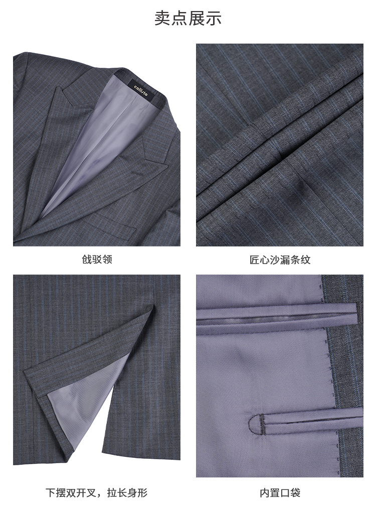 callisto星河灰单排扣戗驳领绵羊毛混纺西服