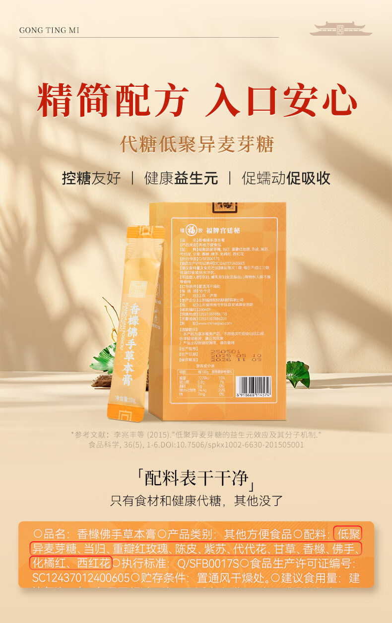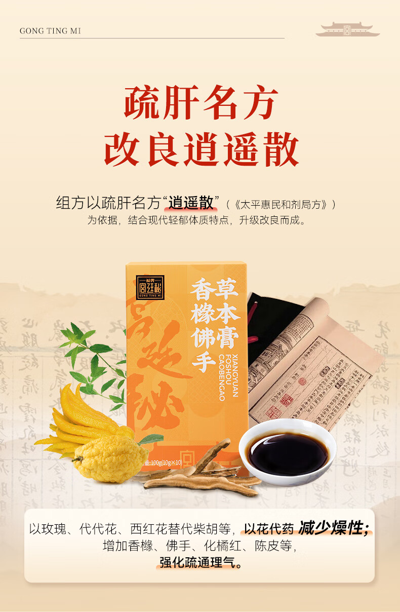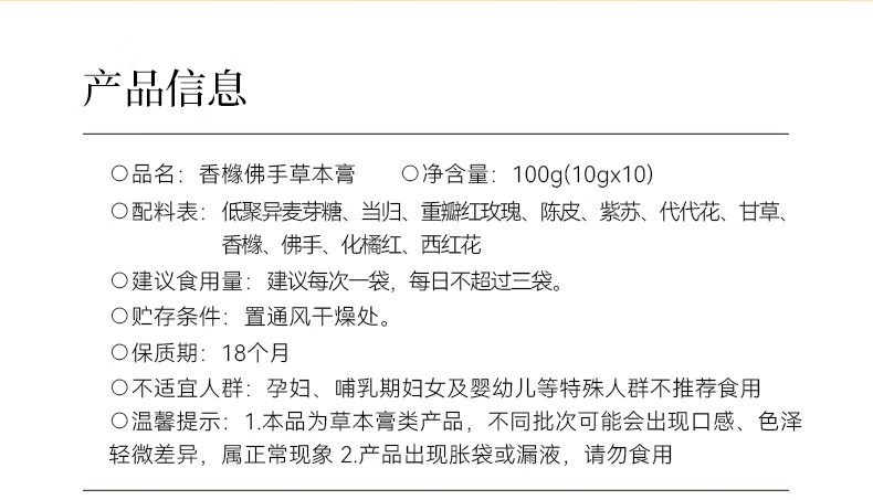 【香橼佛手草本膏,温润舒畅,日常调养好帮手】福牌香橼佛手草本膏100g*3盒/100g*6盒