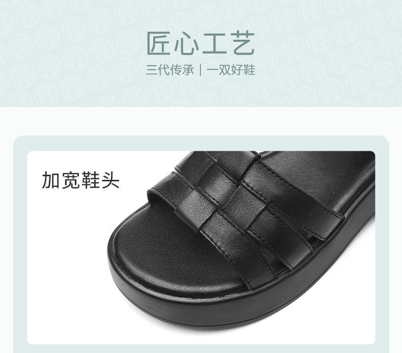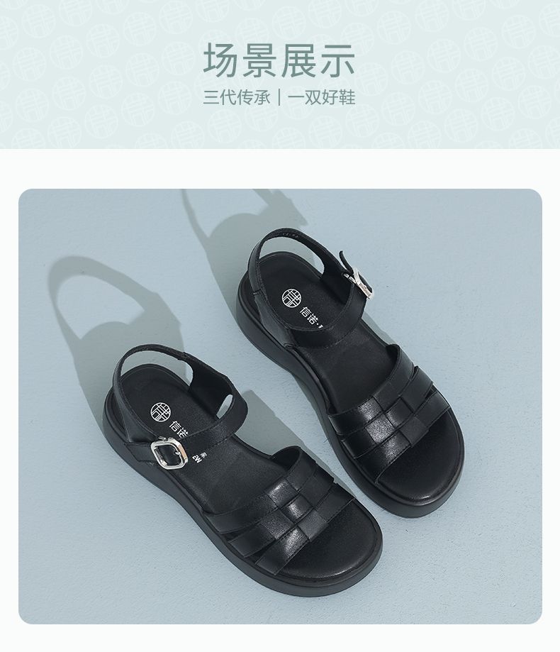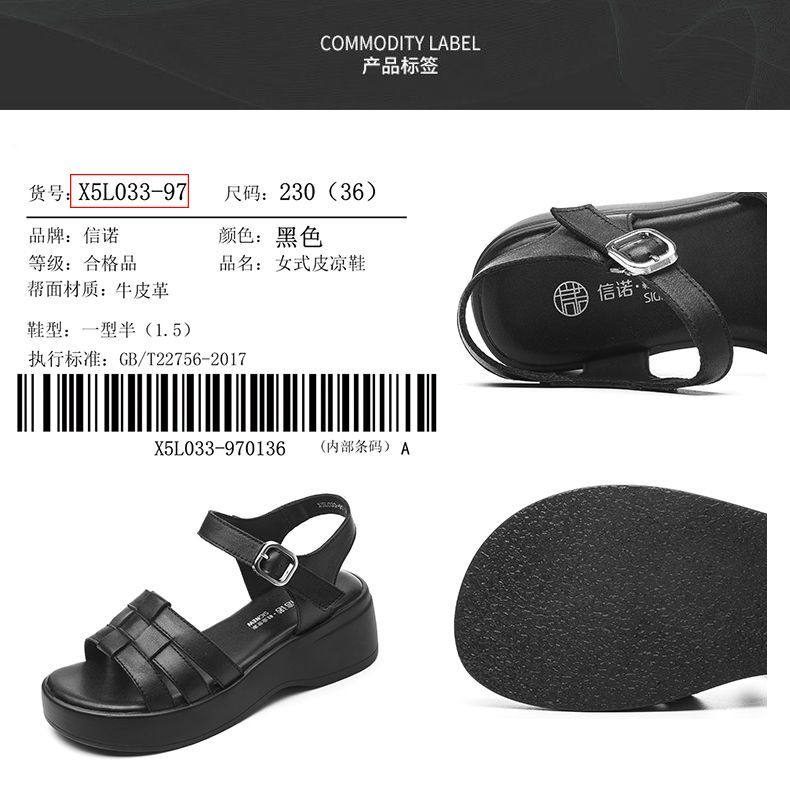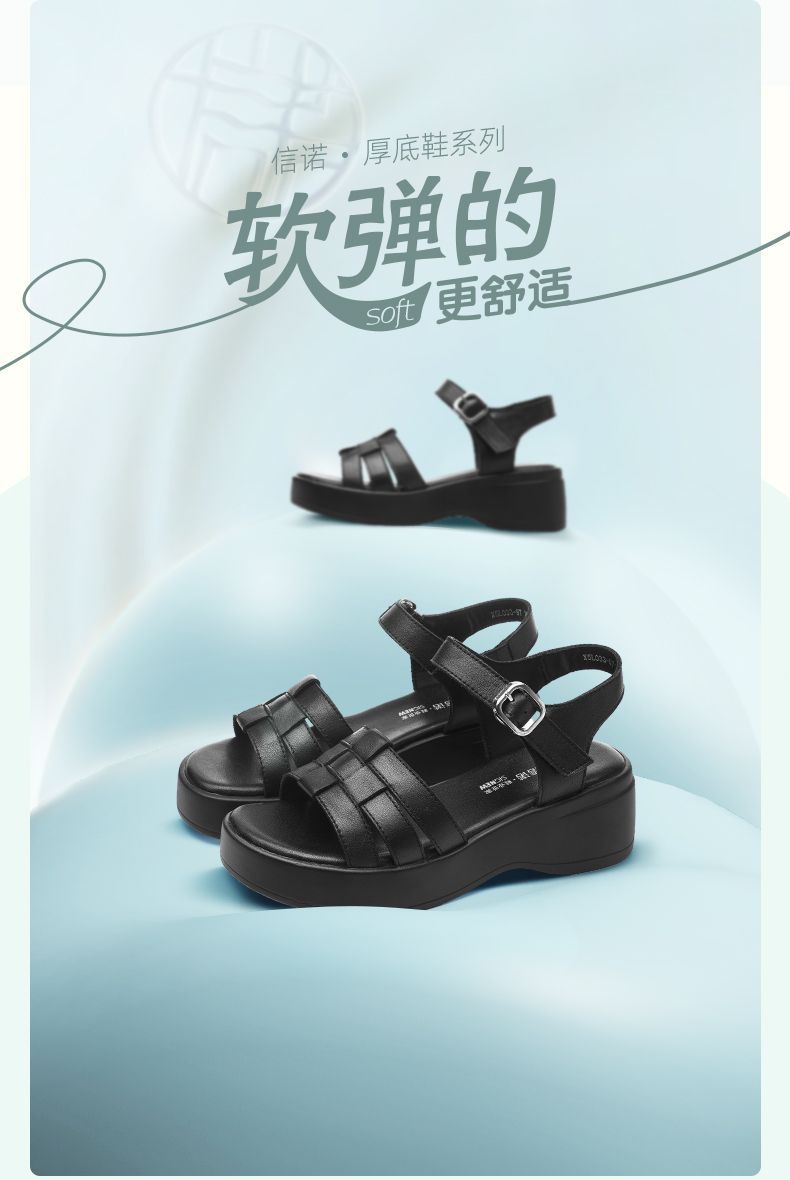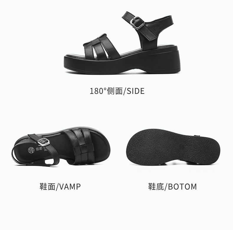 信诺真皮舒适凉鞋女2025夏新款厚底外穿轻便猪笼鞋透气露趾妈妈鞋X5L033-97