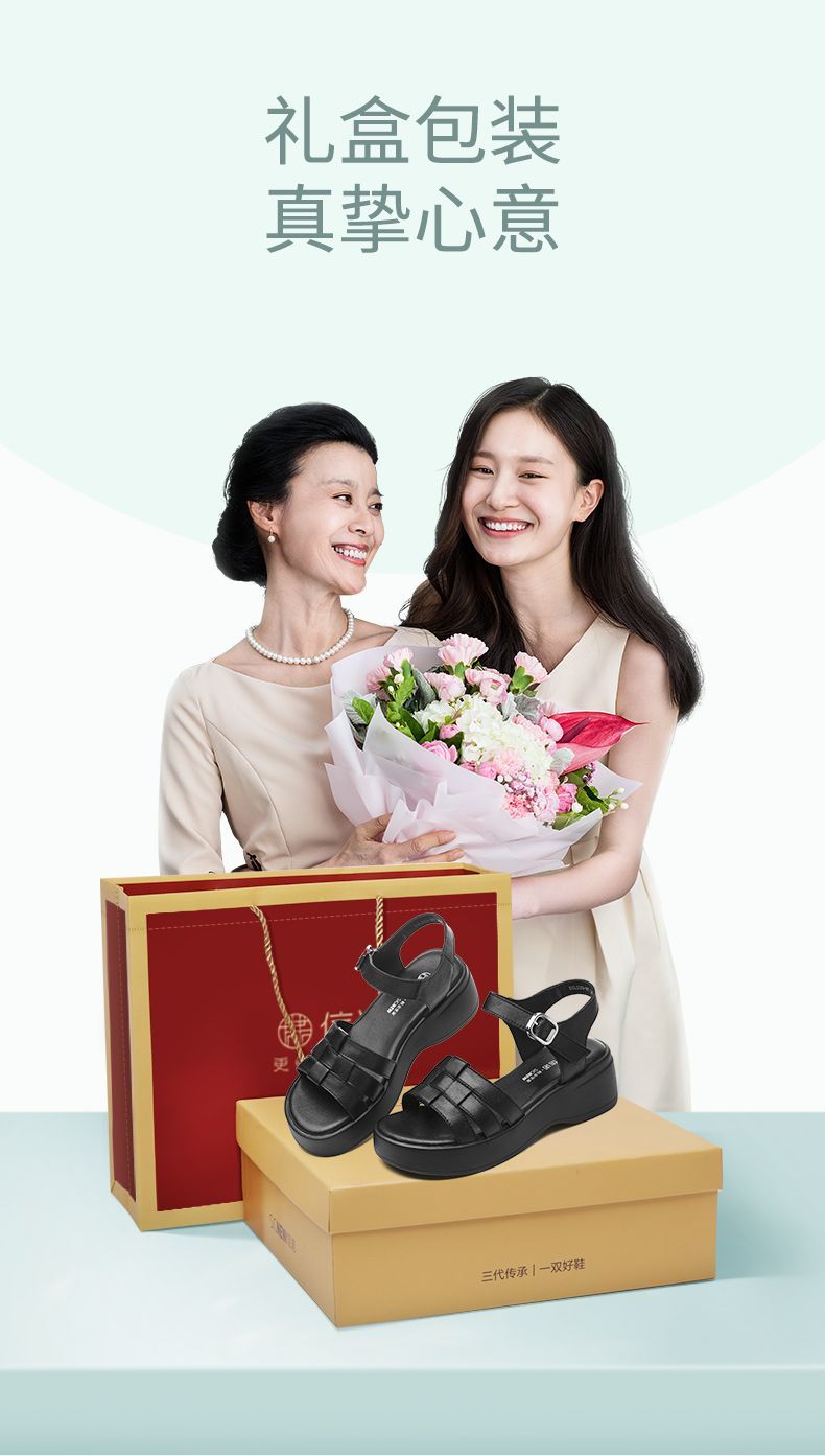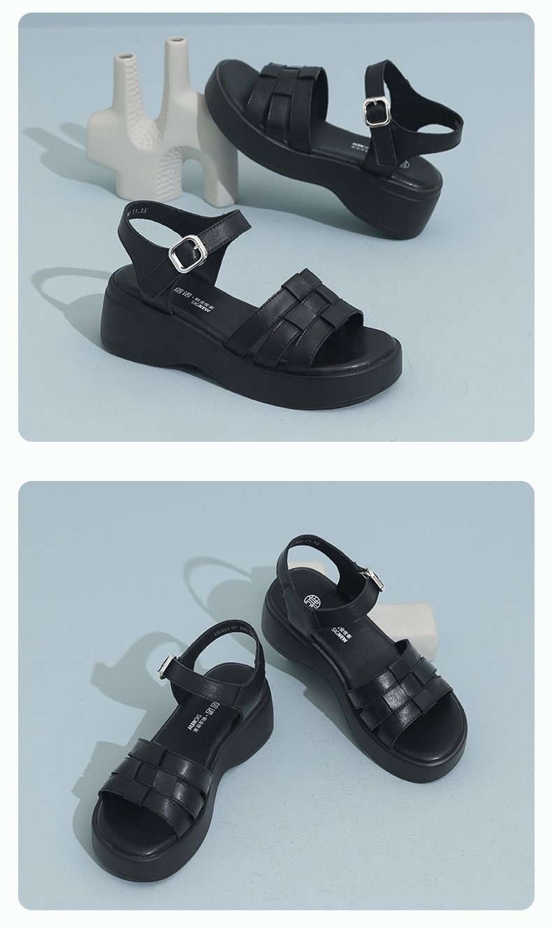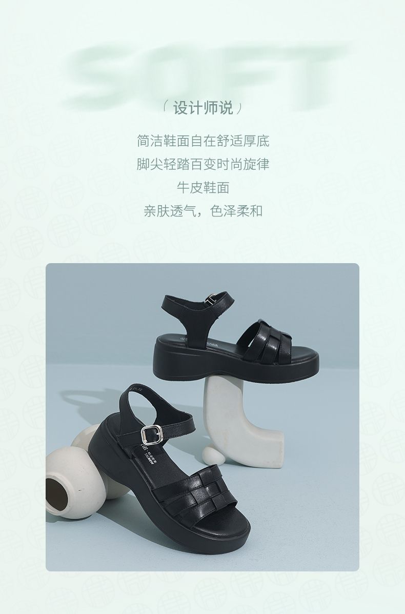 信诺真皮舒适凉鞋女2025夏新款厚底外穿轻便猪笼鞋透气露趾妈妈鞋X5L033-97