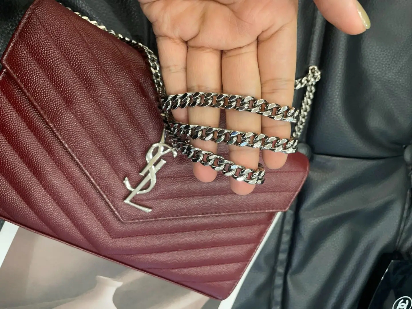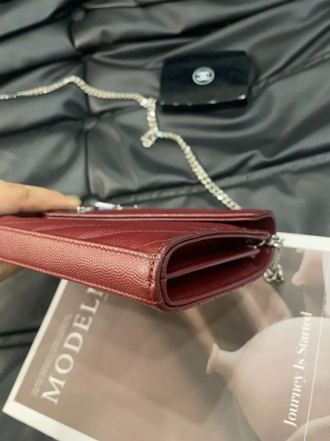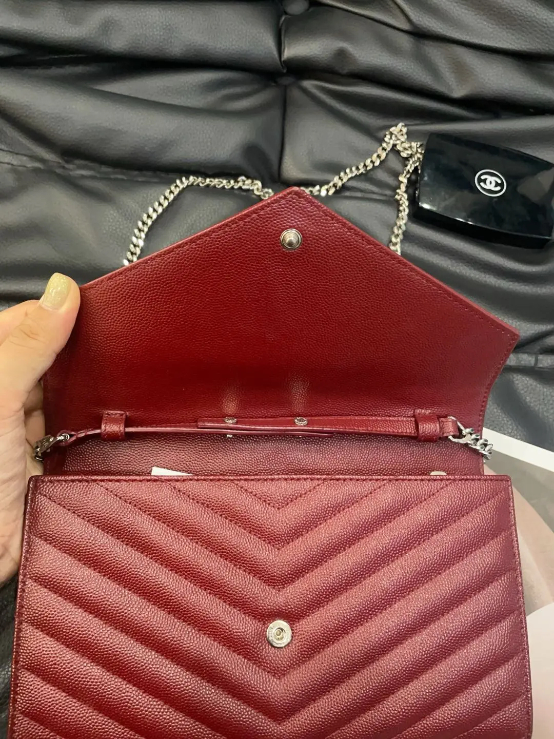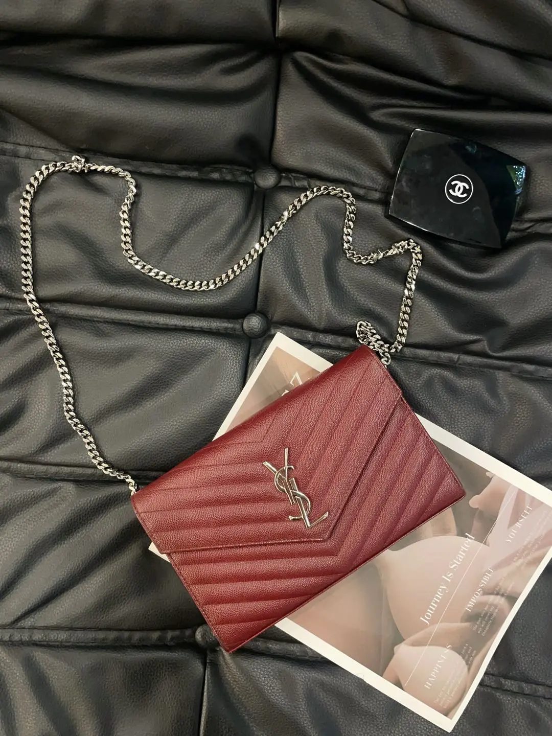 【商品详情】正品二手 YSL 酒红色 中号 牛皮 信封包✉️97新 22*14 配件:链条。优雅复古