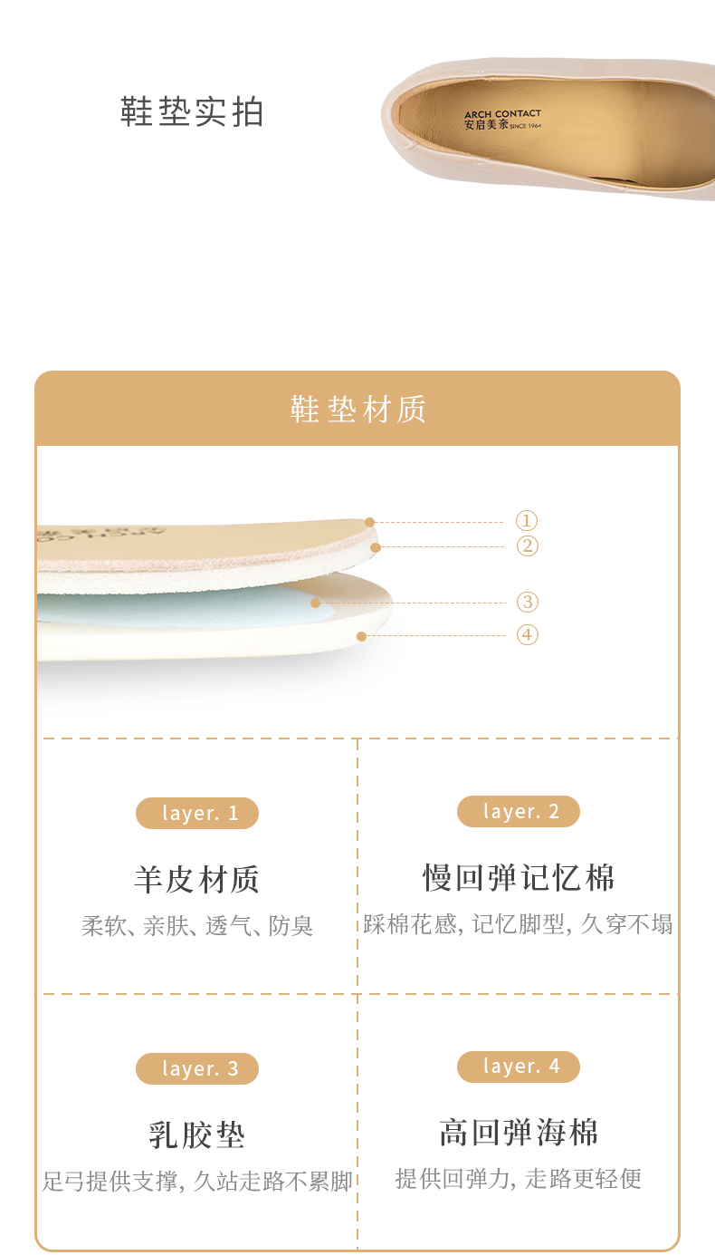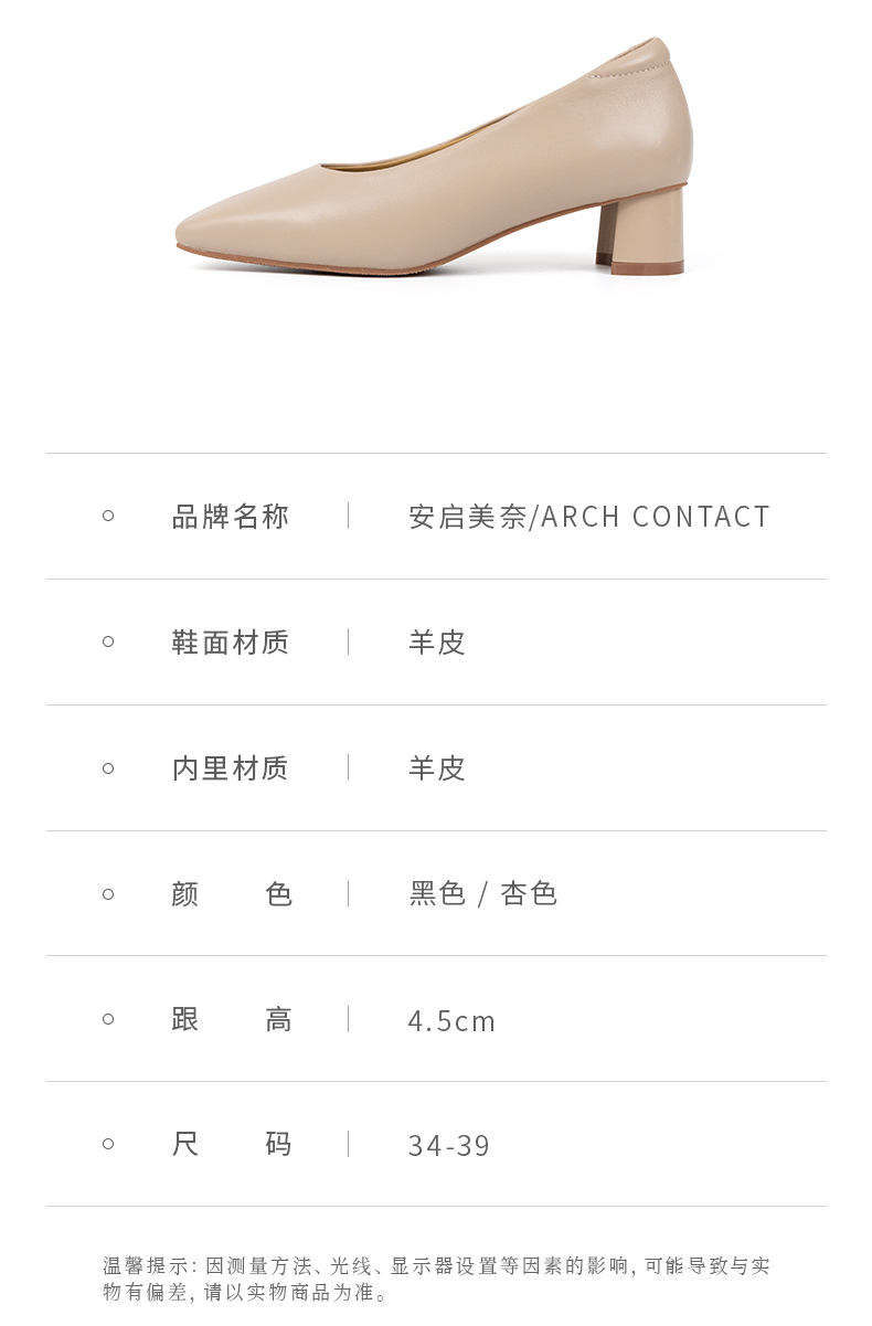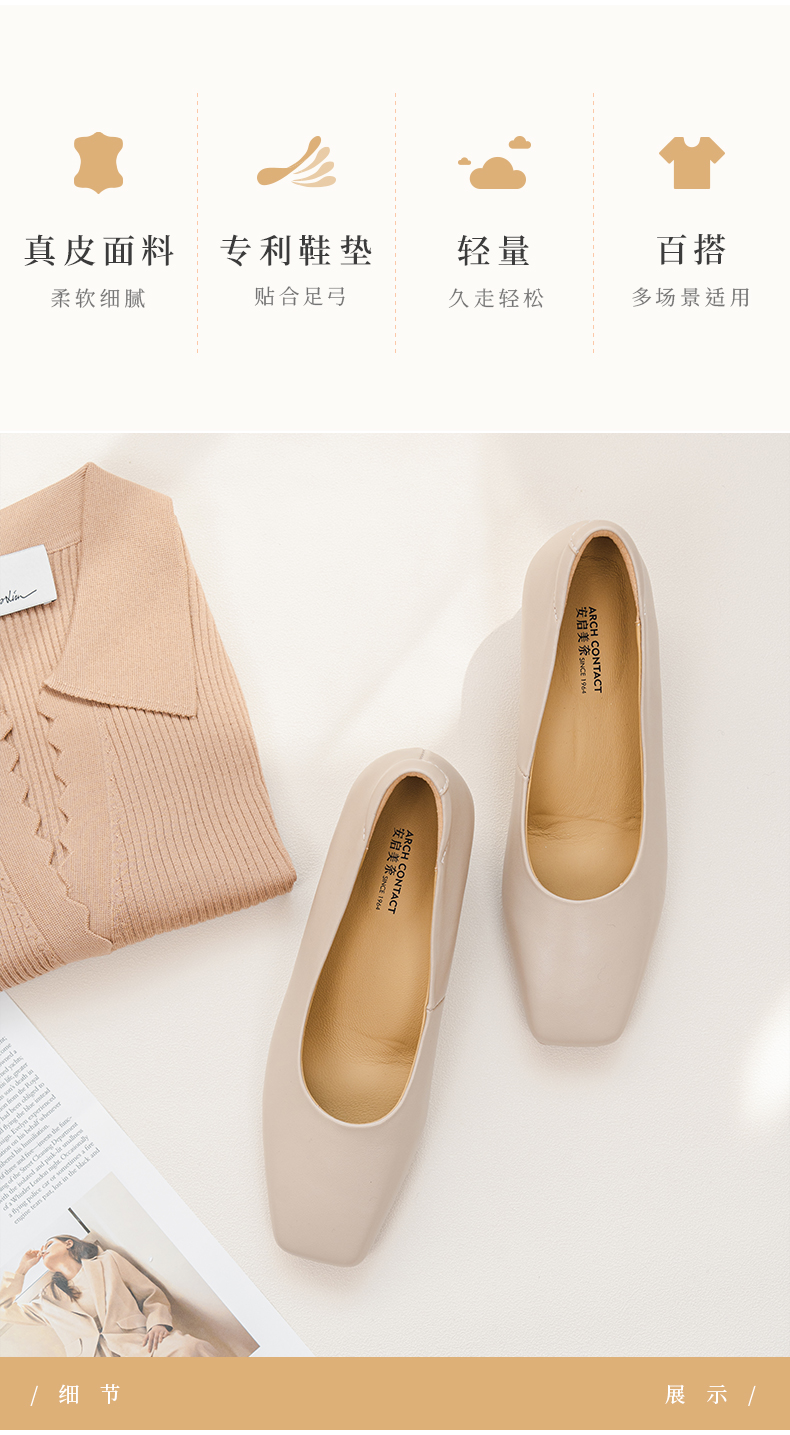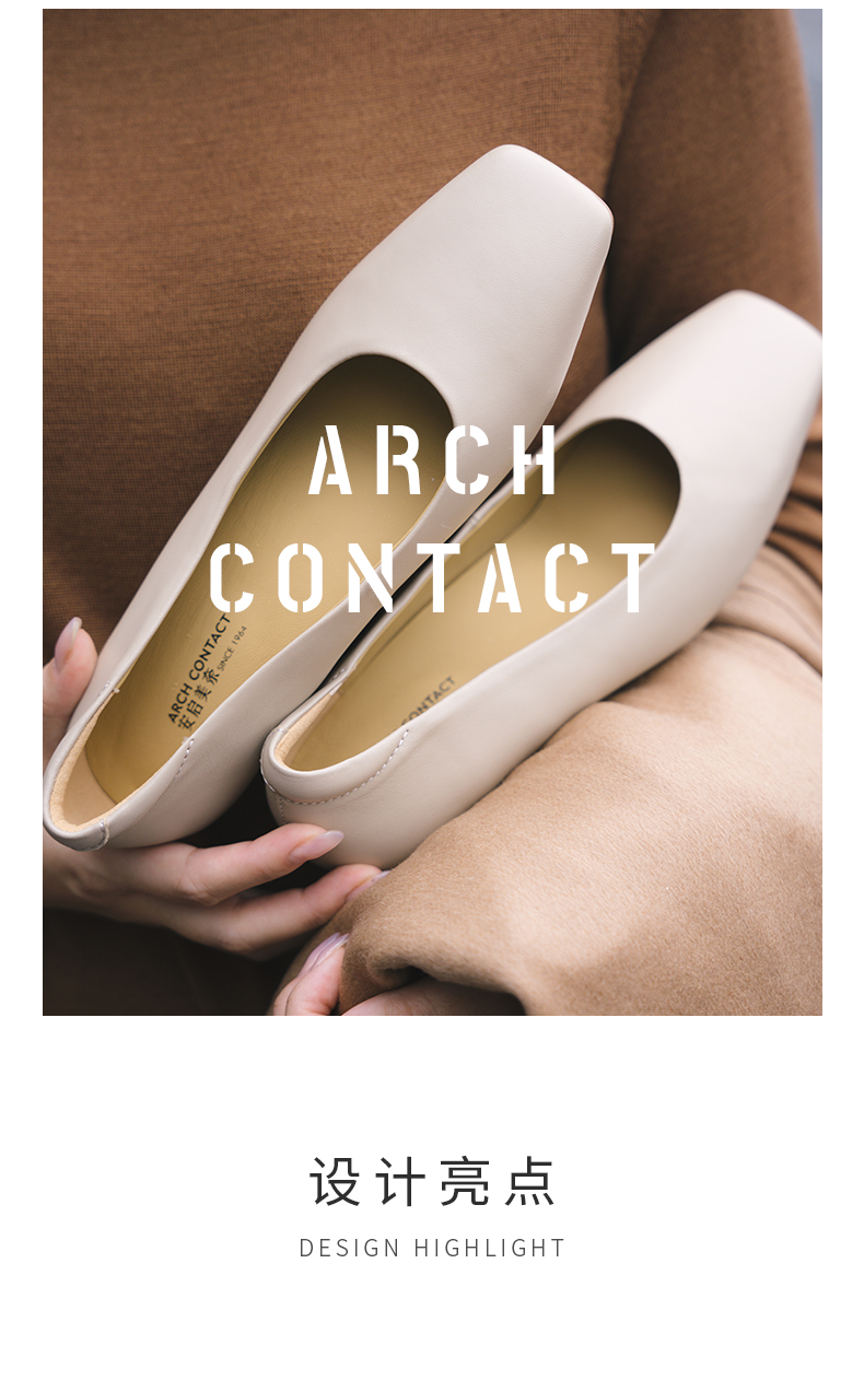 ARCH CONTACT安启美奈秋季新品舒适足弓鞋垫中跟方头舒适女鞋