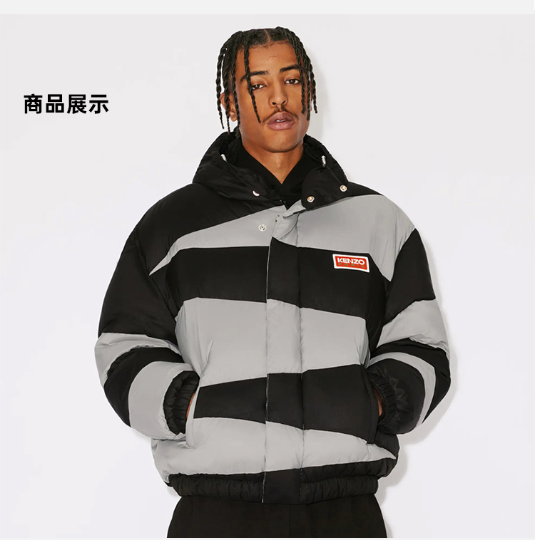 KENZO 高田贤三 男士刺绣徽标绗缝连帽羽绒服 混色 FD65 OU137 9NC 99J