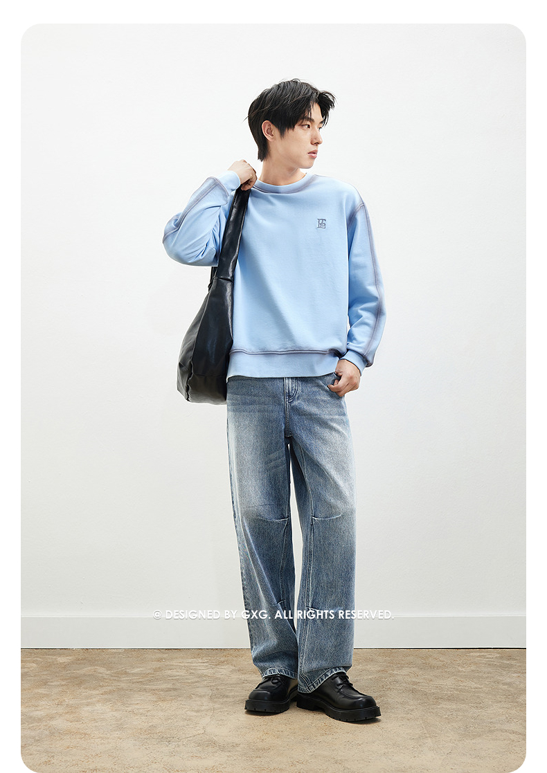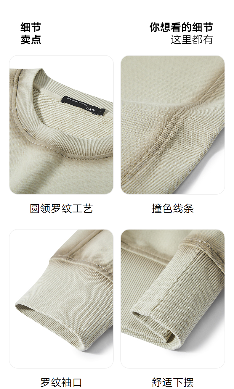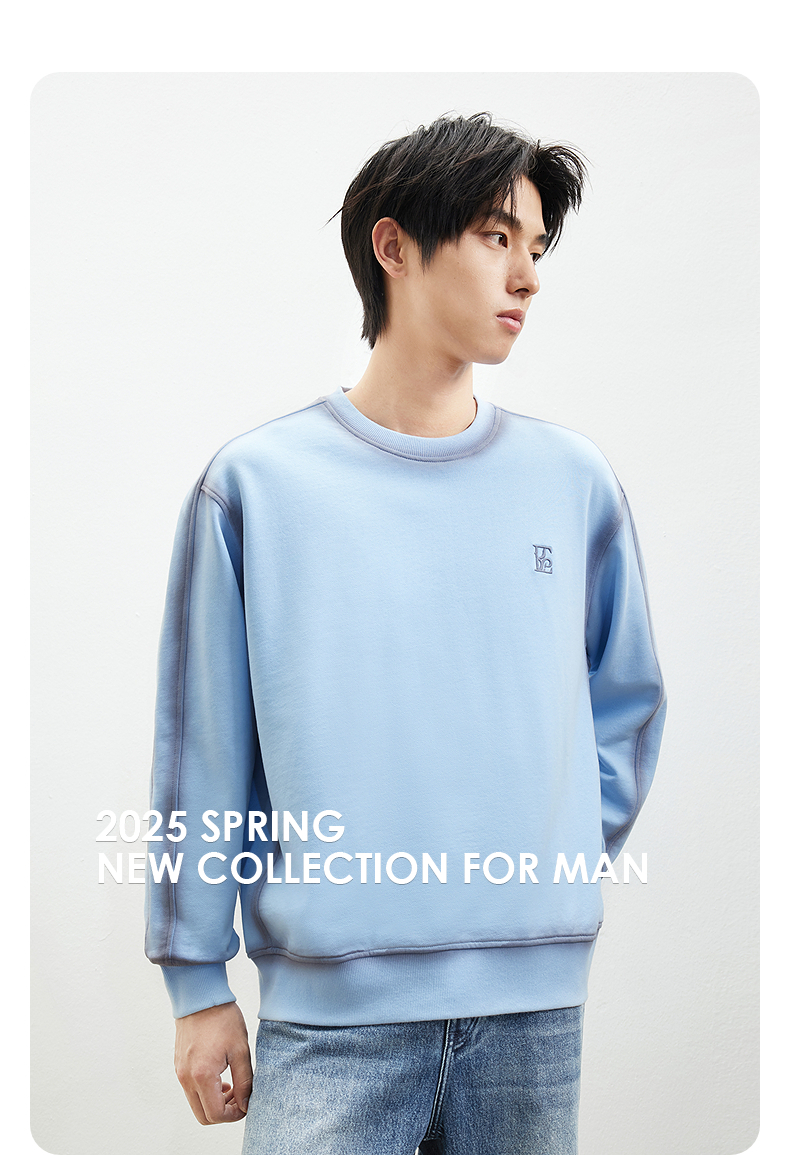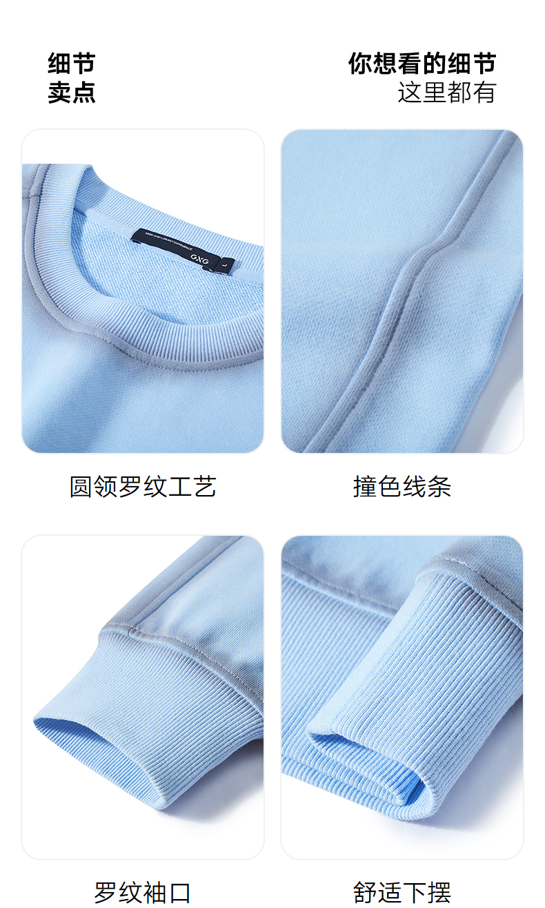 GXG男装 2025年GXG热卖个性潮流撞色线条百搭纯棉圆领卫衣男