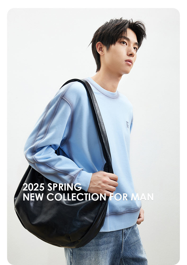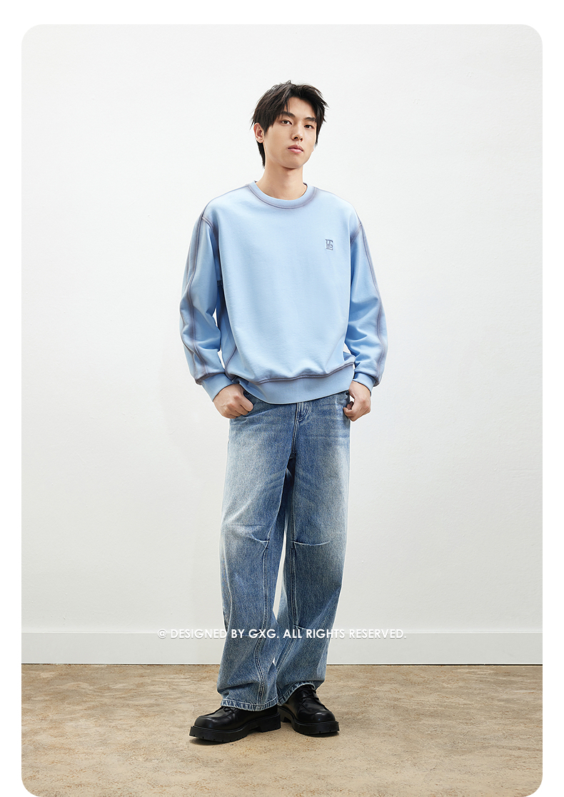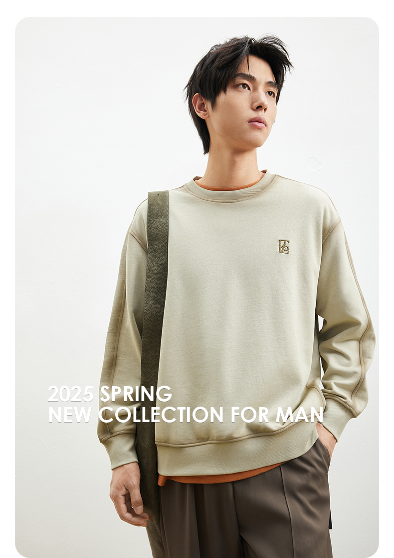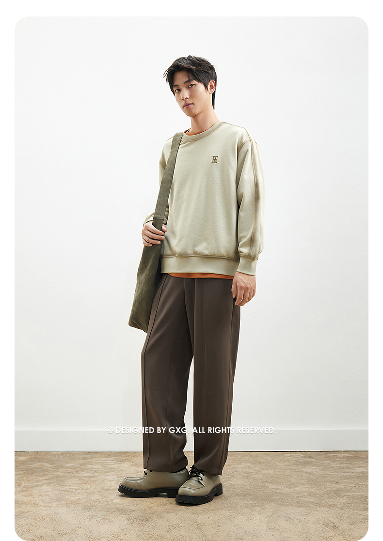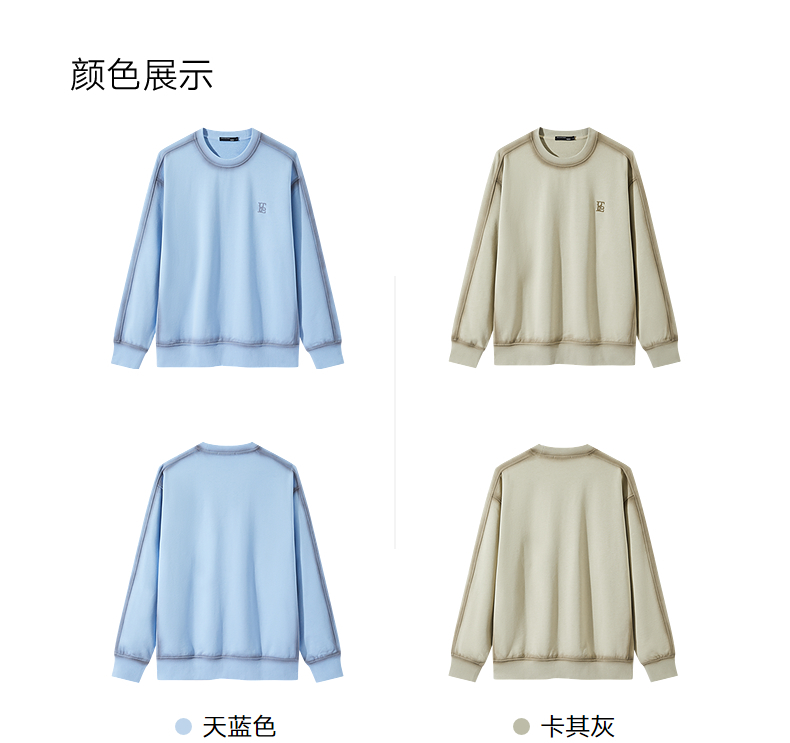 GXG男装 2025年GXG热卖个性潮流撞色线条百搭纯棉圆领卫衣男