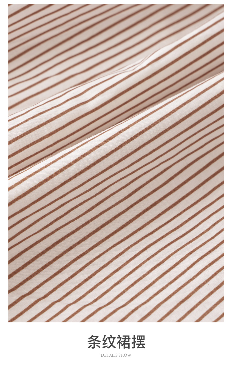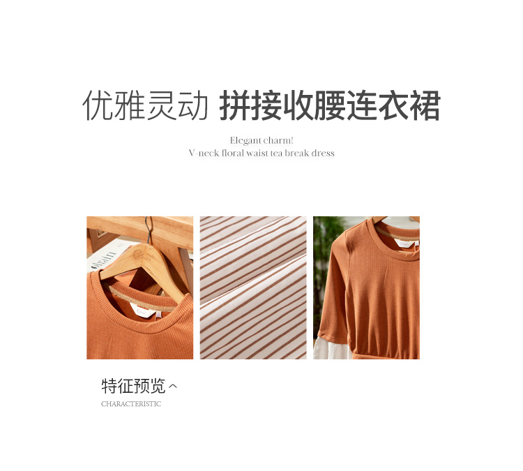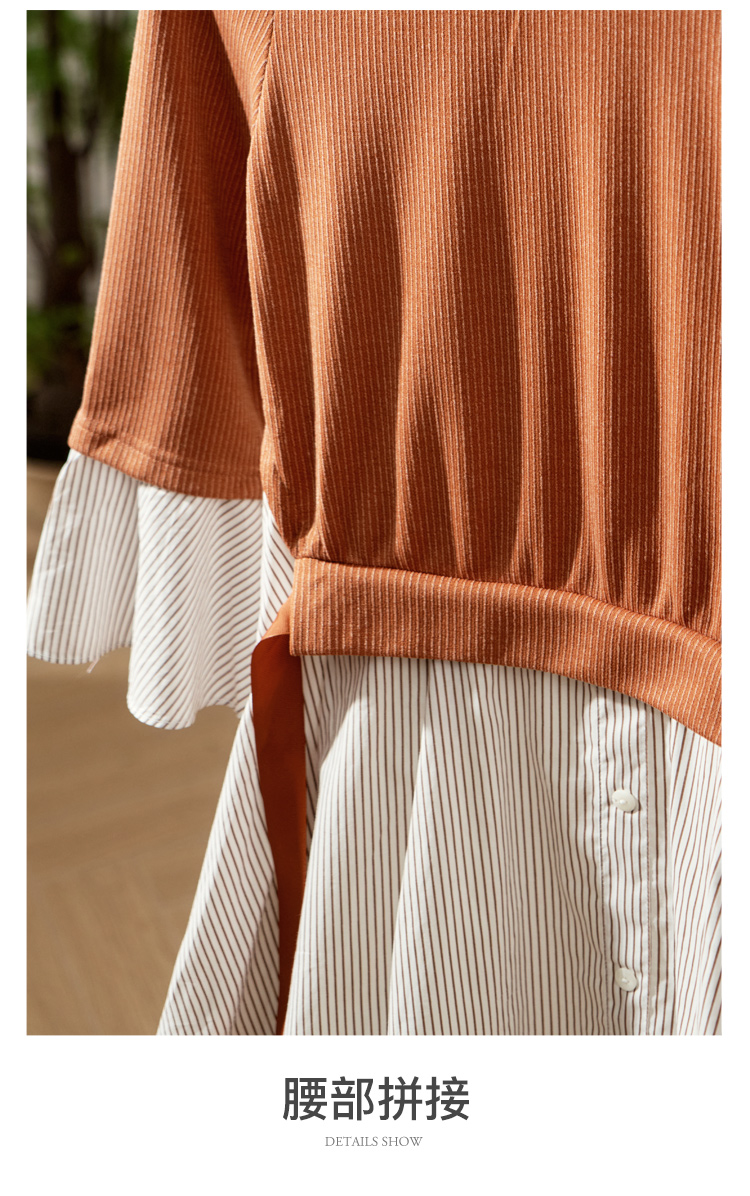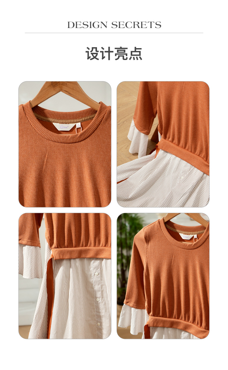 欧芮儿春假两件连衣裙女中长款收腰弹力针织上衣连衣裙针织条纹喇叭袖裙子