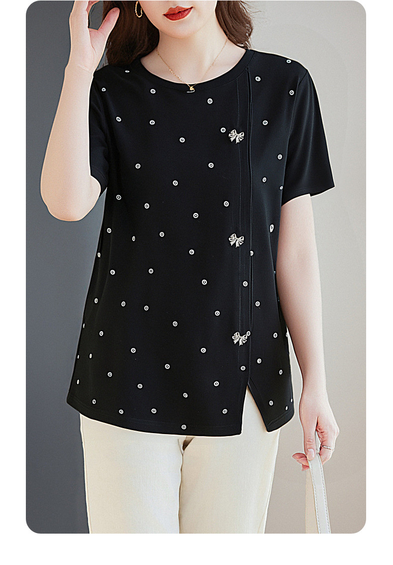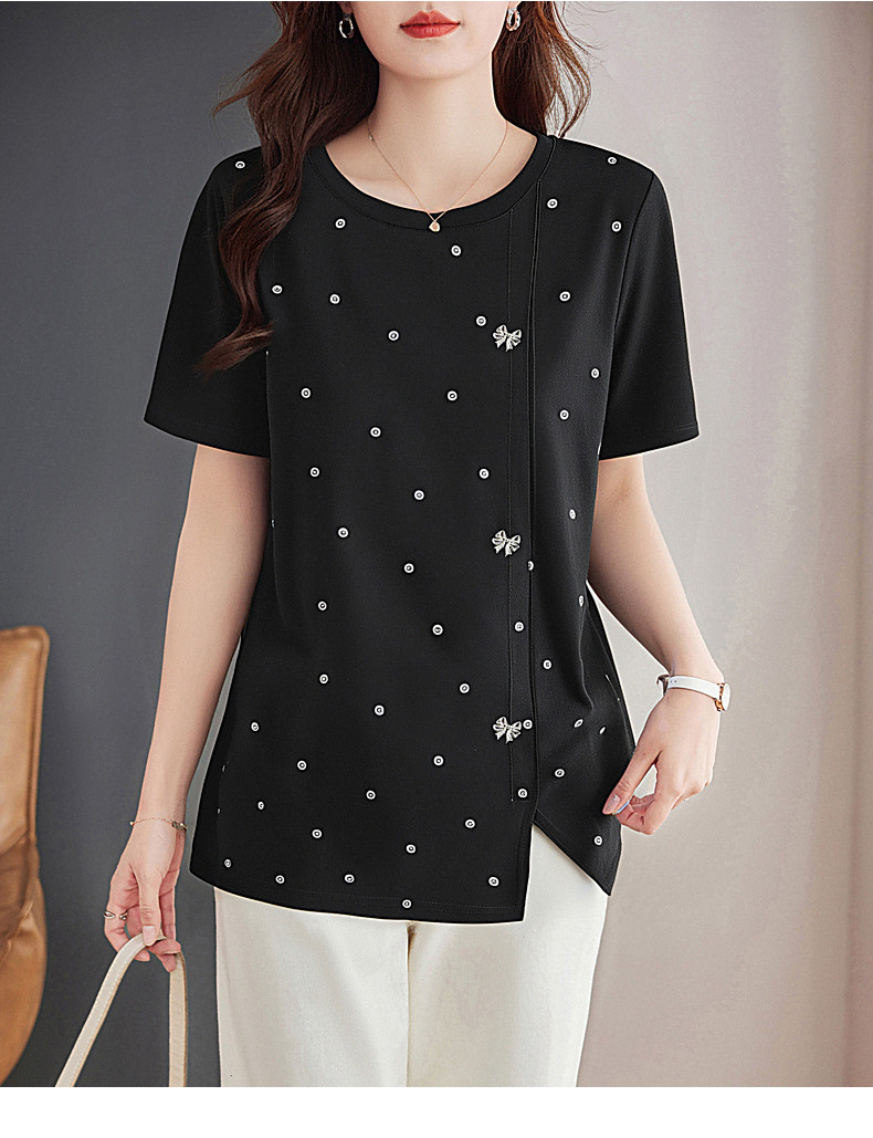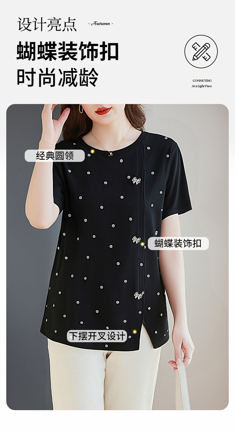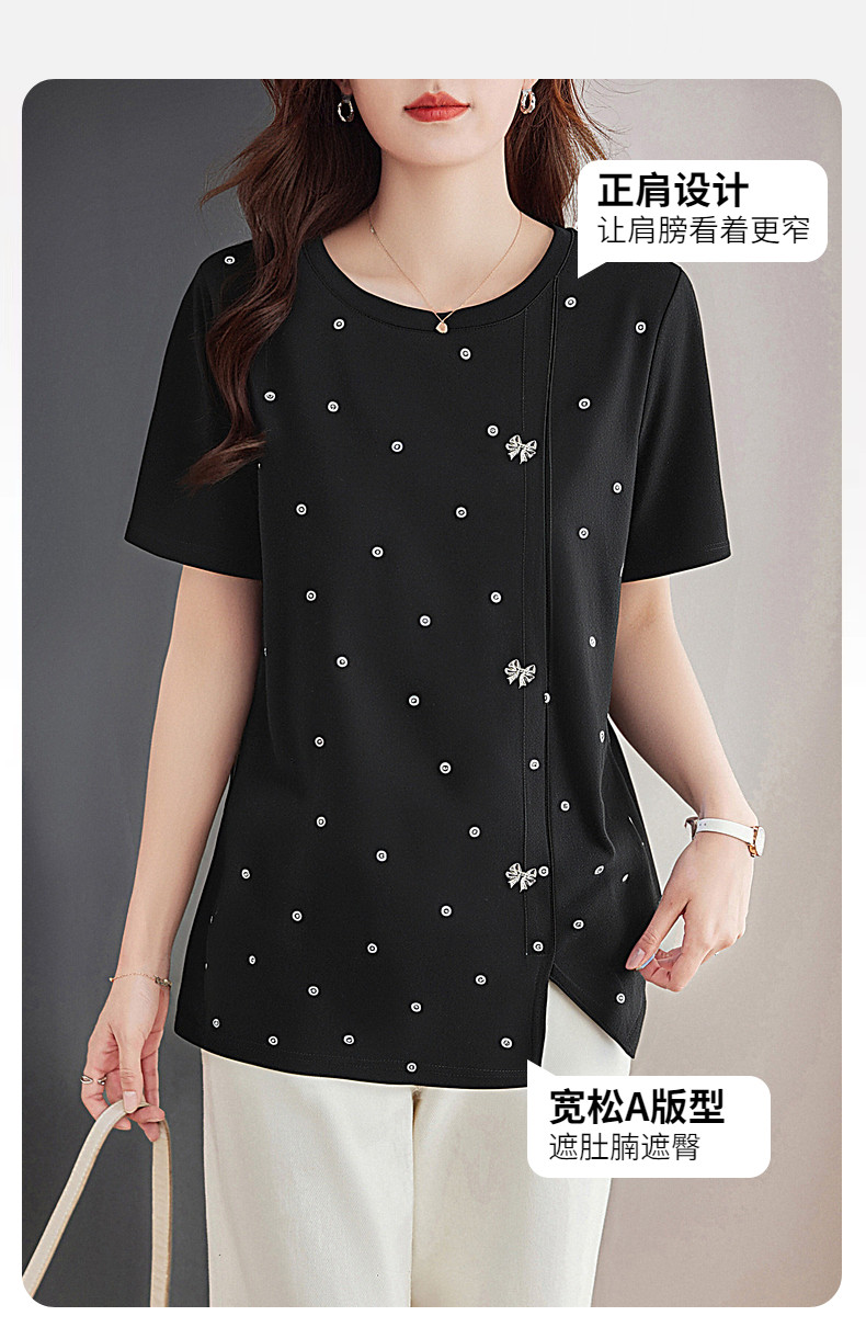波点短袖女t恤2026年新款夏季印花圆领上衣减龄大码女装时尚洋气