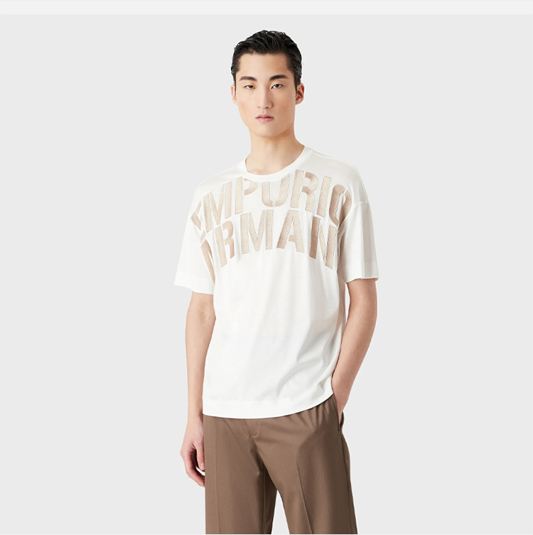 EMPORIO ARMANI 阿玛尼 男士字母徽标印花圆领短袖T恤 白色 3R1TZ2 1JUVZ 01G1