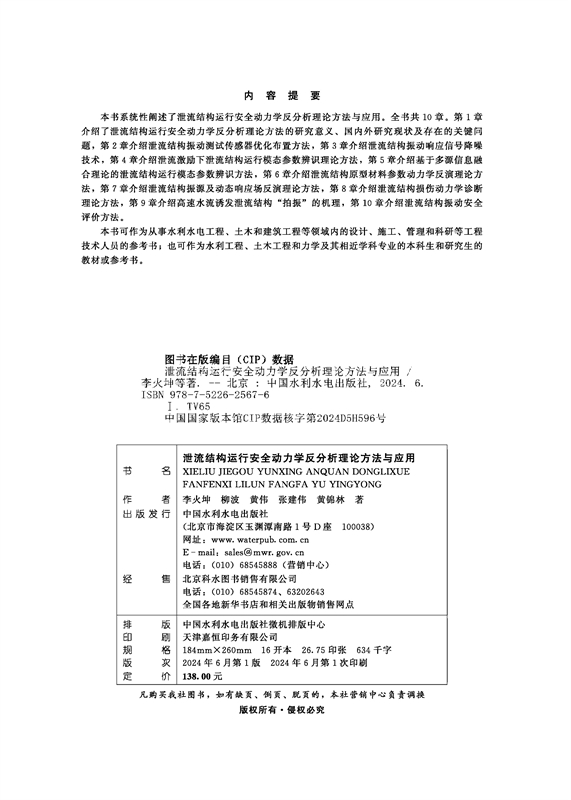 本书基于我国部分大型泄流结构的振动测试资料及试验成果,系统阐述了泄流结构运行安全动力学诊断的理论方法及应用。全书共9章,第1章介绍了泄流结构运行安全动力学诊断研究的意义,国内外研究现状及存在的问题;第2章介绍泄流结构振动测试的传感器优化布置方法;第3章介绍泄流结构振动响应信号的降噪技术;第4章介绍泄流激励下泄流结构运行模态参数辨识的理论方法;第5章介绍基于多源信息融合理论的泄流结构运行模态参数辨识方法;第6章介绍泄流结构原型材料参数动力学反演的理论方法;第7章介绍泄流结构振源及动态响应场反演的理论方法;第8章介绍高速水流诱发泄流结构“拍振”的机理;第9章介绍泄流结构损伤的动力学诊断理论方法;第10章介绍泄流结构振动安全评价方法。本书可作为从事水利水电工程、土木和建筑工程等领域内的设计、施工、管理和科研等工程技术人员的参考书;也可作为水利水电、土木和工程力学及其相近专业的本科生和研究生的教材或参考书。