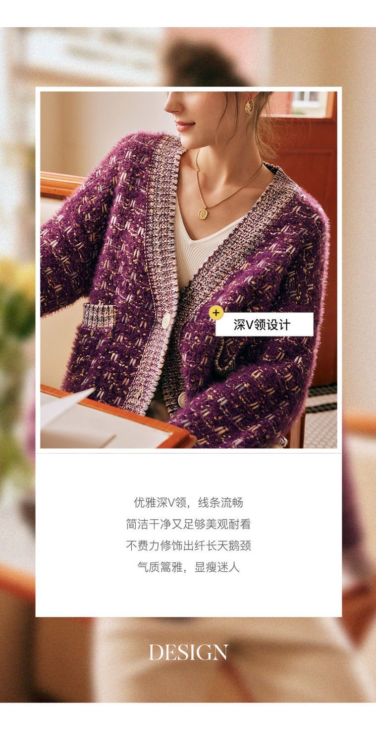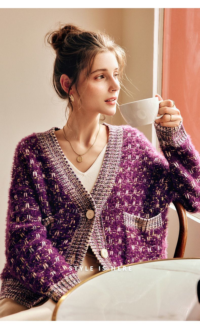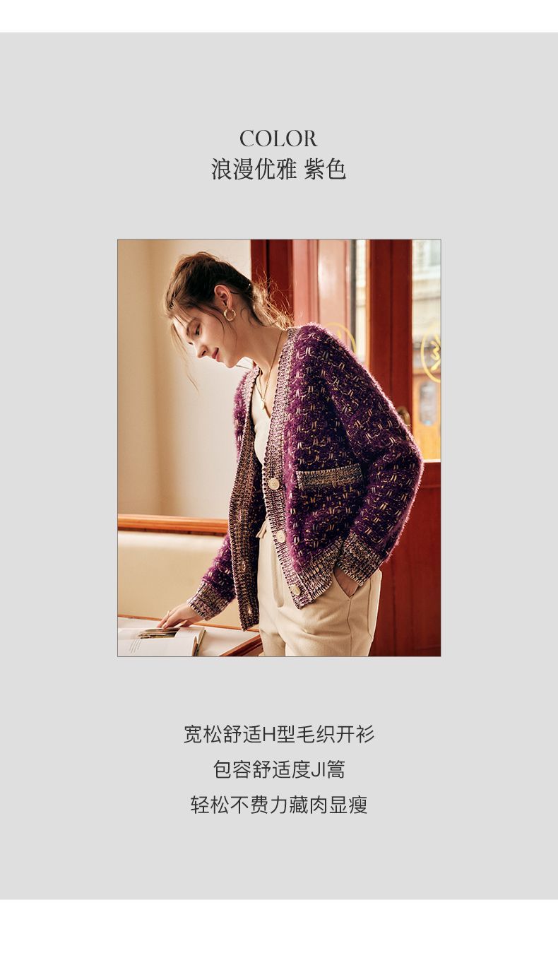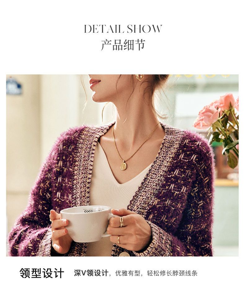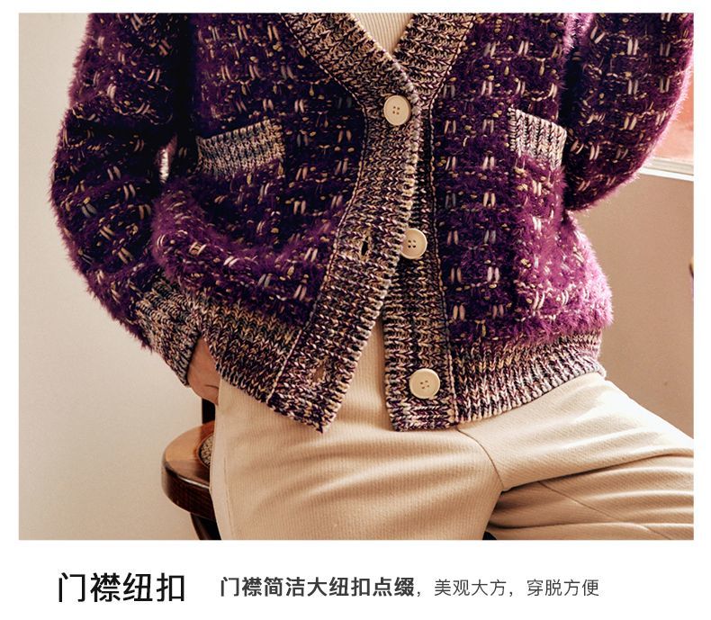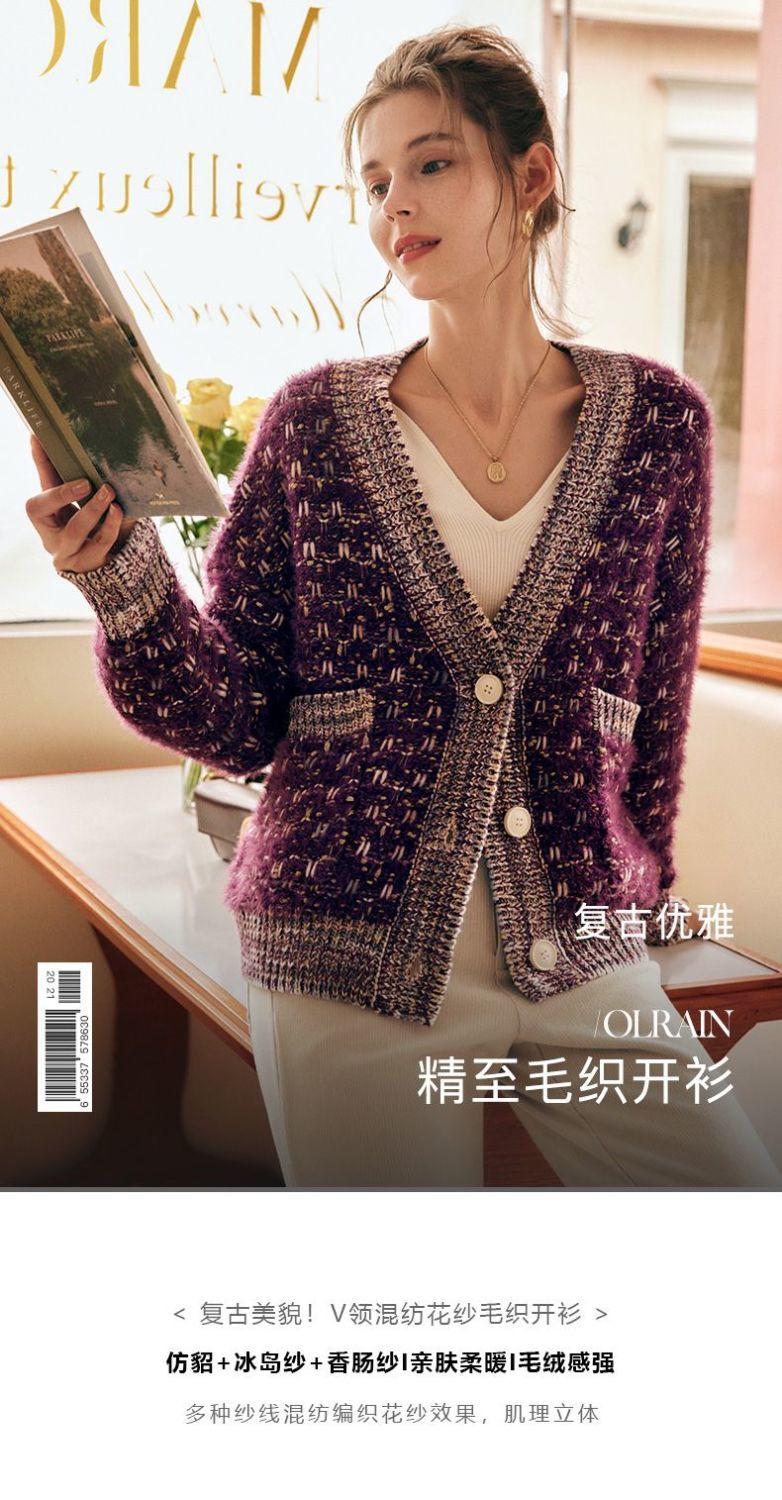 OLrain欧芮儿法式紫色毛衣外套女春季2025年新款宽松复古针织开衫