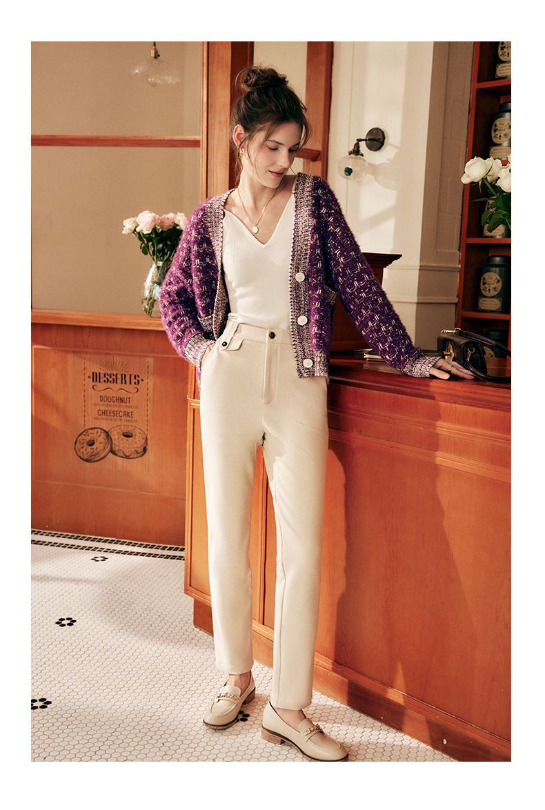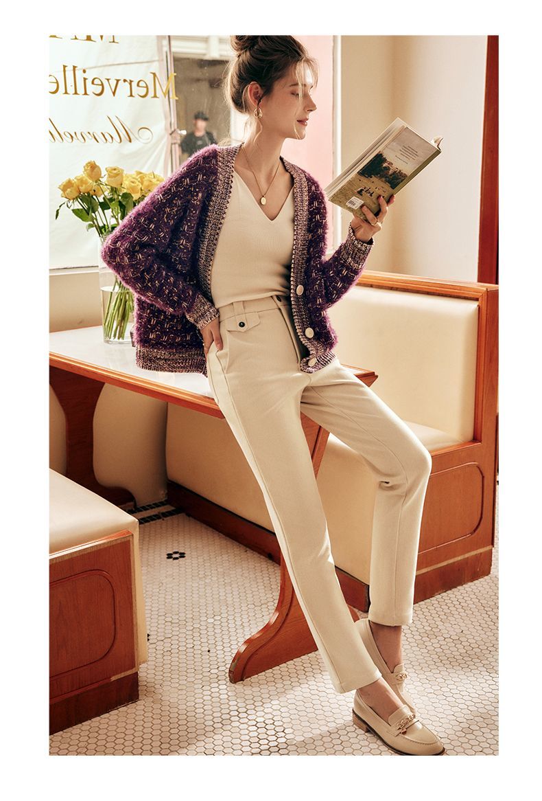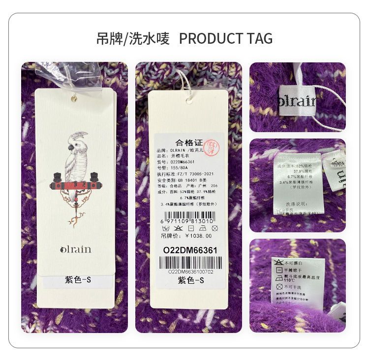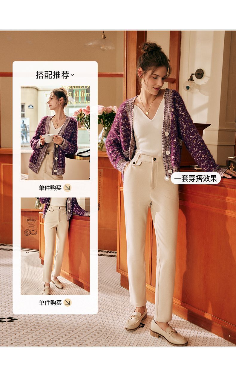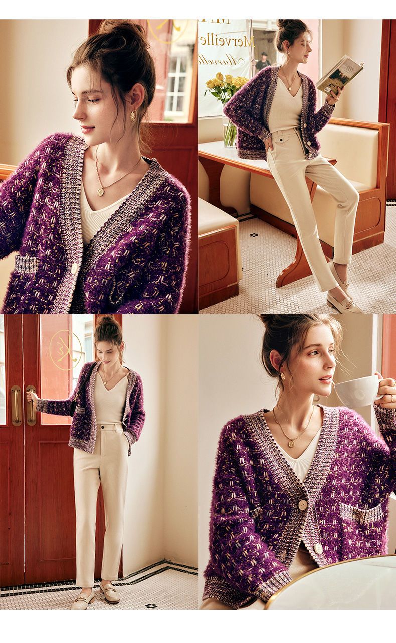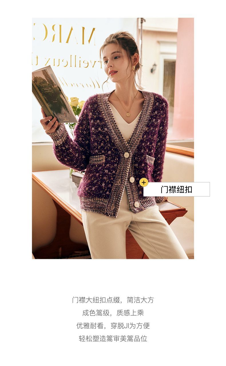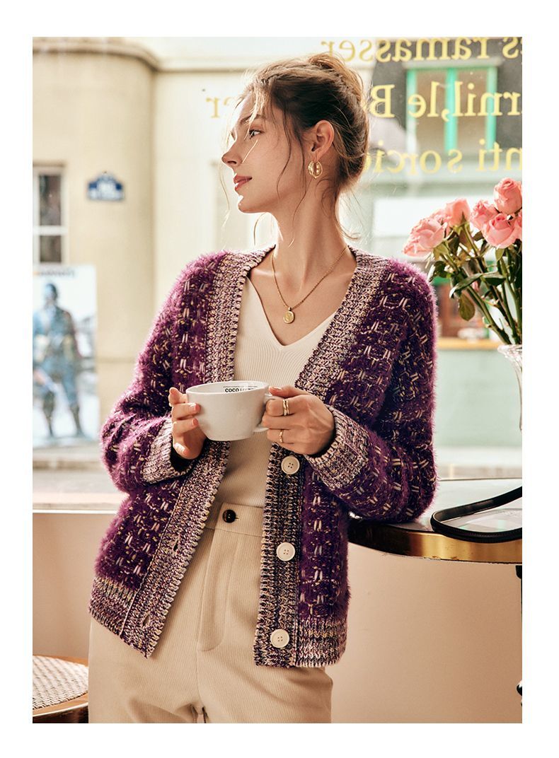 OLrain欧芮儿法式紫色毛衣外套女春季2025年新款宽松复古针织开衫