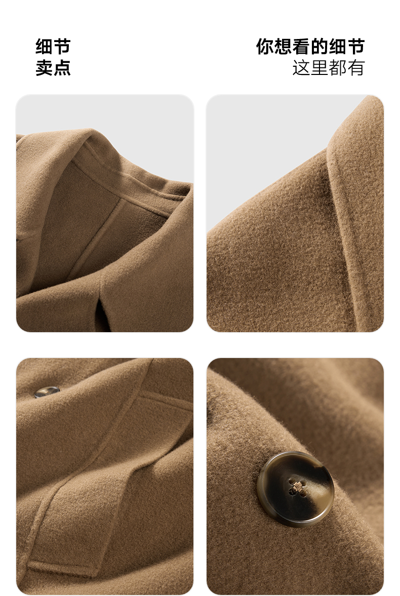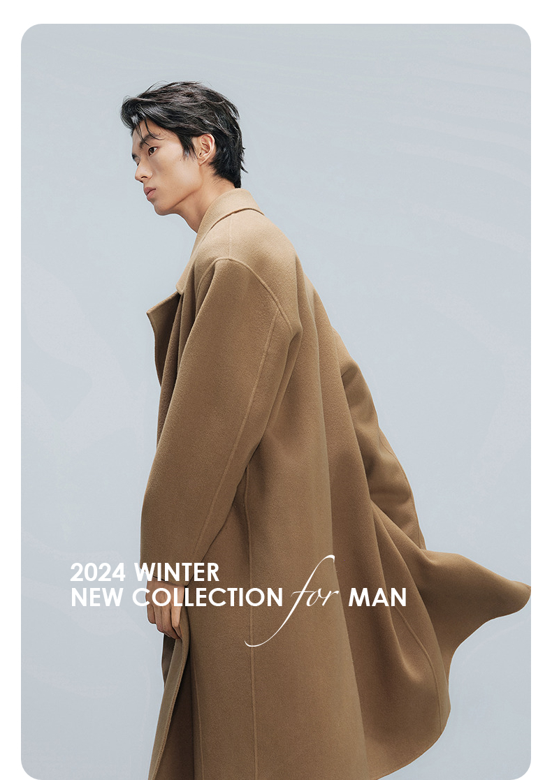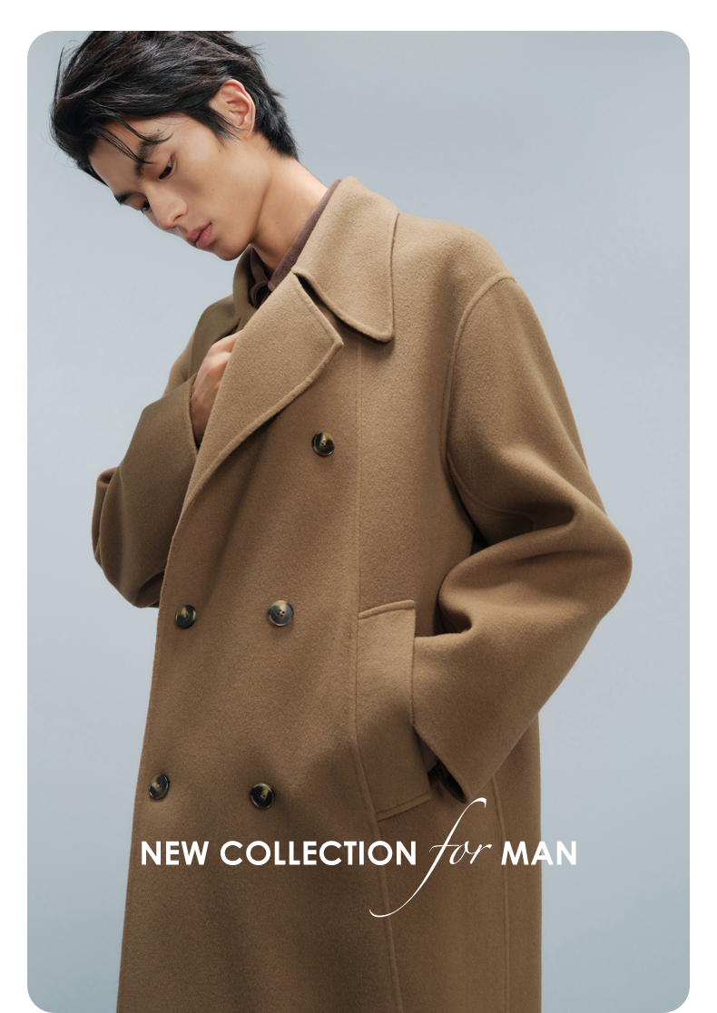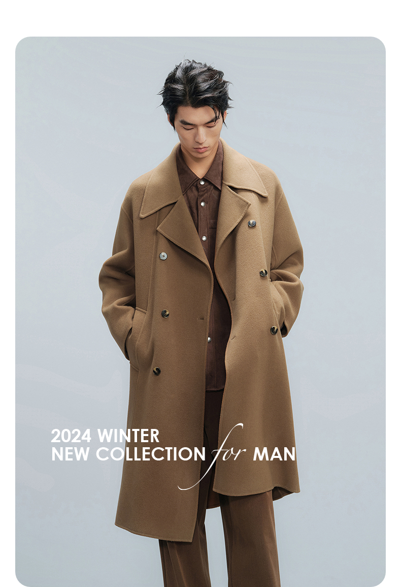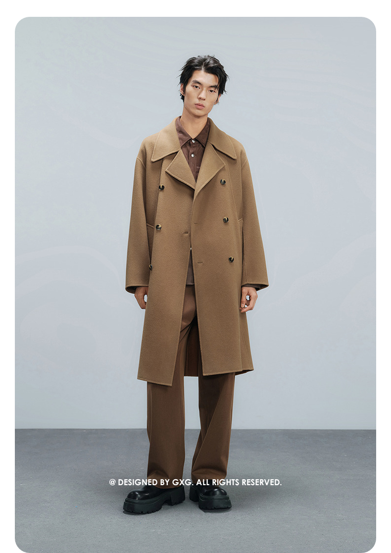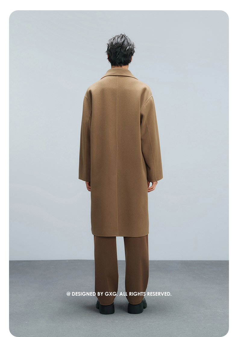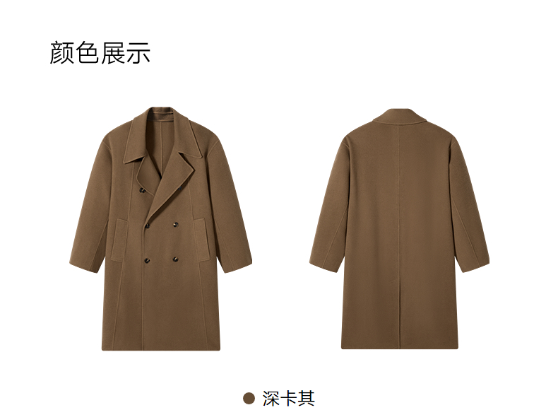 GXG男装 深卡其双排扣通勤长大衣 冬季热卖气质大衣G24X264008