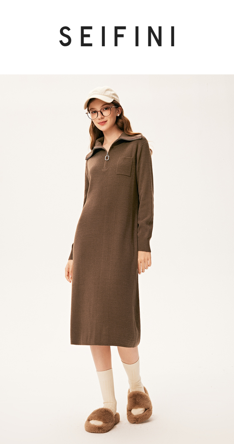 【严选】诗凡黎冬宽松翻领H廓形连衣裙7E9293901