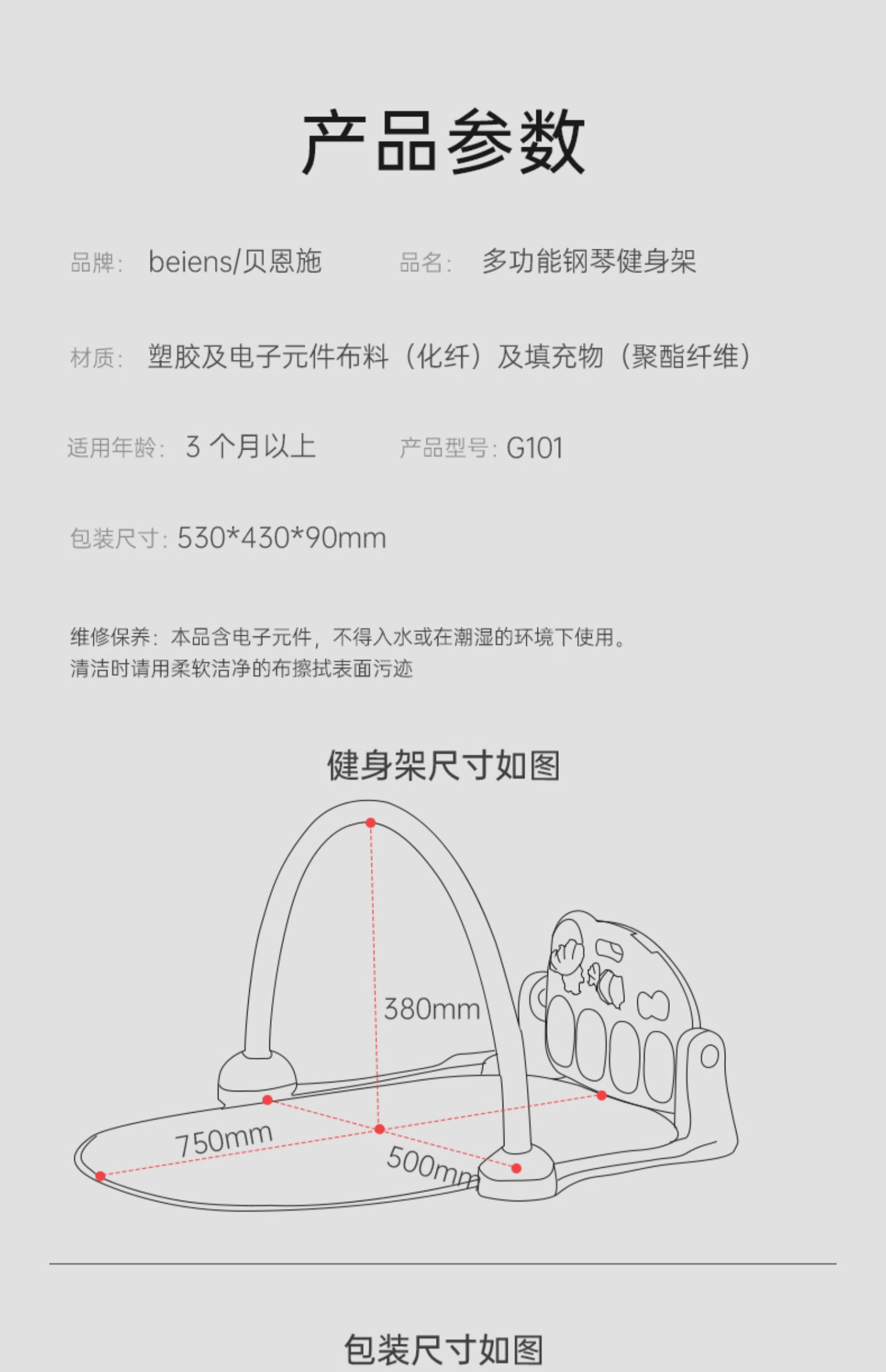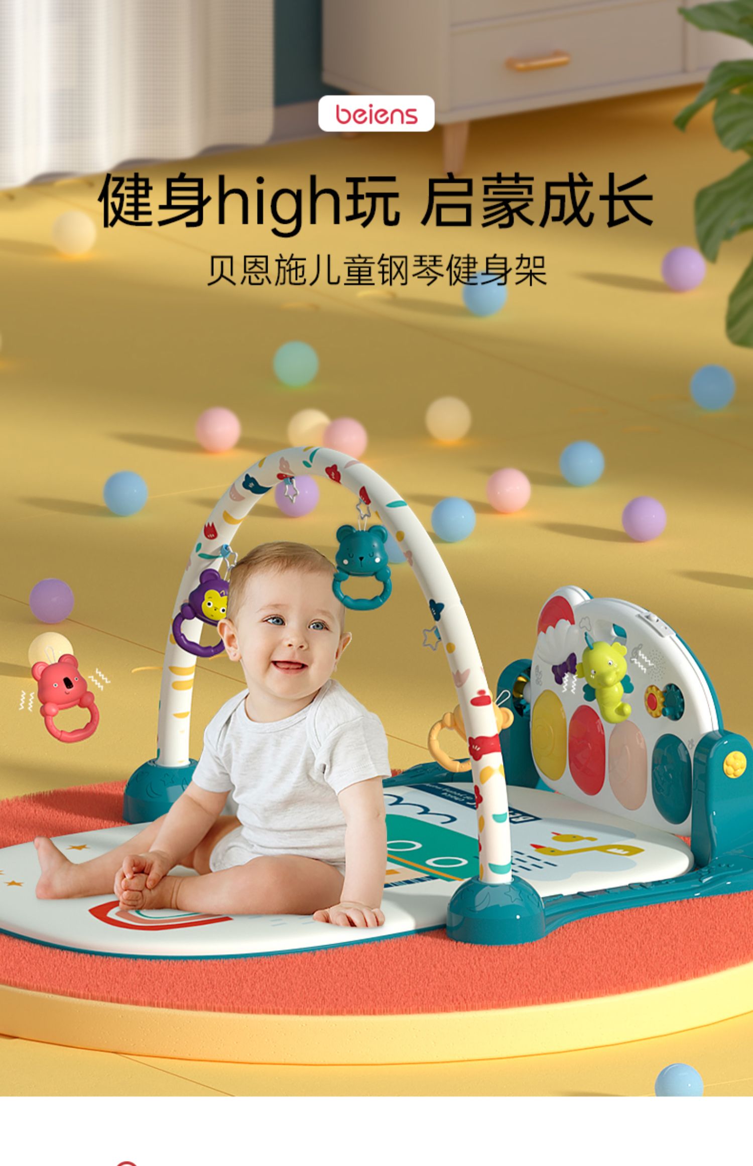 贝恩施脚踏钢琴婴儿健身架器多功能音乐玩具0-1岁宝宝新生儿3个月