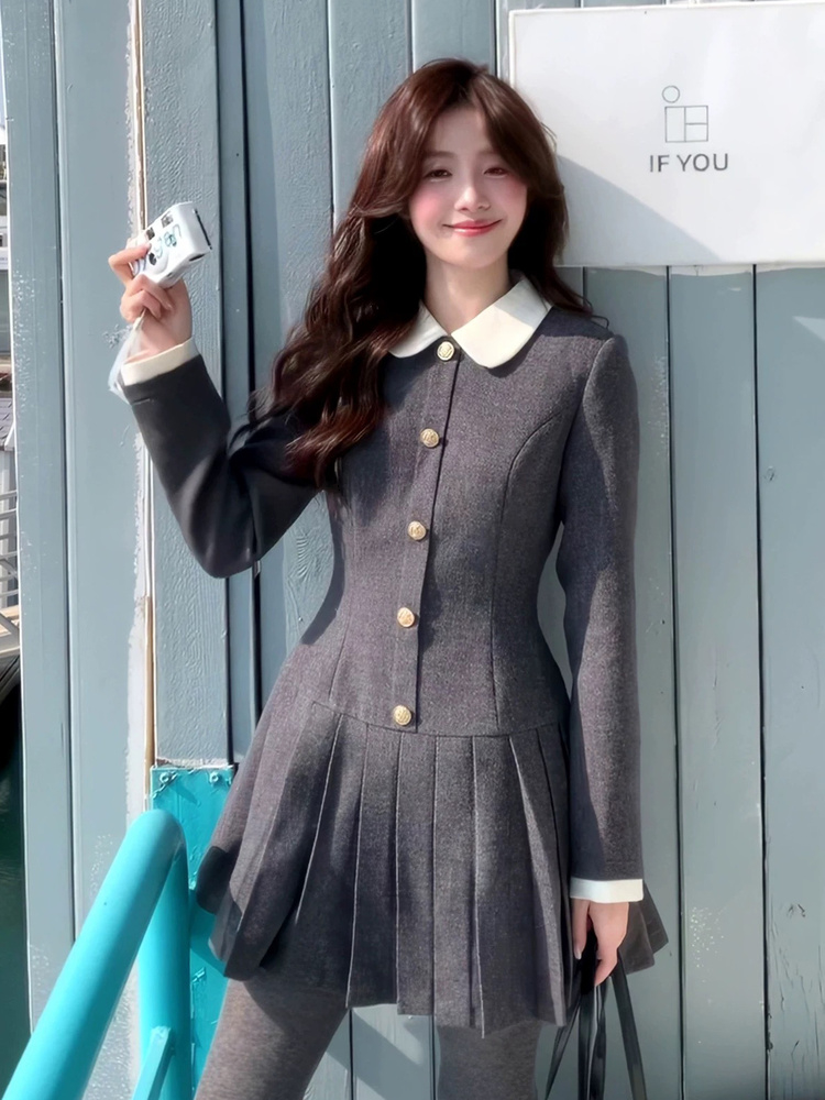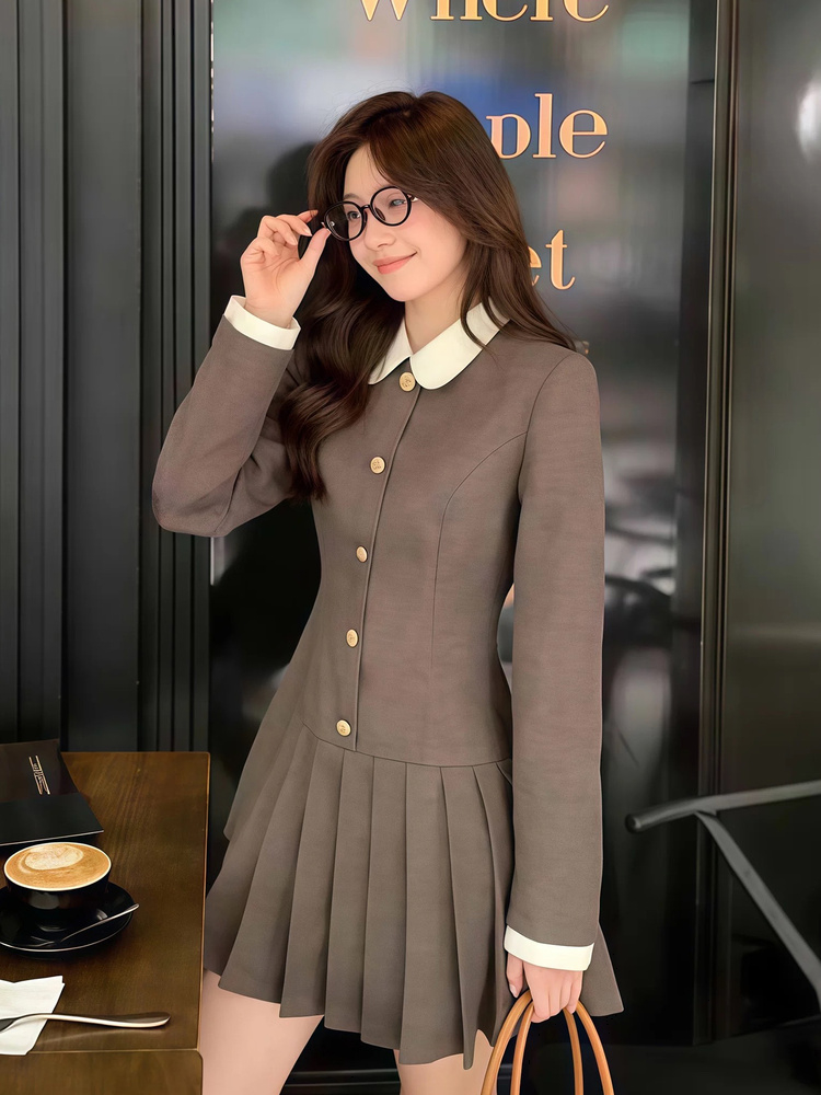 奢姿大码女装2025冬季时尚娃娃领收腰连衣裙胖妹妹气质学院风裙子3254803790