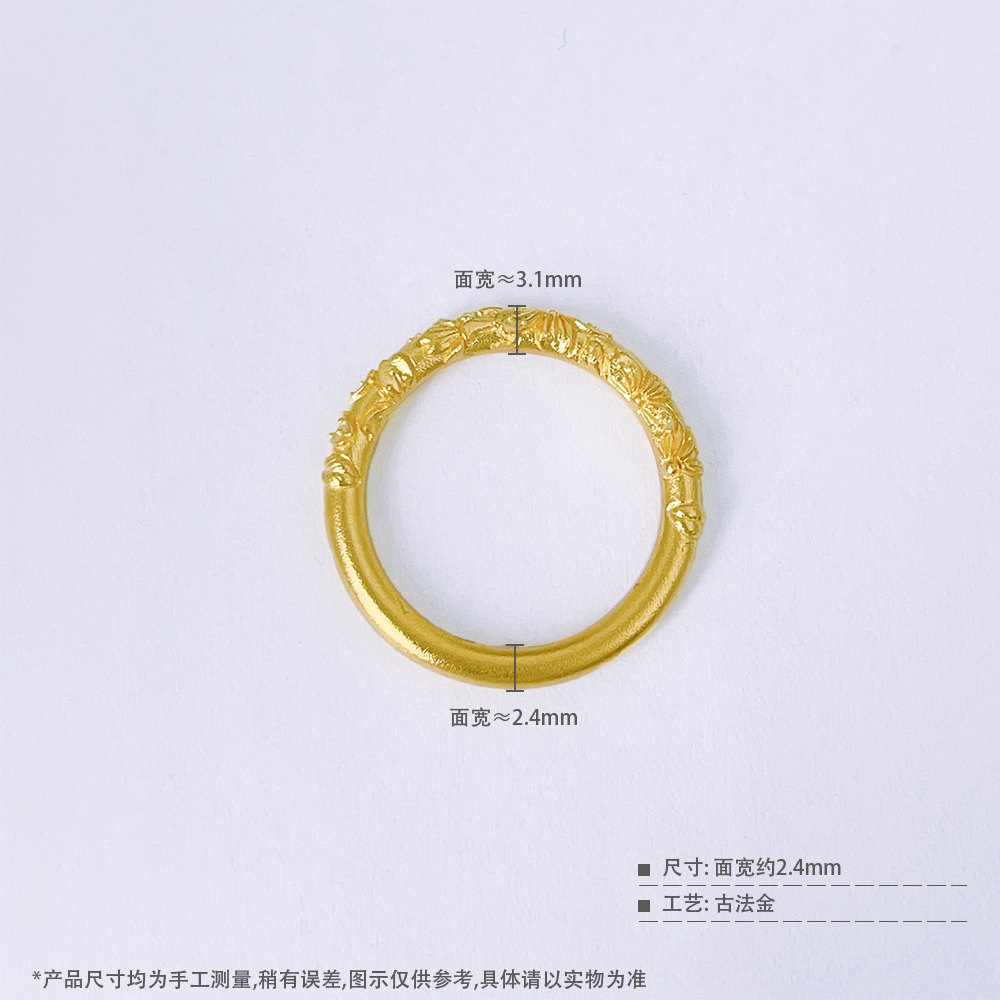 【限时克减150元】足金999.9 古法实心固口紫荆花圈戒樱花戒指(AIGFJZ00045)(预售产品下单后不退款不退货不换货不补差价(预售产品下单后不退款不退货不换货不补差价