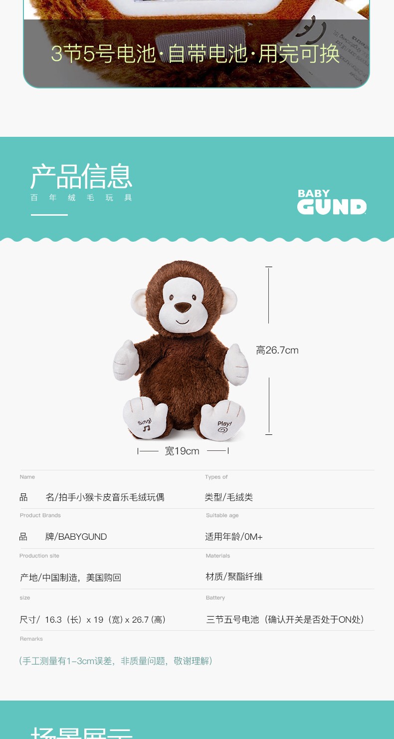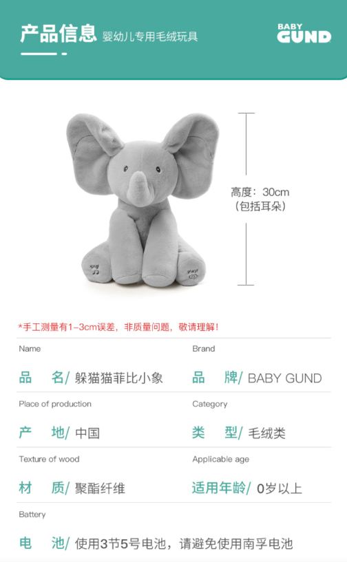 美国Baby Gund (合集)大象小兔小猴婴儿躲猫猫毛绒公仔宝宝安抚玩偶玩具