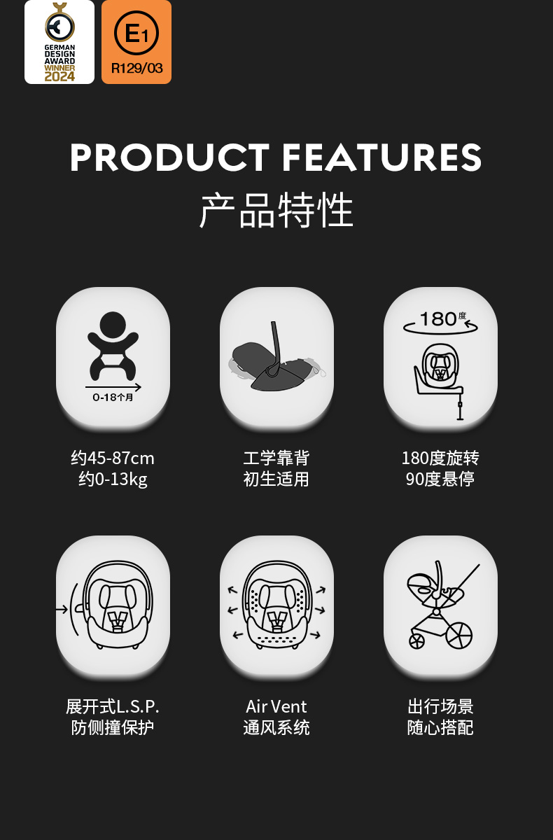 德国Cybex 克劳德T提篮 铂金线婴儿提篮Cloud T i-Size+新生儿可平躺 0-18月