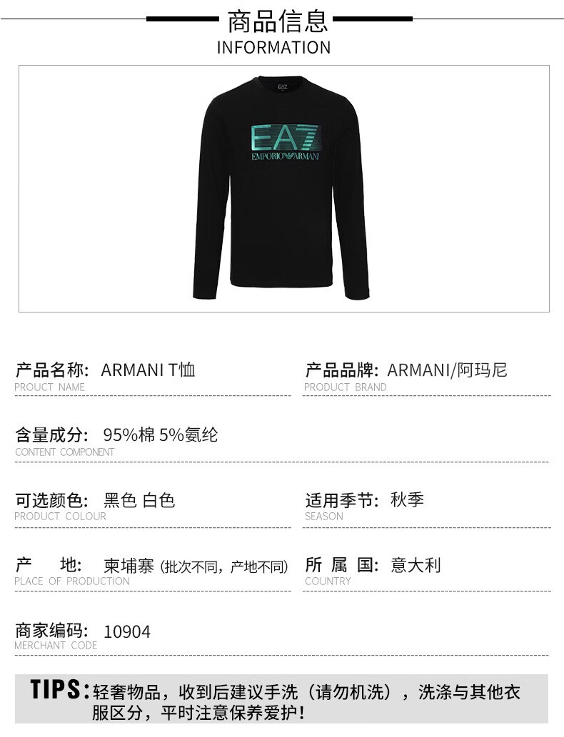 阿玛尼(ARMANI) 男装 男士时尚休闲圆领长袖T恤 10904