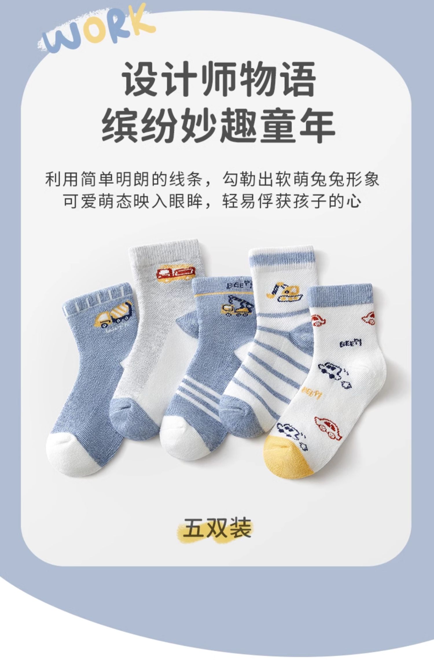 爱贝迪拉儿童袜子男童纯棉春秋款男宝中筒袜男孩棉袜夏季薄款