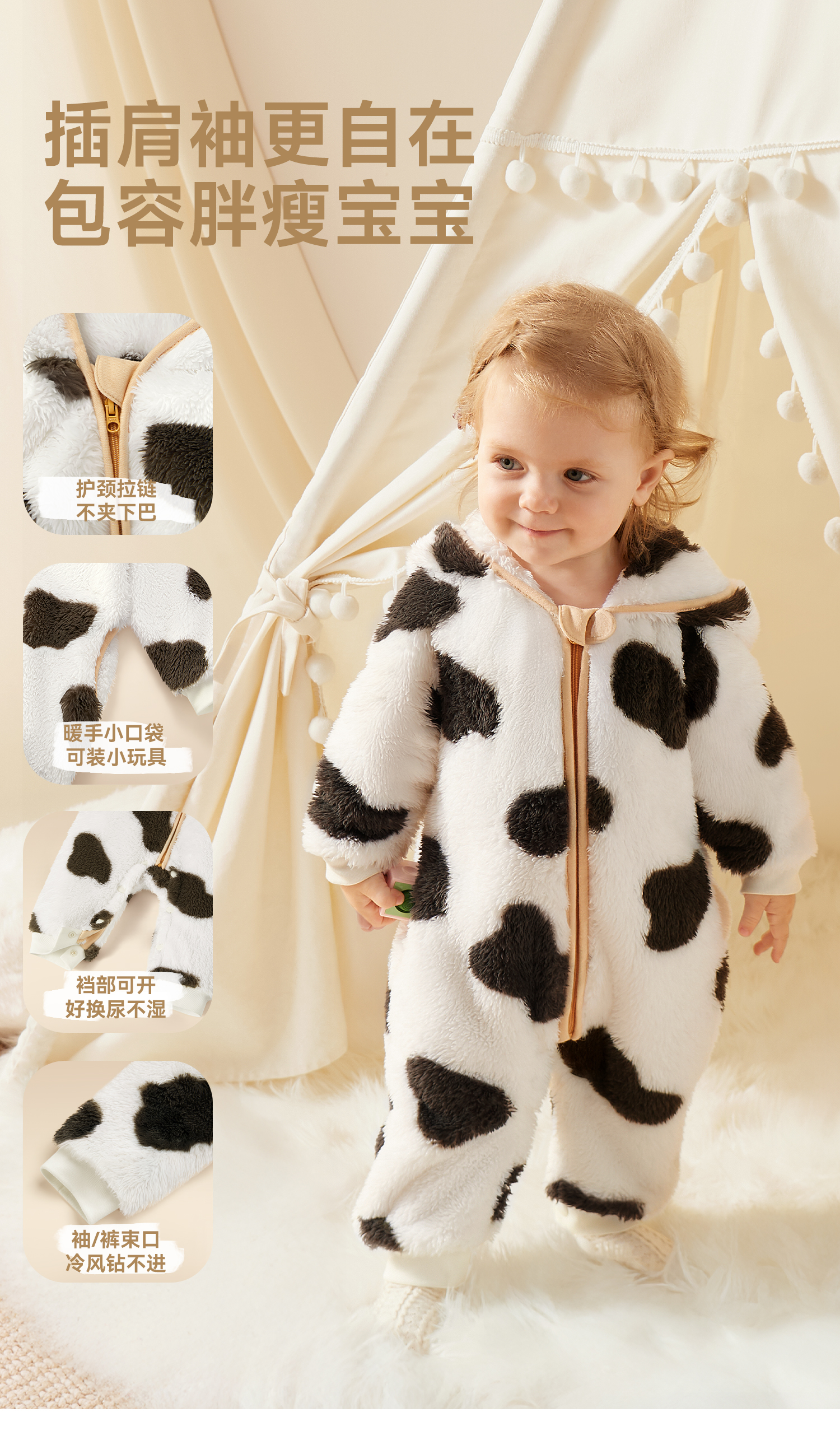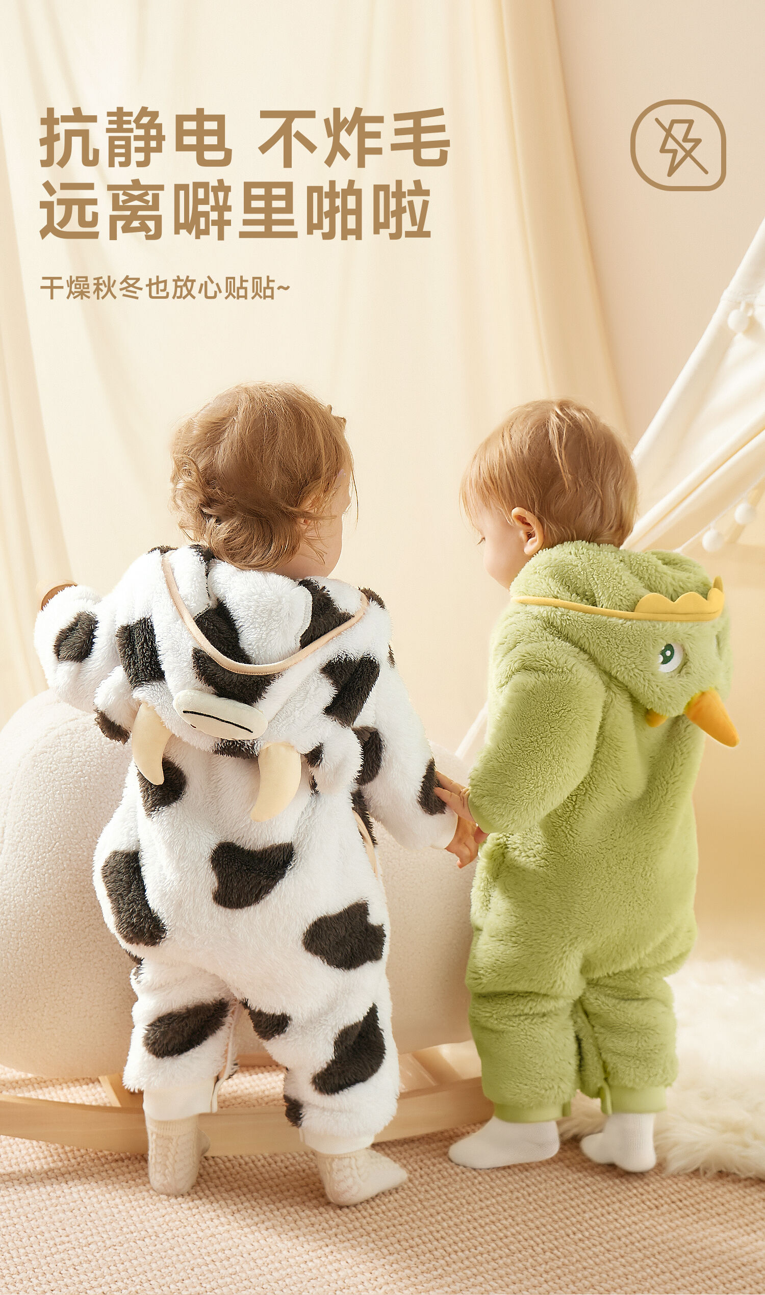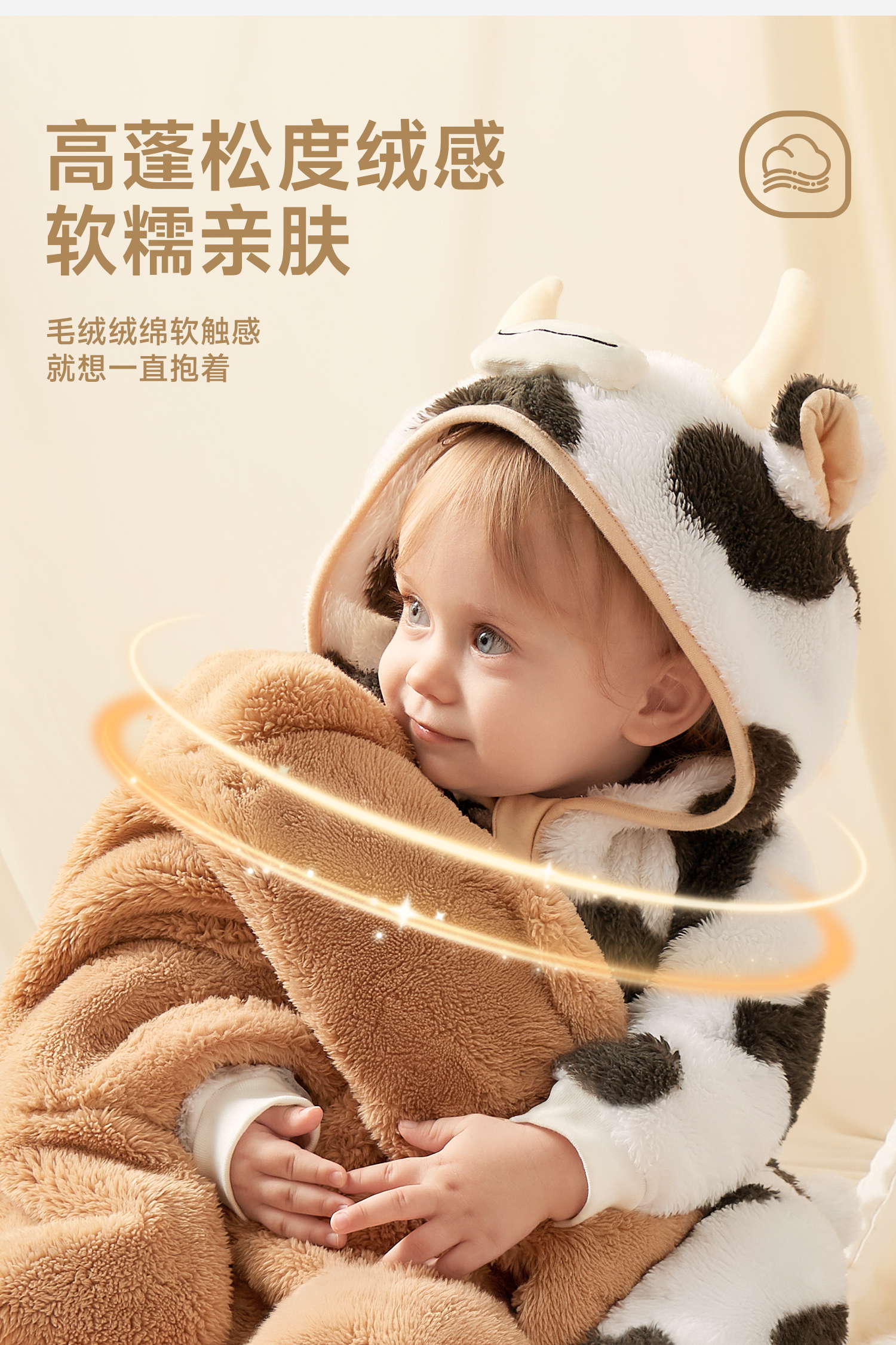 【清仓】爱贝迪拉婴儿连体衣秋冬宝宝衣服2025新款外出可爱加厚抗静电珊瑚绒爬爬服