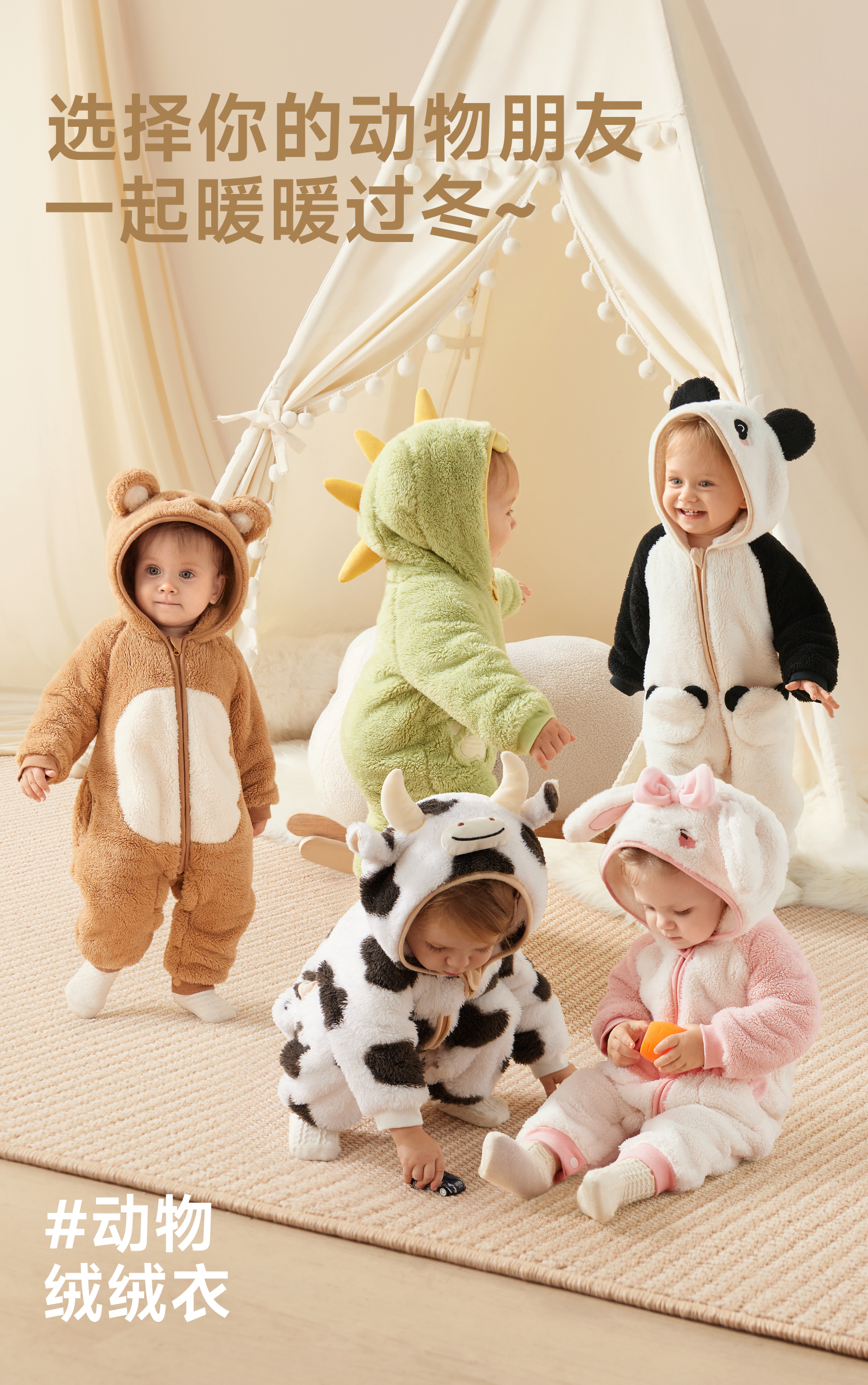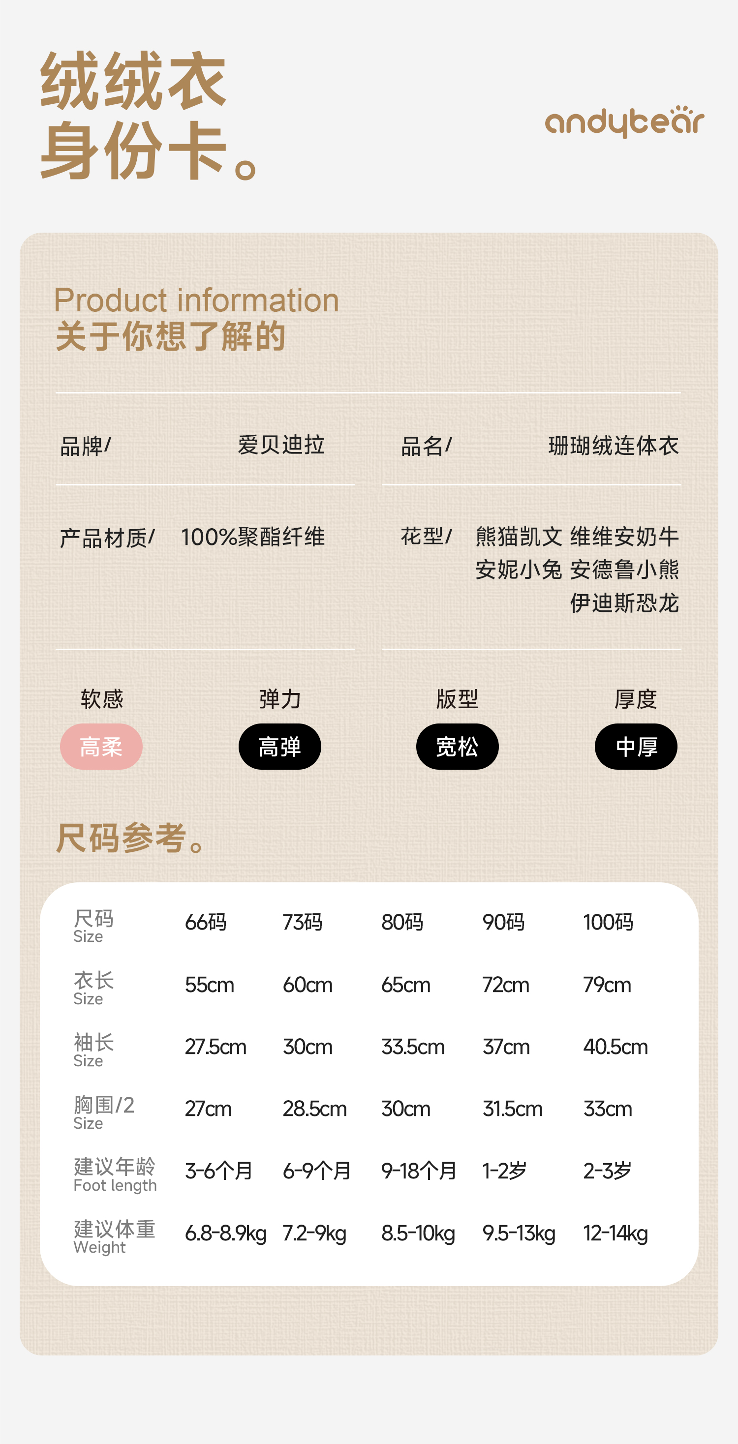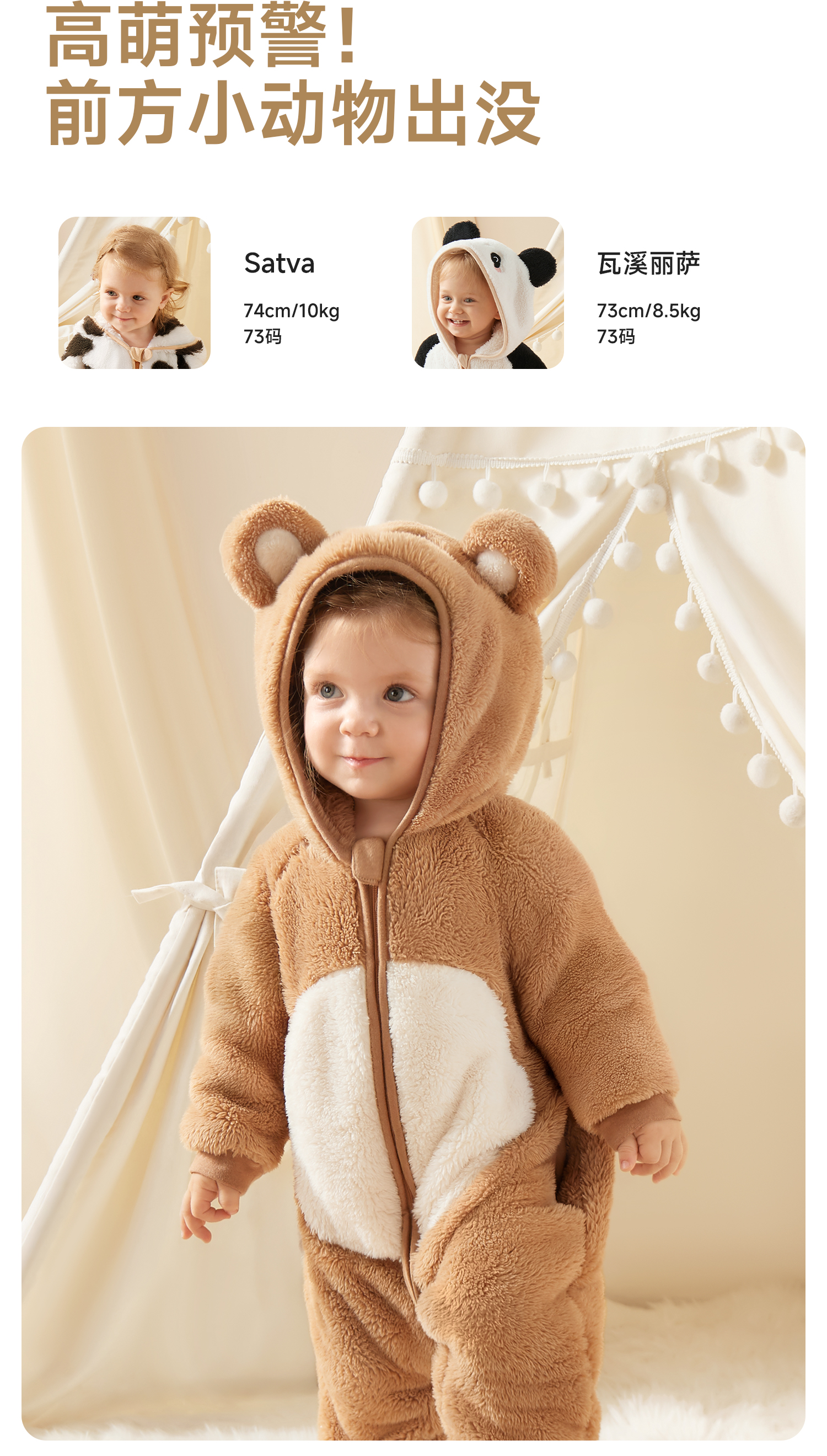 【清仓】爱贝迪拉婴儿连体衣秋冬宝宝衣服2025新款外出可爱加厚抗静电珊瑚绒爬爬服