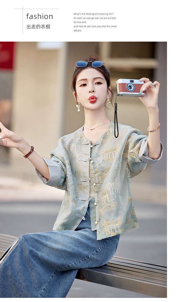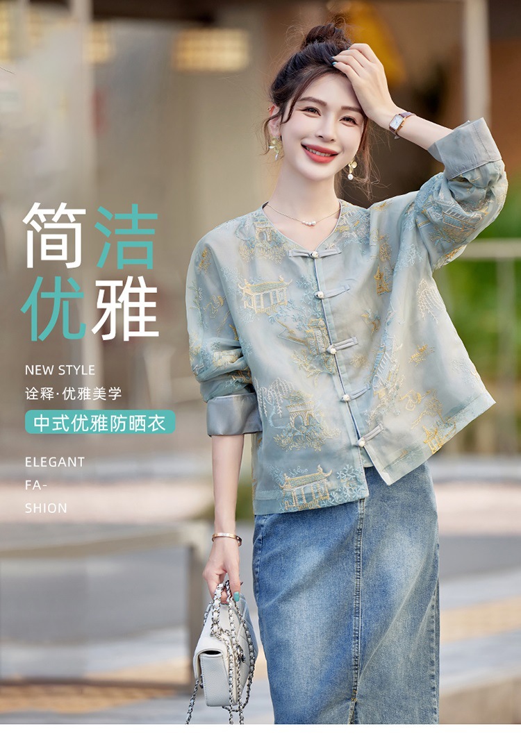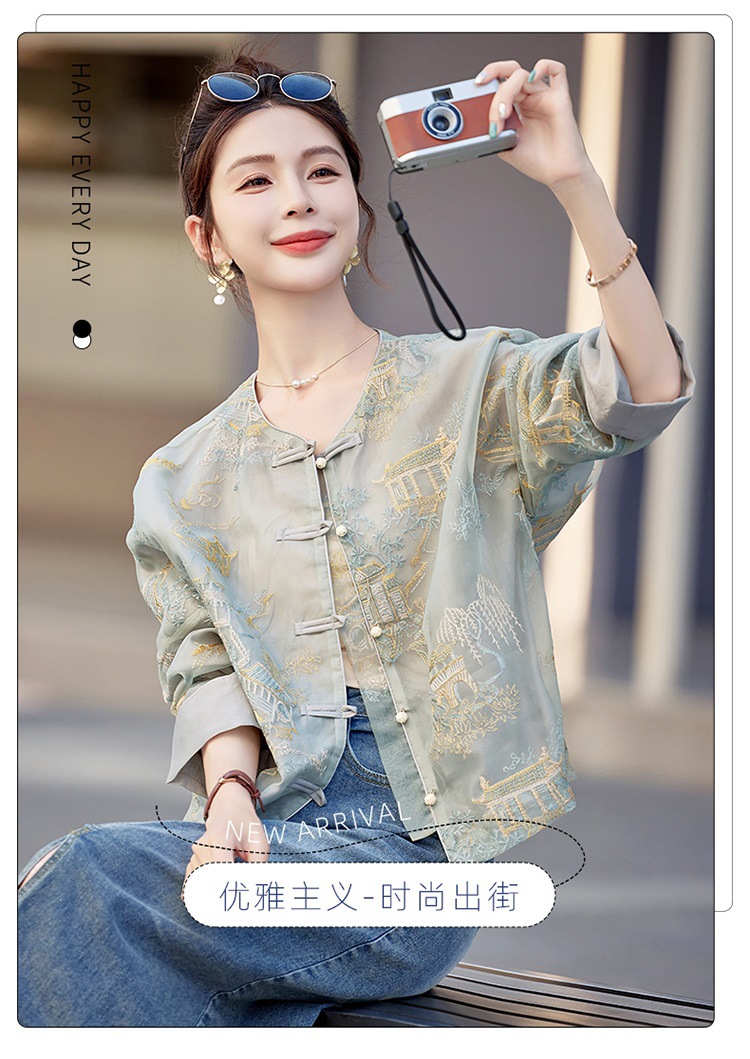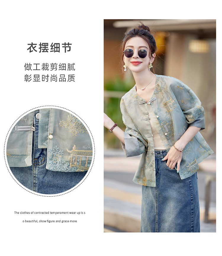 新中式国风外套,宽松刺绣提花盘扣短款防晒衣HR-HMG2852