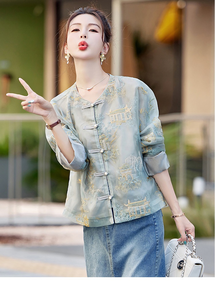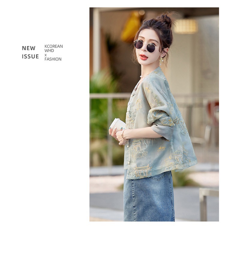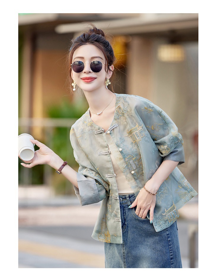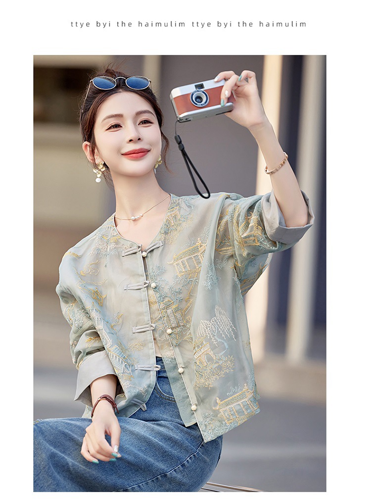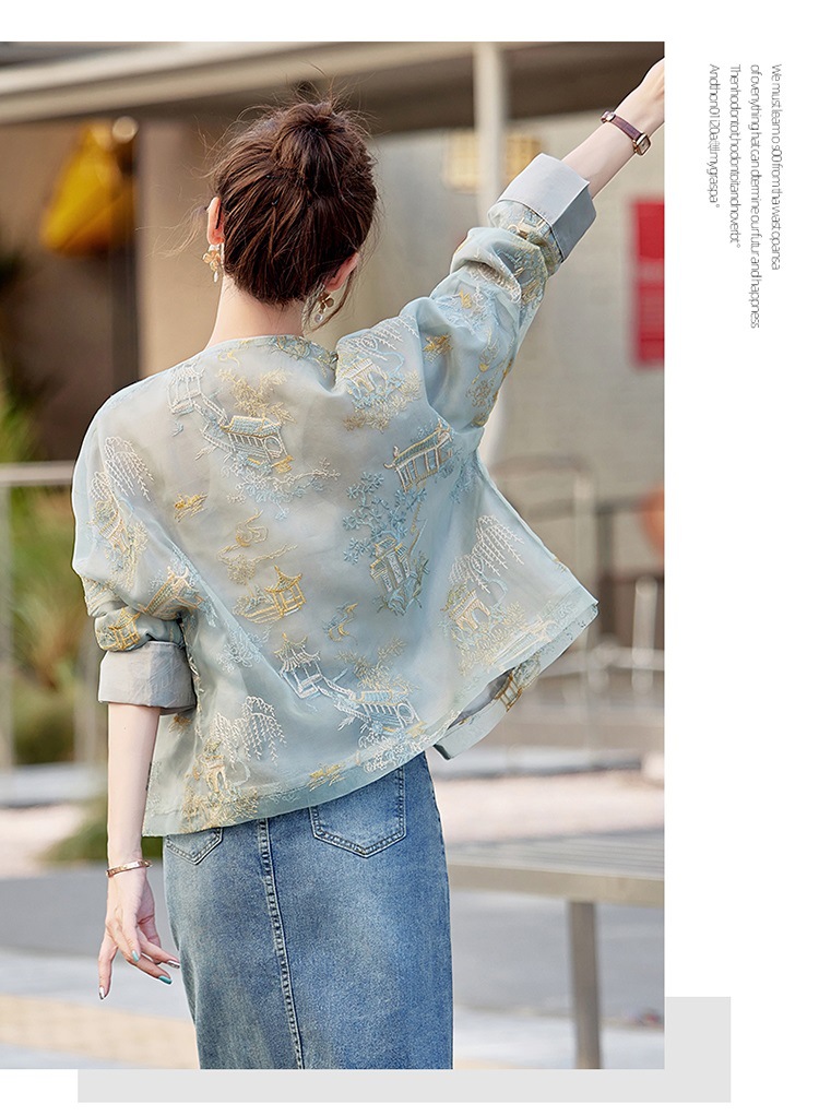 新中式国风外套,宽松刺绣提花盘扣短款防晒衣HR-HMG2852