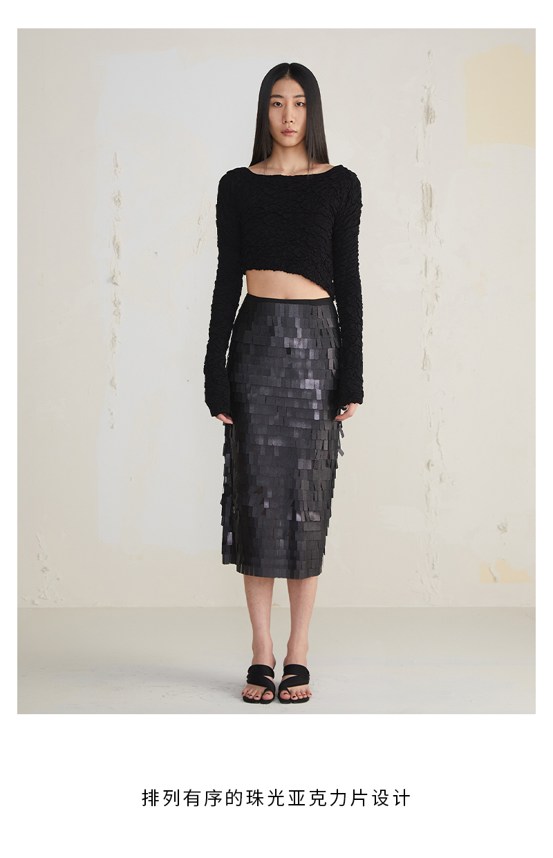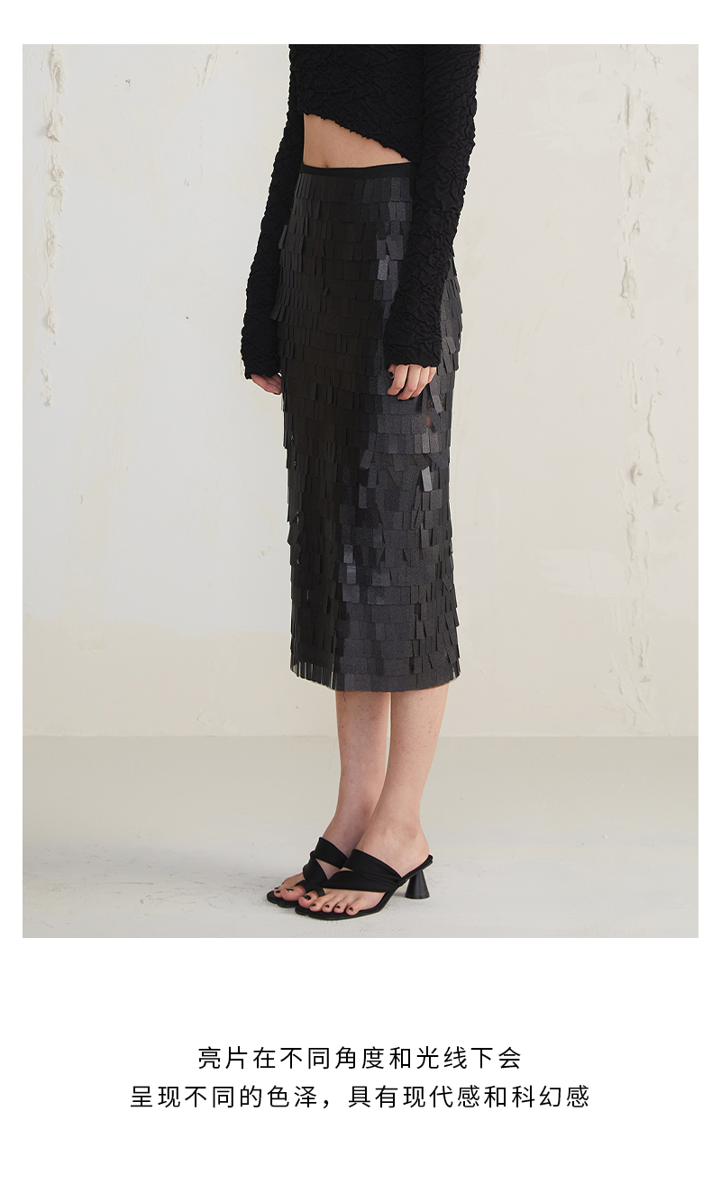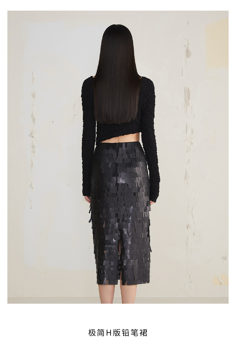 JUDYHUA 亮片肌理设计款铅笔裙
