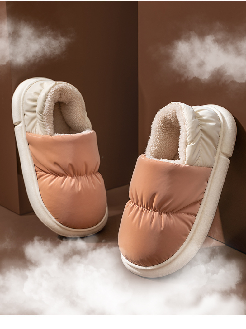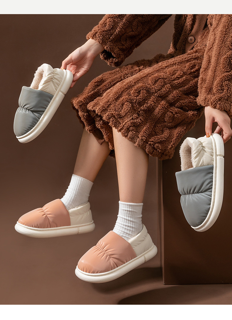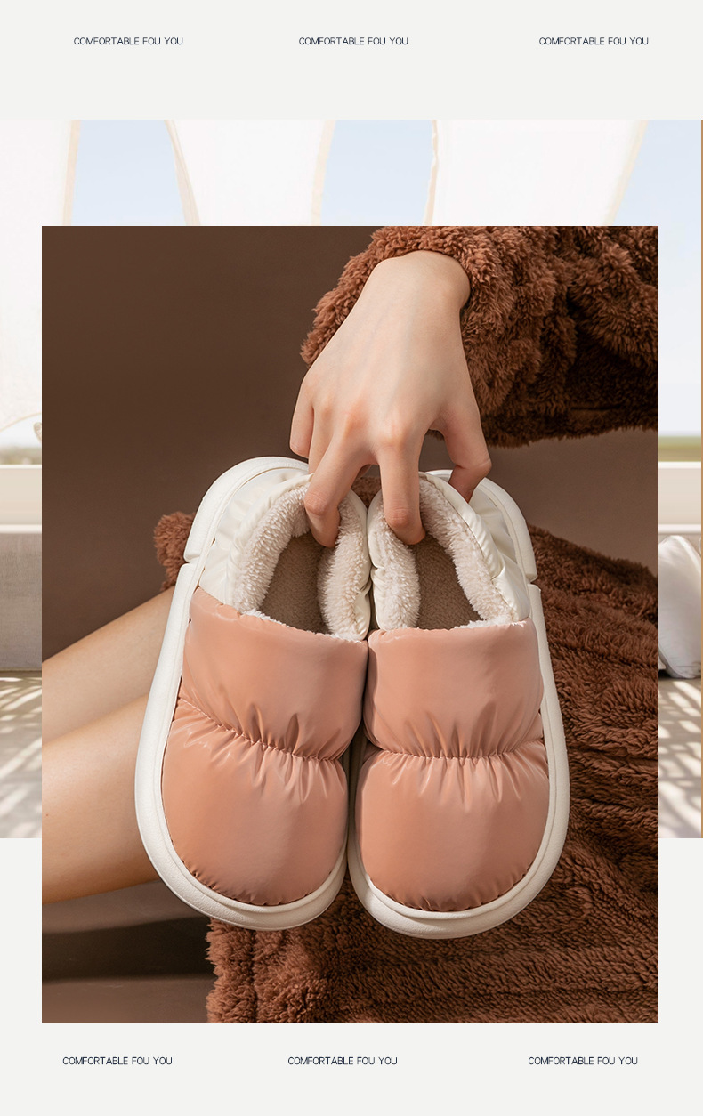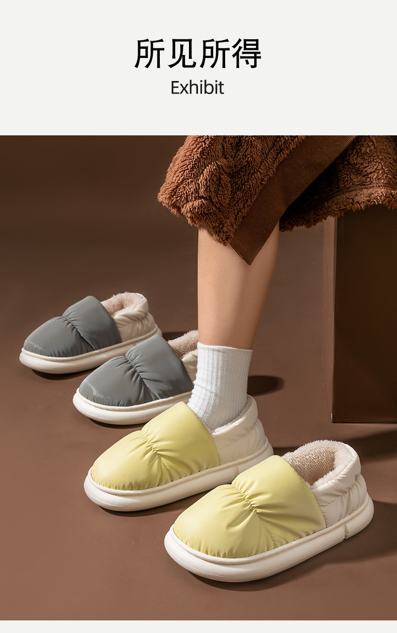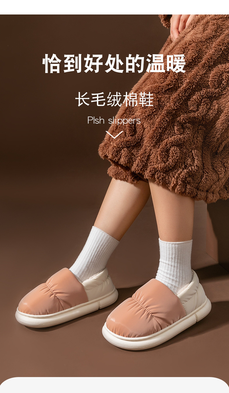 【买一送一,升级款包跟防泼水保暖拖鞋】男女士秋冬棉拖鞋 3.0增高 柔软PVC材质 防滑耐磨不易变形 踩屎感室内防水拖鞋