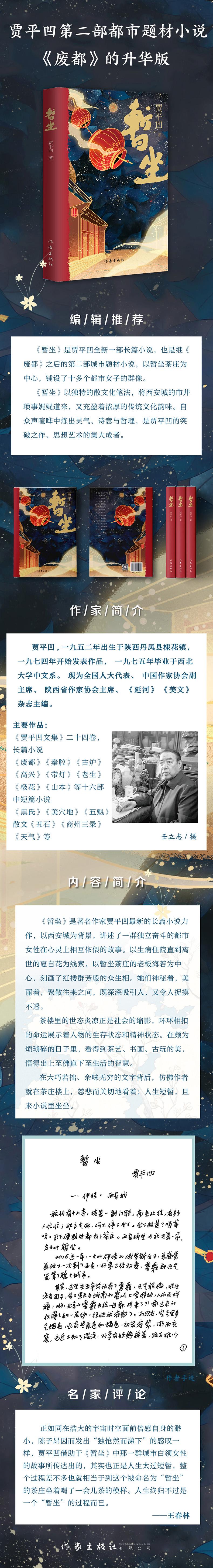 《暂坐》是著名作家贾平凹近期新的长篇小说力作,以西安城为背景,讲述了一群独立奋斗的都市女性在心灵上相互依偎的故事。以生病住院直到离世的夏自花为线索,以暂坐茶庄的老板海若为中心,刻画了红楼群芳般的众生相。她们神秘着,美丽着,聚散往来之间,既深深吸引人,又令人捉摸不透。茶楼里的世态炎凉正是社会的缩影,环环相扣的命运展示着人物的生存状态和精神状态。在颇为烦琐碎的日子里,看得到茶艺、书画、古玩的美,悟得出上至佛道下至生活的智慧。在大巧若拙、余味无穷的文字背后,仿佛作者就在茶庄楼上,慈悲而关切地看着:人生短暂,且来小说里坐坐。