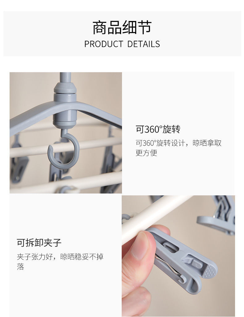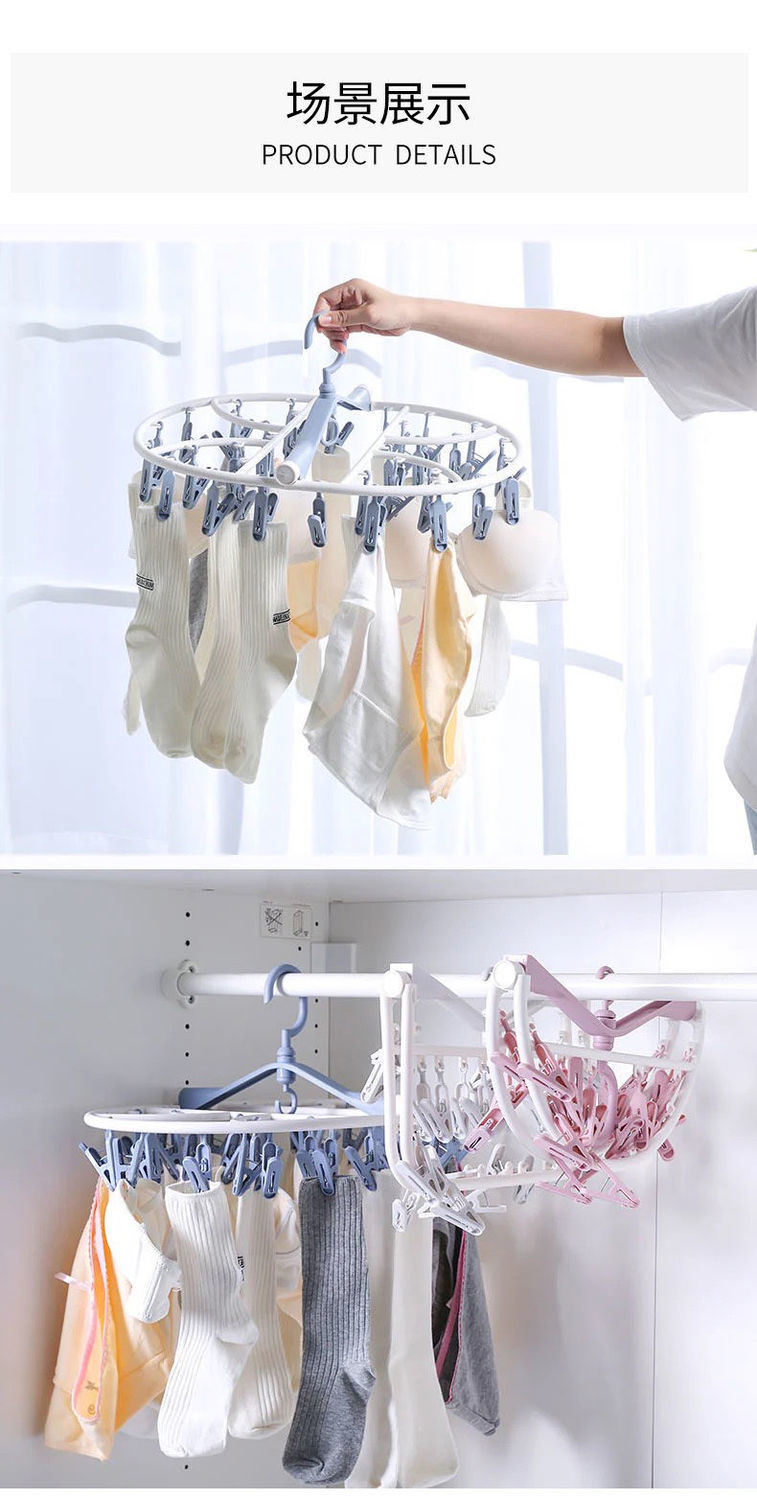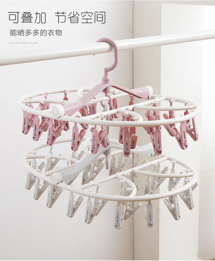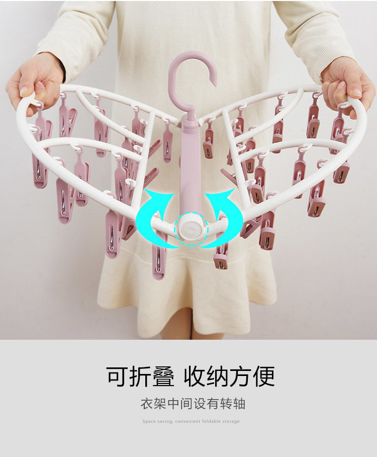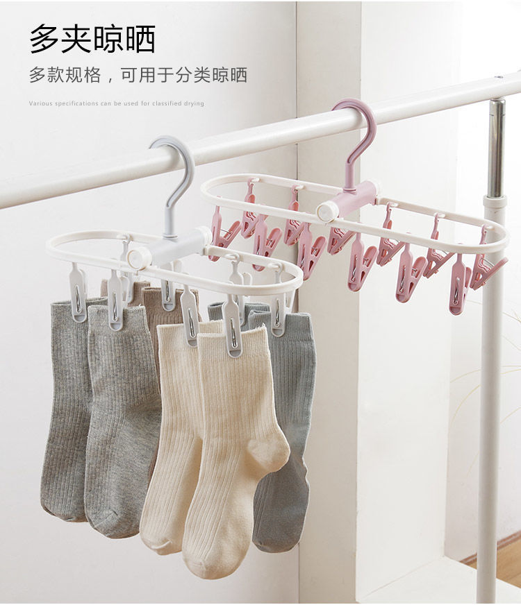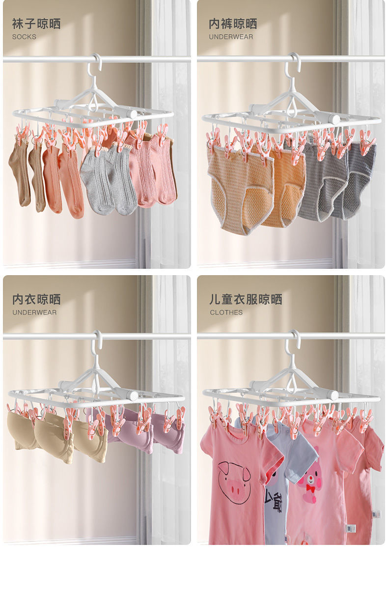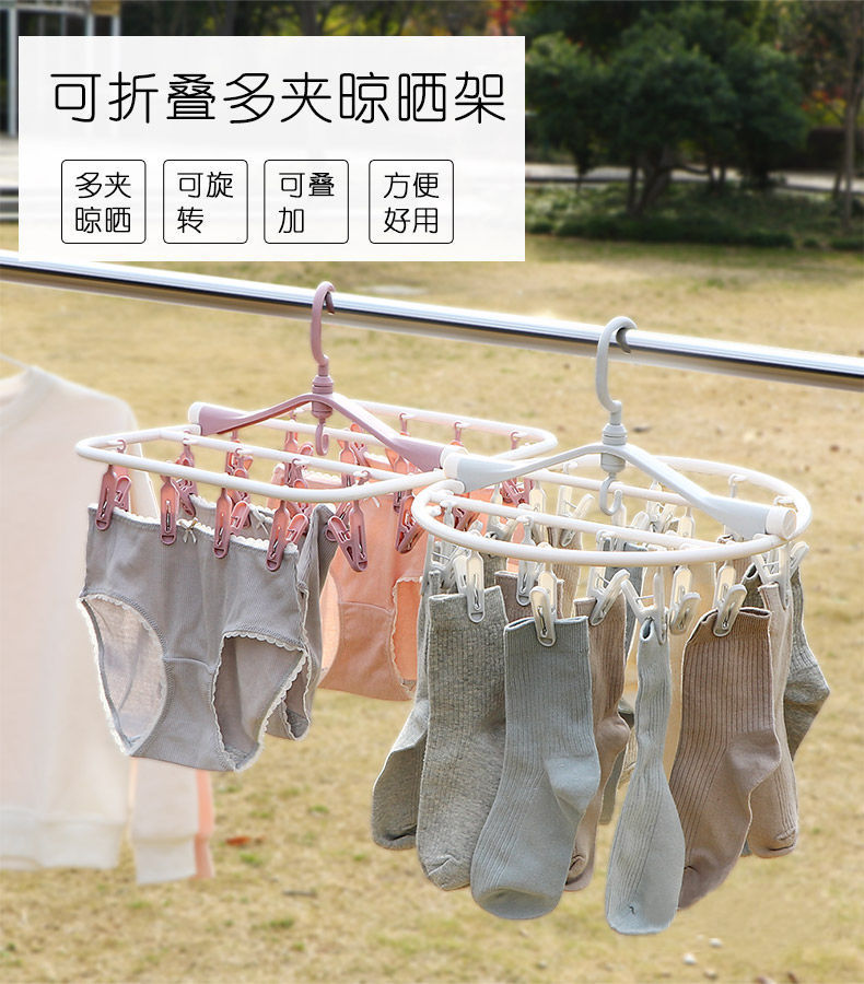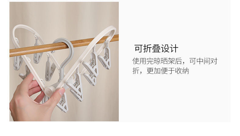 【晾衣架多夹子】折叠袜子架挂衣钩 内裤衣架家用卧室学生宿舍阳台袜架 国庆出行