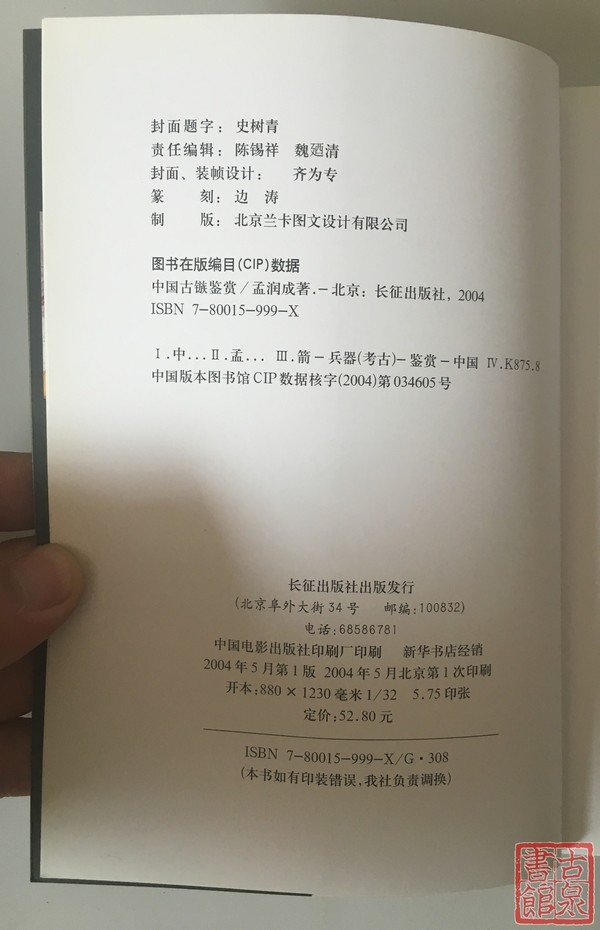 绝版工具书《中国古镞鉴赏》,是中国第一本箭镞收藏专著,也是箭镞收藏者最专业的收藏工具书,由中国古镞收藏家孟润成先生编写,前国家文史馆长史树青老先生亲笔题写书名,全新正版,一版一印。书中收录了从原始社会石器时代的石镞、骨镞到夏商周至至明清的青铜镞,铁镞等,中国历代箭簇都有介绍,全部采用彩色实物图片。2004年出版,大32开本,172页,全彩色铜版纸印刷,设计考究,印刷精美,加上书的发行量很小,只有几千册,这本书本身就极具收藏价值,全国各大书店早就没其踪影。最后几本,清仓惠友!