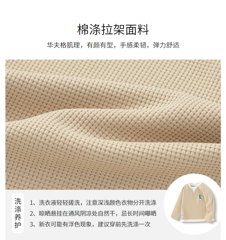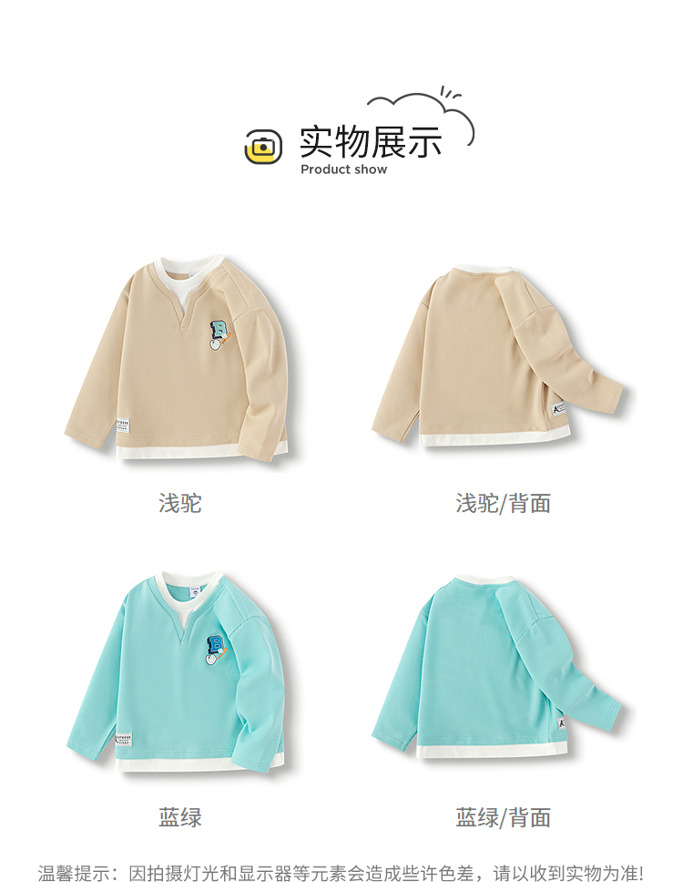 巴拉巴拉童装男童T恤假两件华夫格上衣2025新款春装