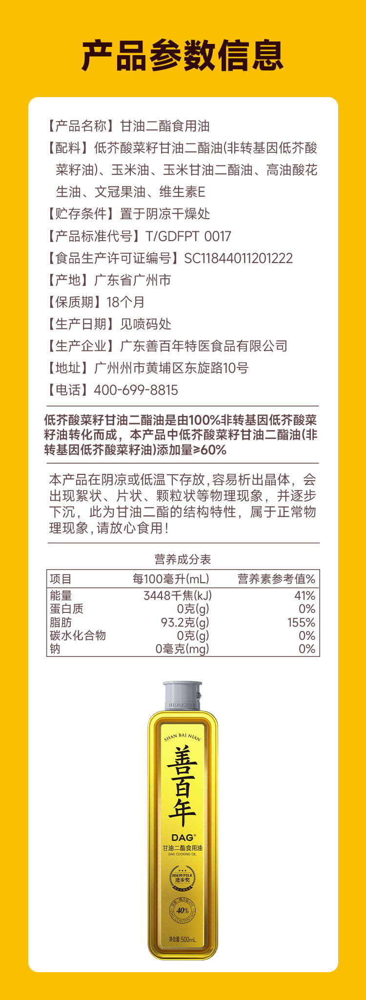 【40%金罐组合装】DAG40%善百年甘油二酯食用油菜籽油文冠果油