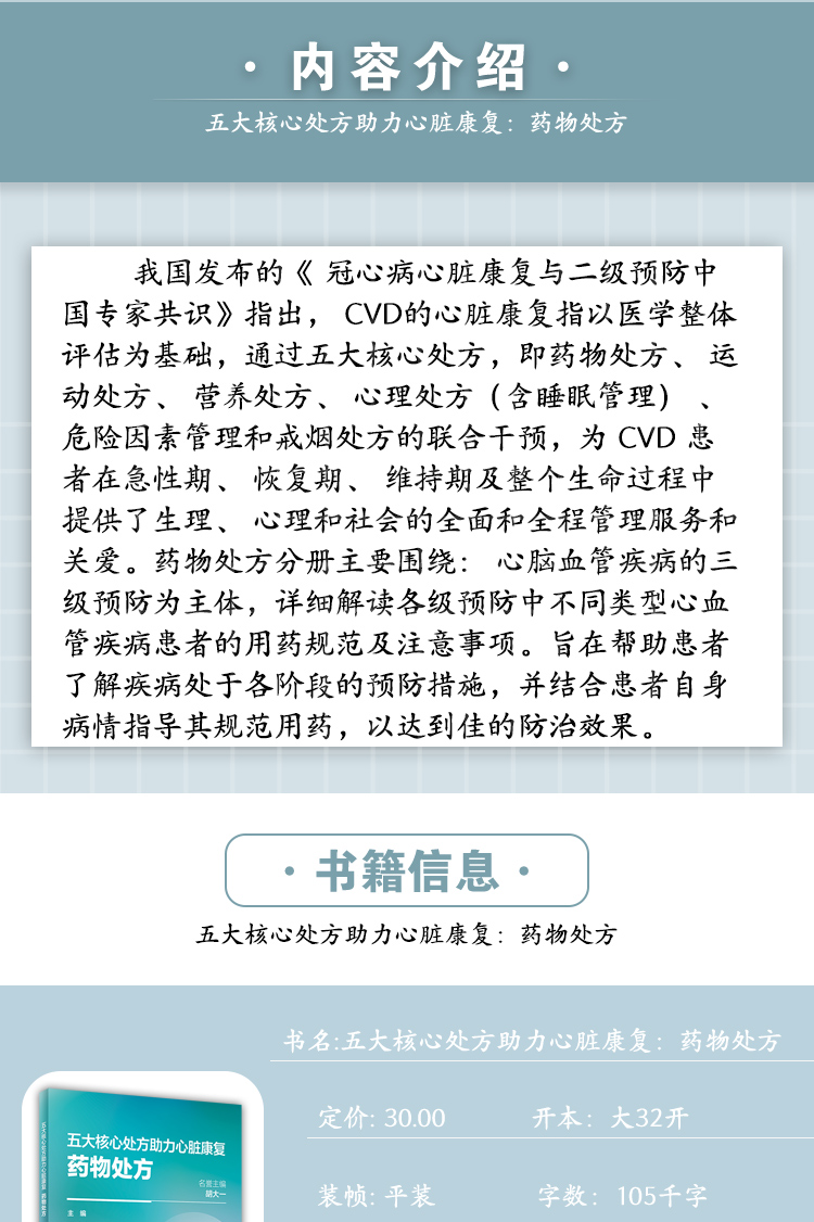 五大核心处方助力心脏康复药物处方 孟晓萍 沈琳 编 药物处方运动处方营养处方心理处方心脑血管疾病 人民卫生出版社9787117355995