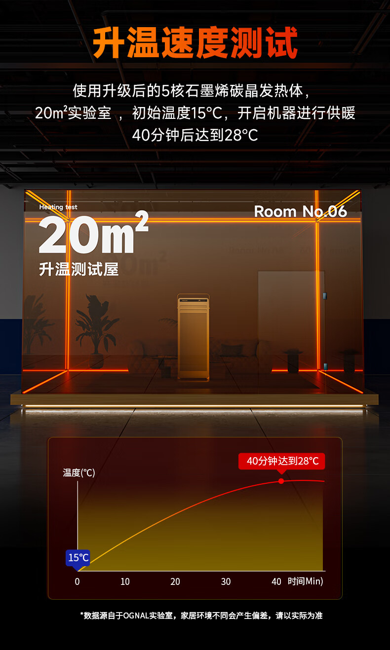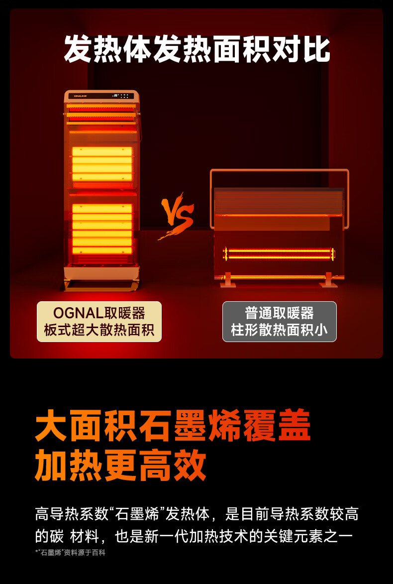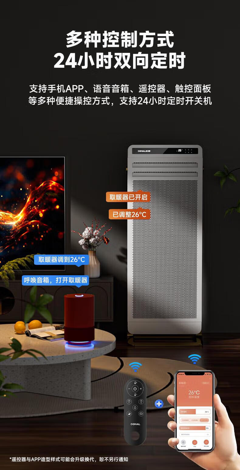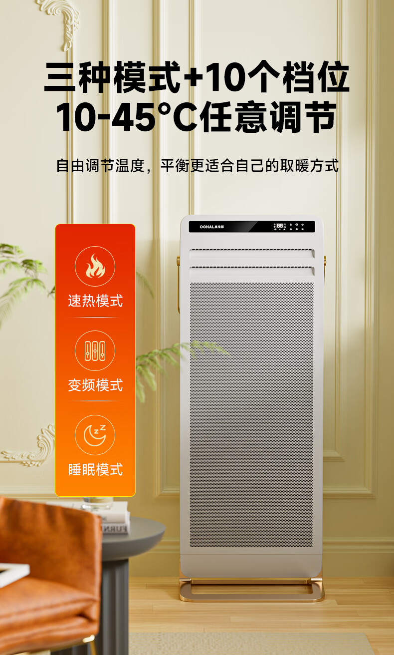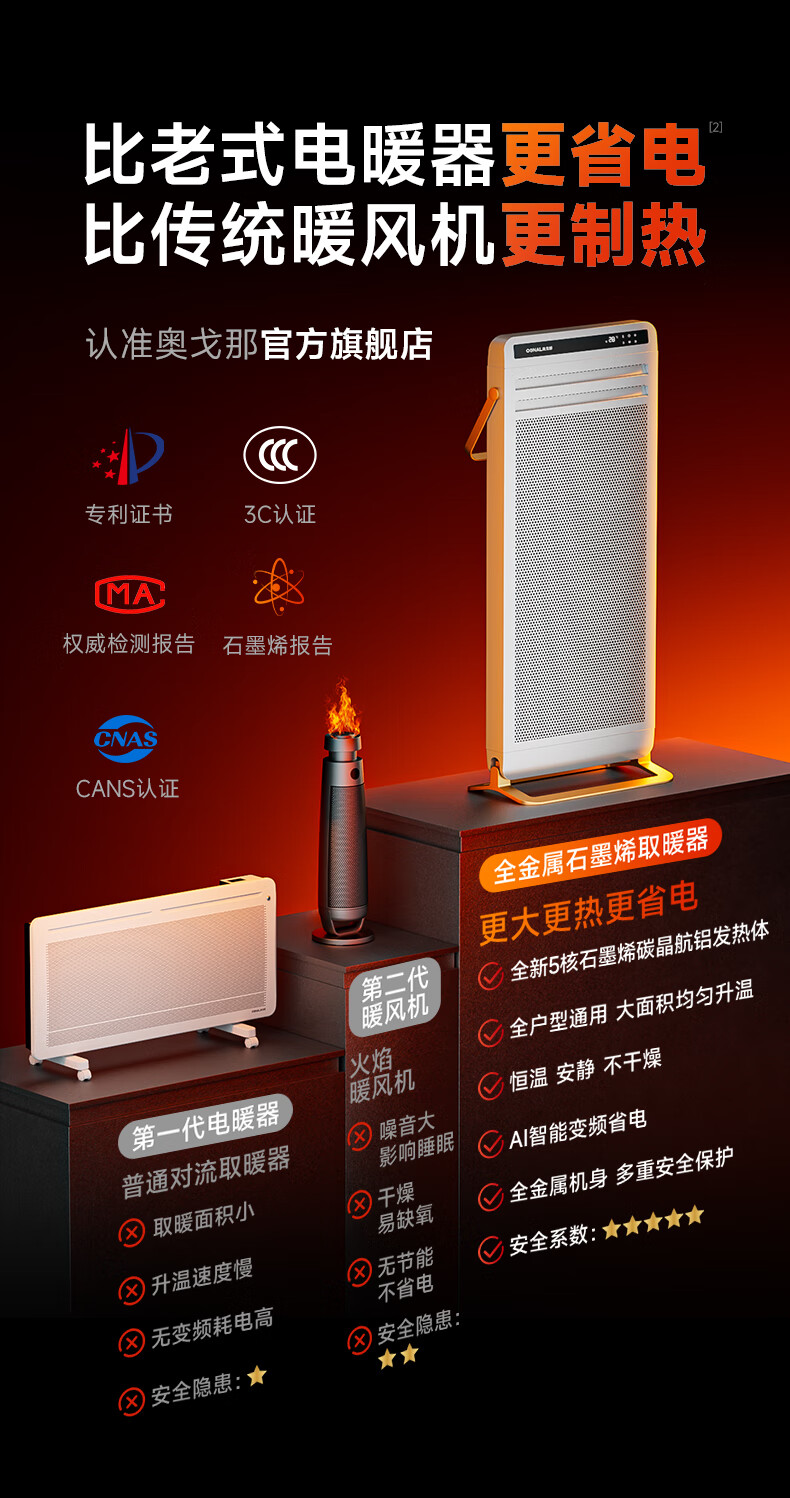 奥戈那OGNAL取暖器家用轻音立式变频电暖气石墨烯卧室客厅办公室大面积节能速热暖风机 2600W AI智能 石墨烯速热HB22-RS21/HB26-RS21/HB30-RS21