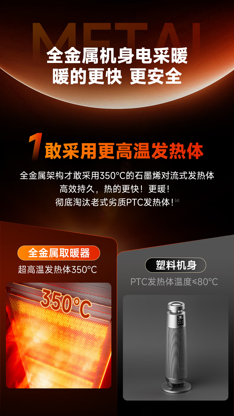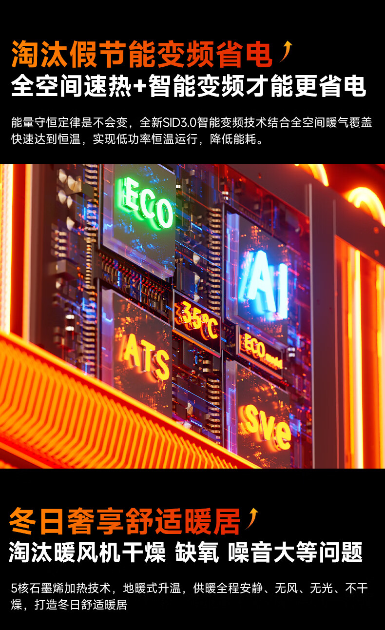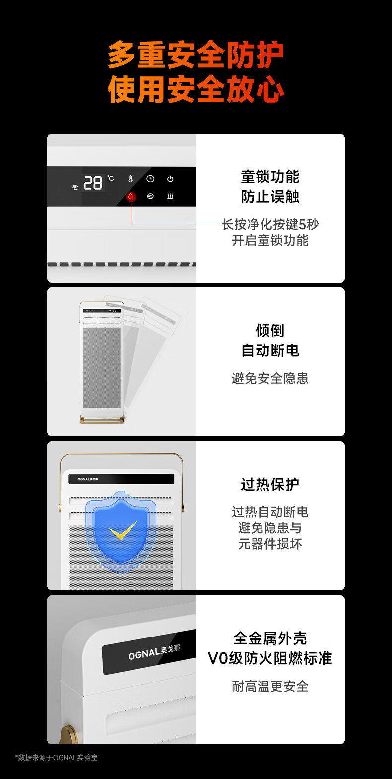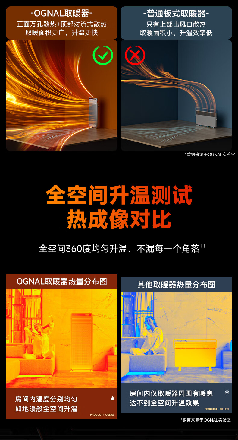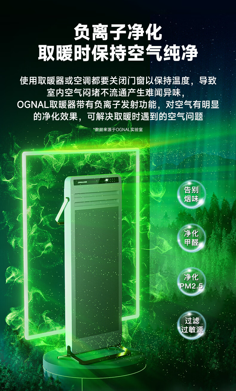 奥戈那OGNAL取暖器家用轻音立式变频电暖气石墨烯卧室客厅办公室大面积节能速热暖风机 2600W AI智能 石墨烯速热HB22-RS21/HB26-RS21/HB30-RS21