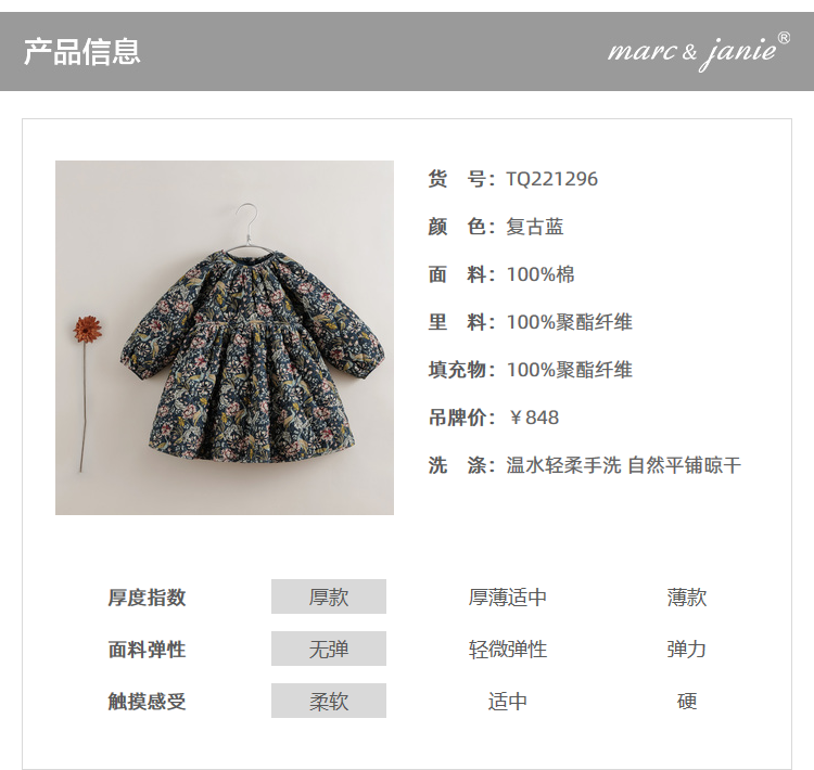 【马克珍妮 中国风】秋冬新款 纯棉灯芯绒加厚连衣裙221296