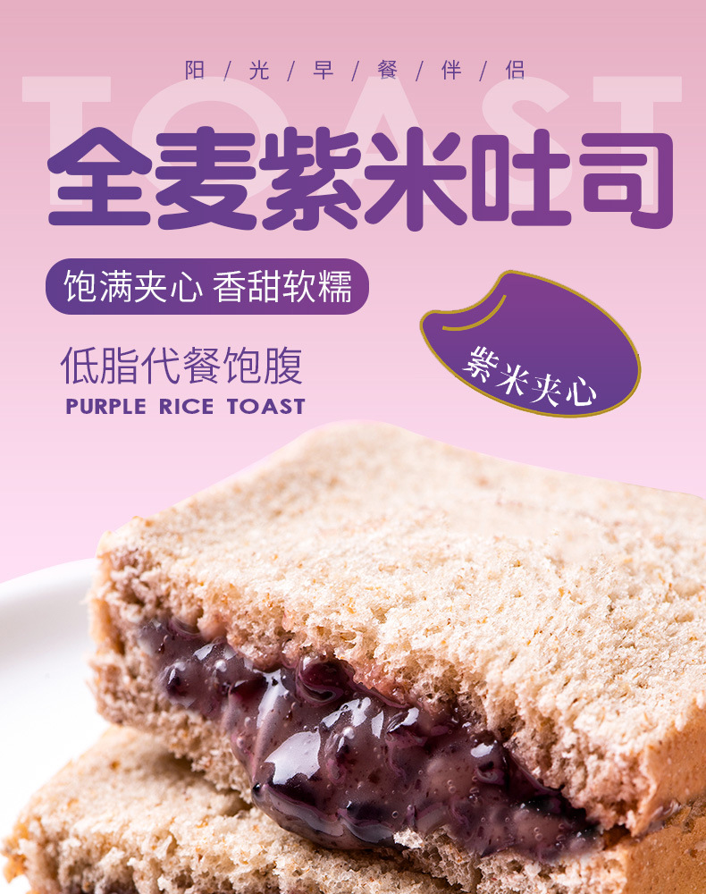 【饱满软糯!紫米夹心】全麦紫米面包,绵软香甜,独立包装代餐夹心手撕早餐营养网红小吃零食整箱特价清仓