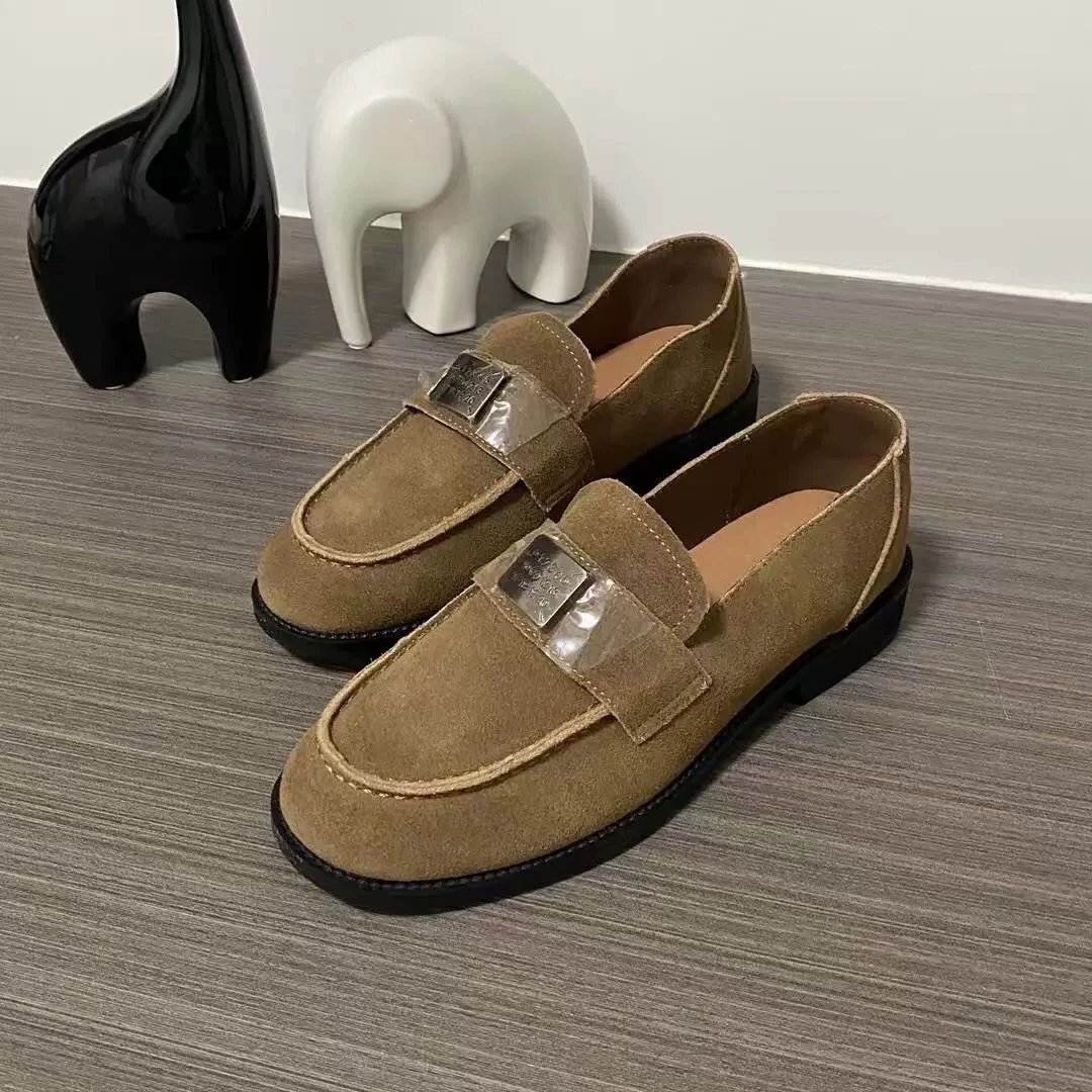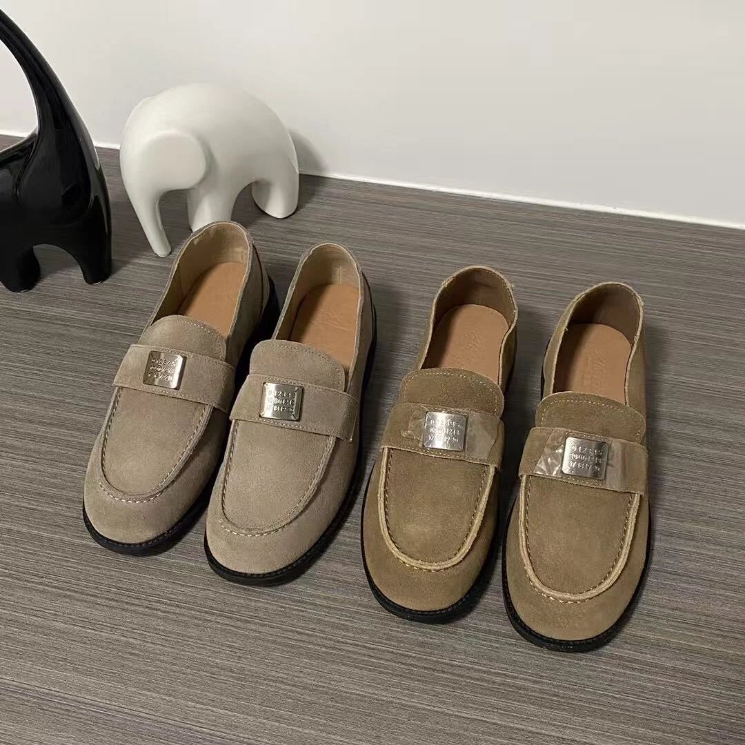 牛反绒的乐福鞋工厂实体店订单的剩余!这种价格都是低于市场价的,划算得很[坏笑]简简单单的配色,实物比图片好看,脚感超级棒的!这个季节刚需!帮面牛反绒皮--橡胶鞋底!脚感很舒服,软软的‼️鞋跟差不多3cm左右天热了,咱也不会穿正常的棉袜子穿这种鞋子啊,我们光脚试穿正码正选,脚胖脚宽选大一码!一周左右发~
