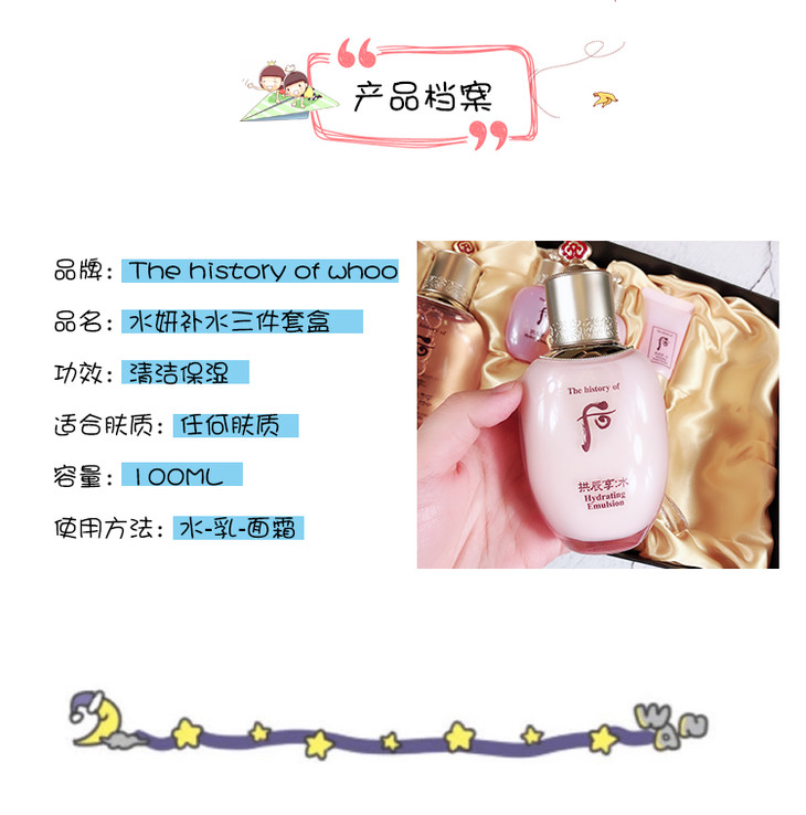 原装进口 后拱辰享水妍套盒补水保湿清爽控油水乳霜三件套粉色