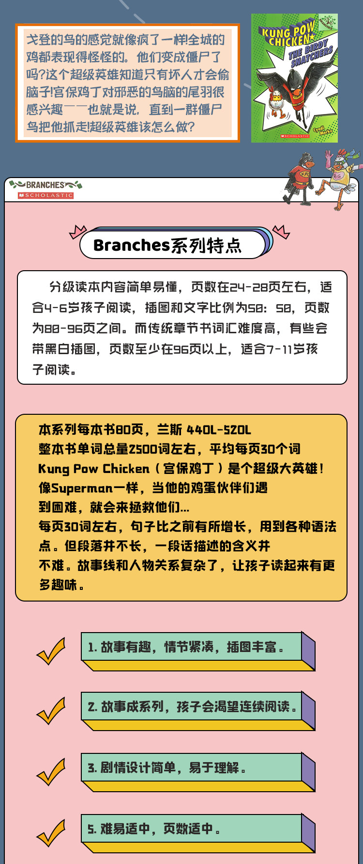 【赠音频】AR 2.9-3.2 功夫小鸡 Kung Pow Chicken 学乐大树系列宫保鸡丁 Branches 英文原版 4册 儿童桥梁章节书 5-10岁必读
