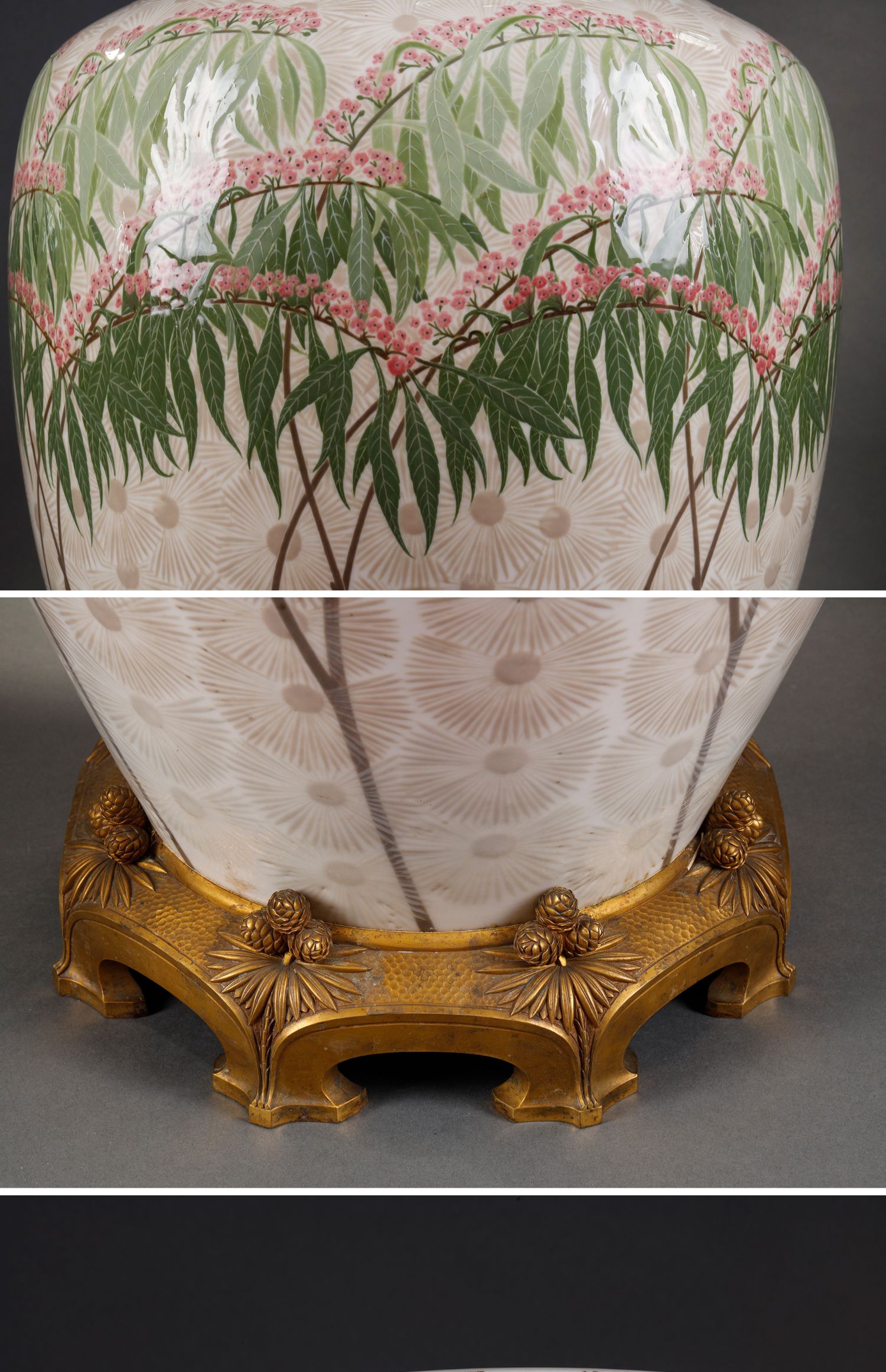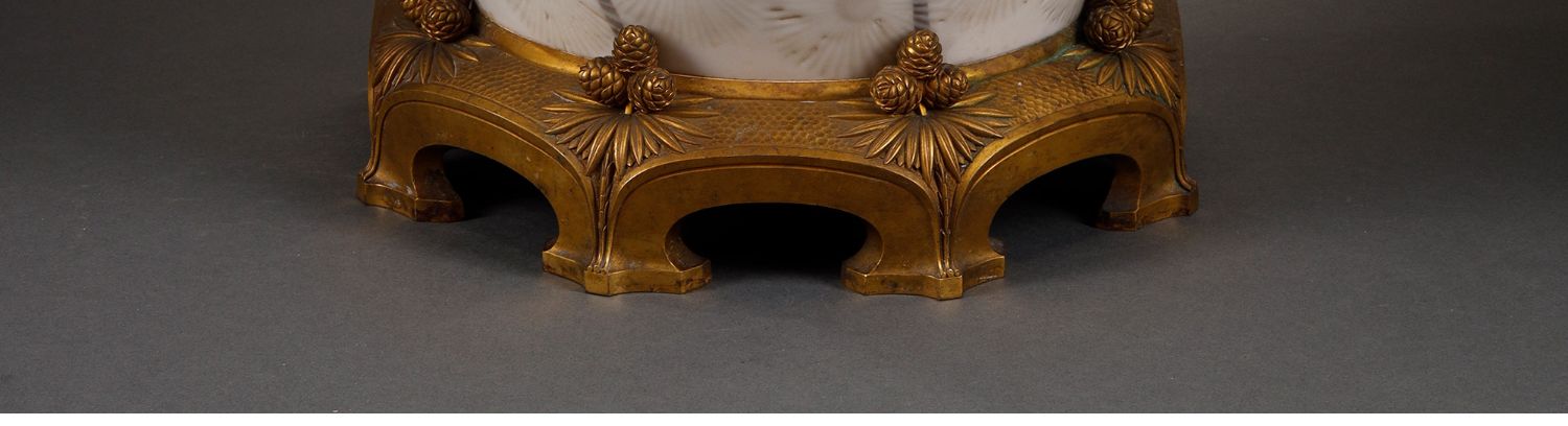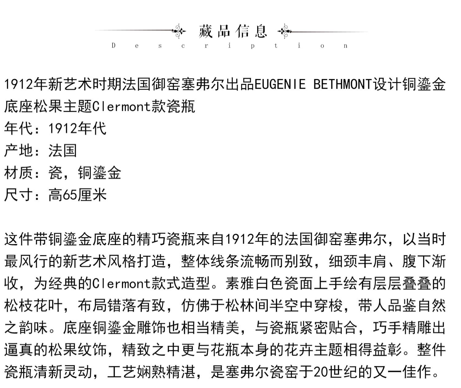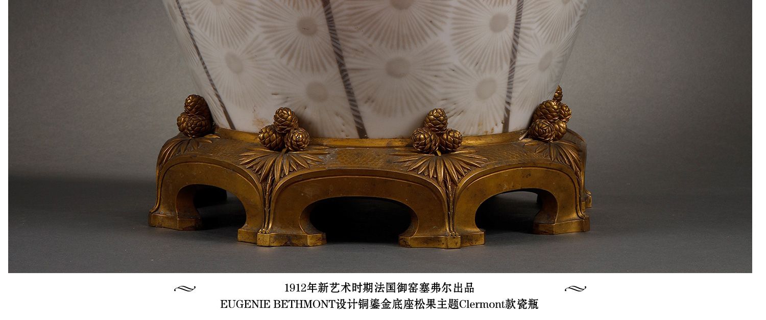 独角鹿西洋古董法国塞弗尔瓷器铜鎏金底座松果主题Clermont款瓷瓶