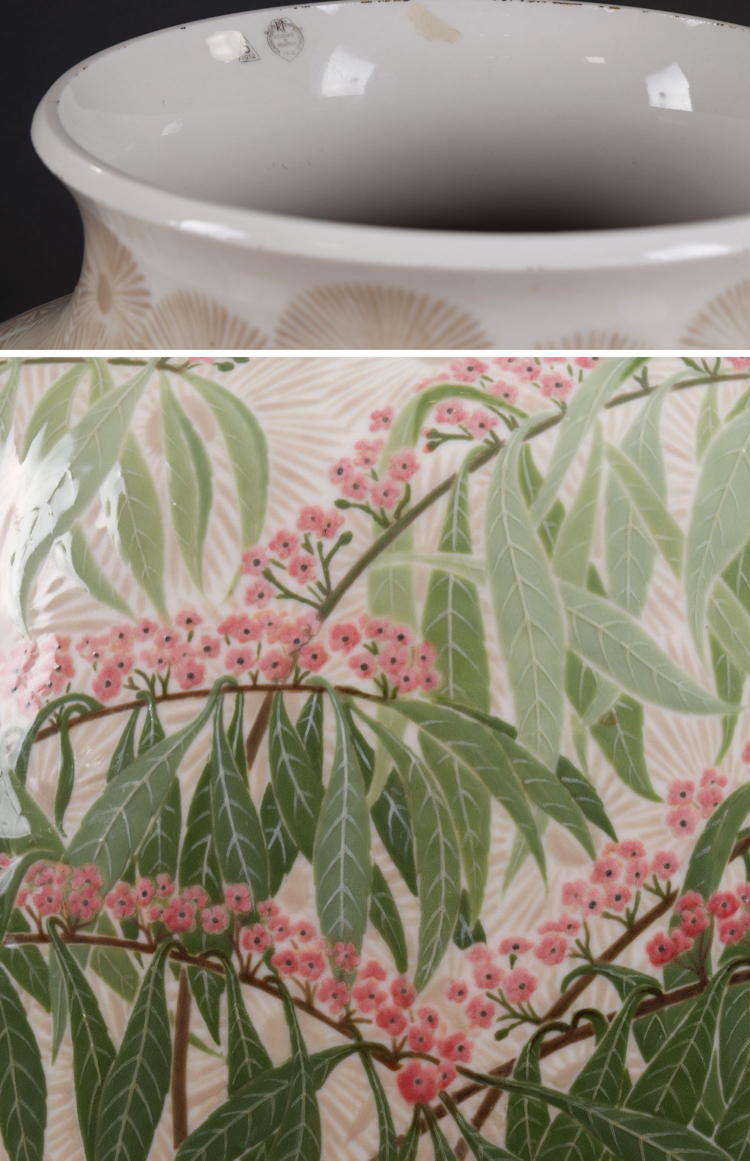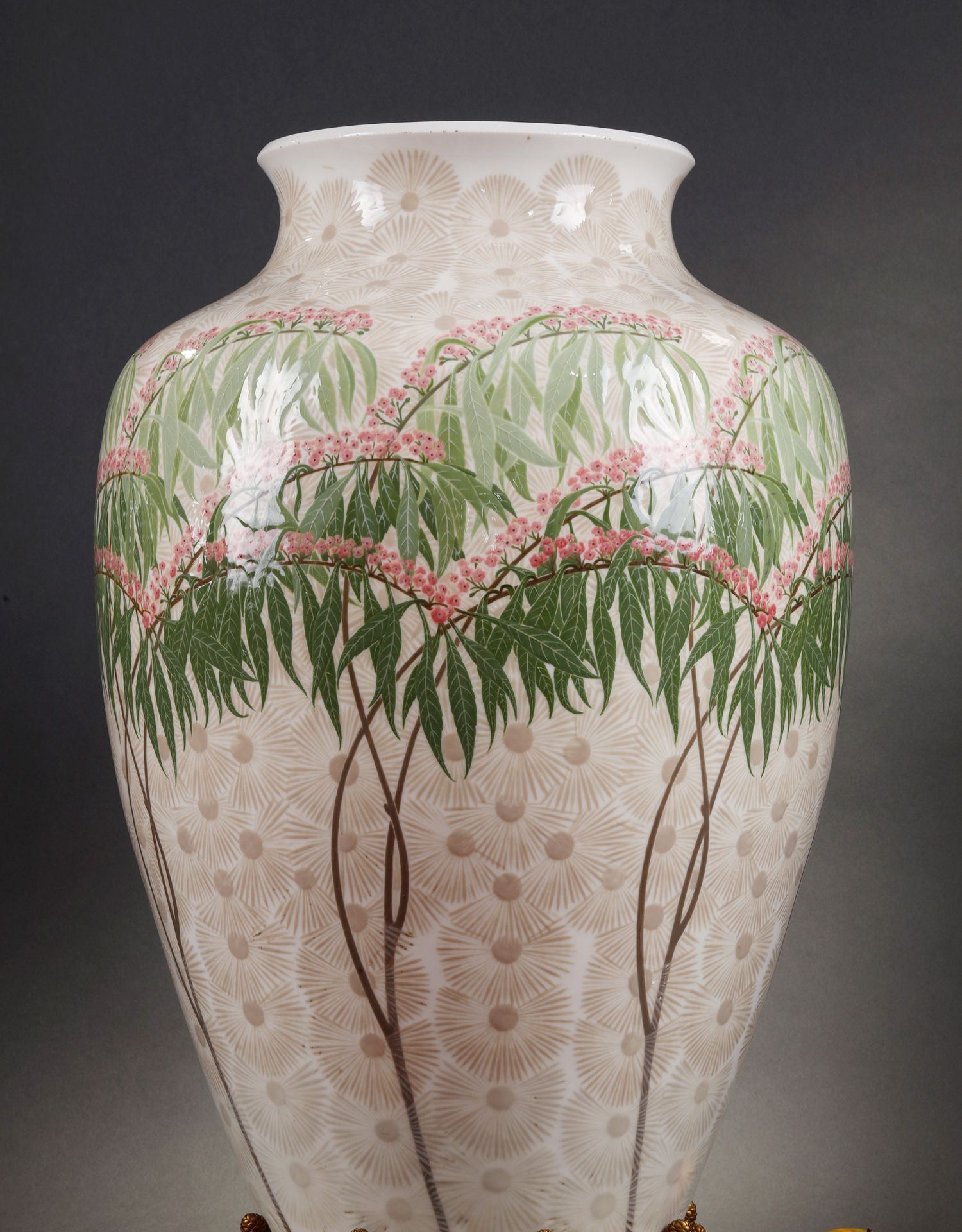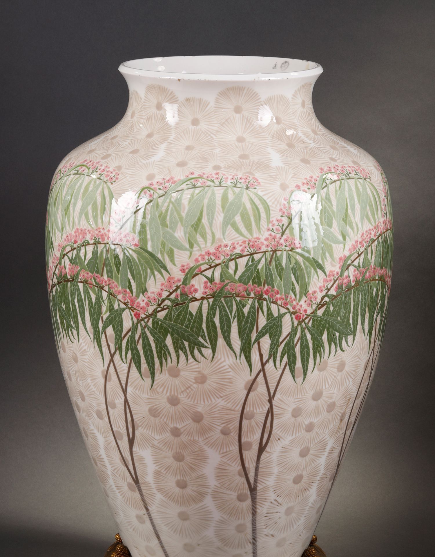 独角鹿西洋古董法国塞弗尔瓷器铜鎏金底座松果主题Clermont款瓷瓶